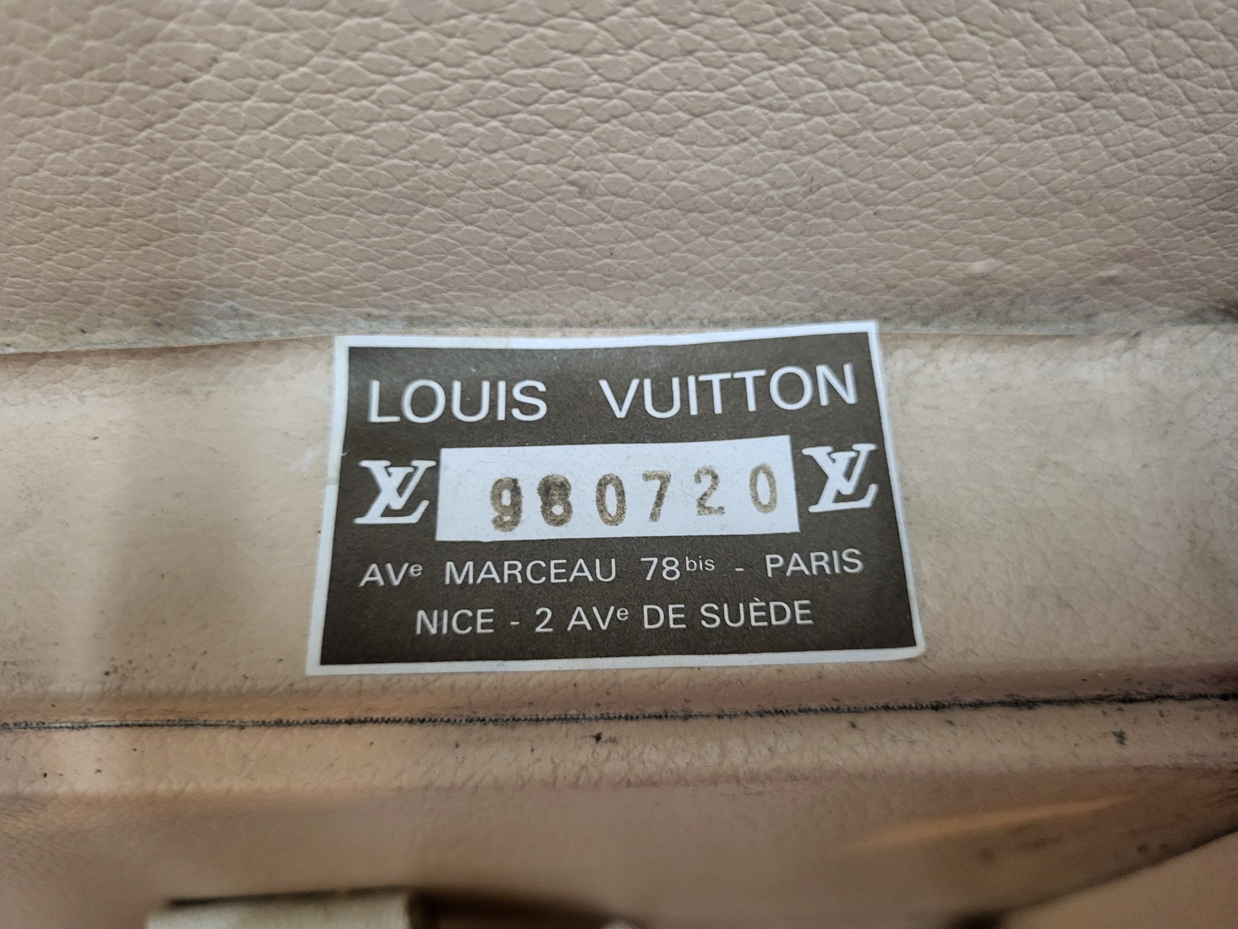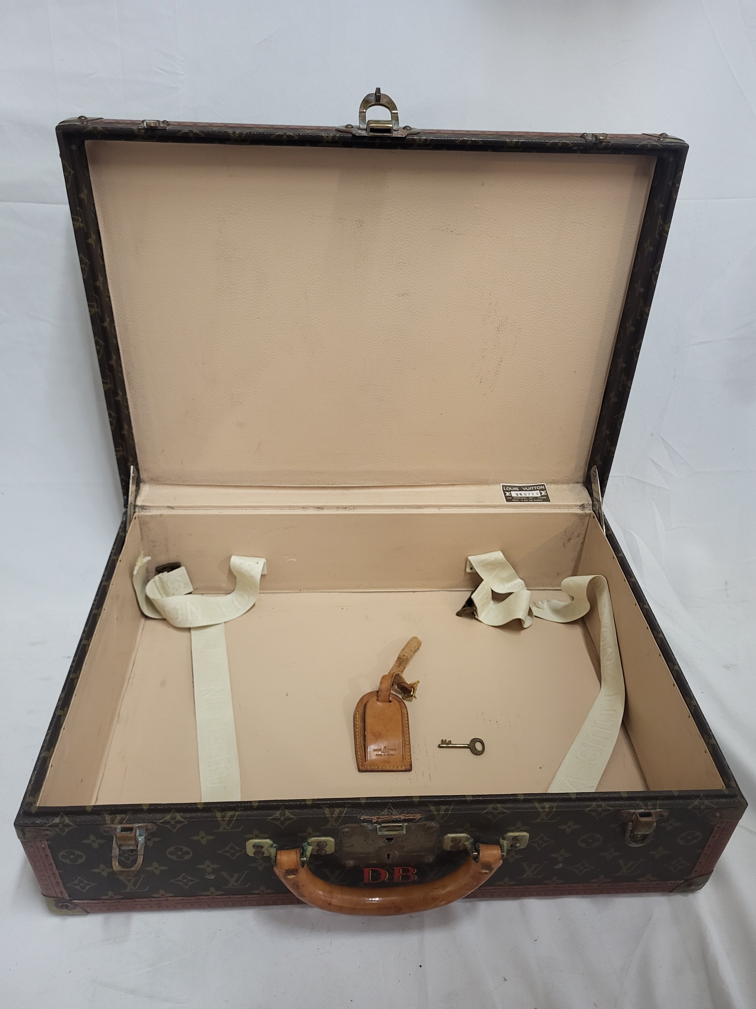 Purchased in the 80's by the estate. Surprisingly after all these years the handles look quite nice. It is clean, bright and just lovely. The monogrammed initials "DB" on the case were added by Vuitton.