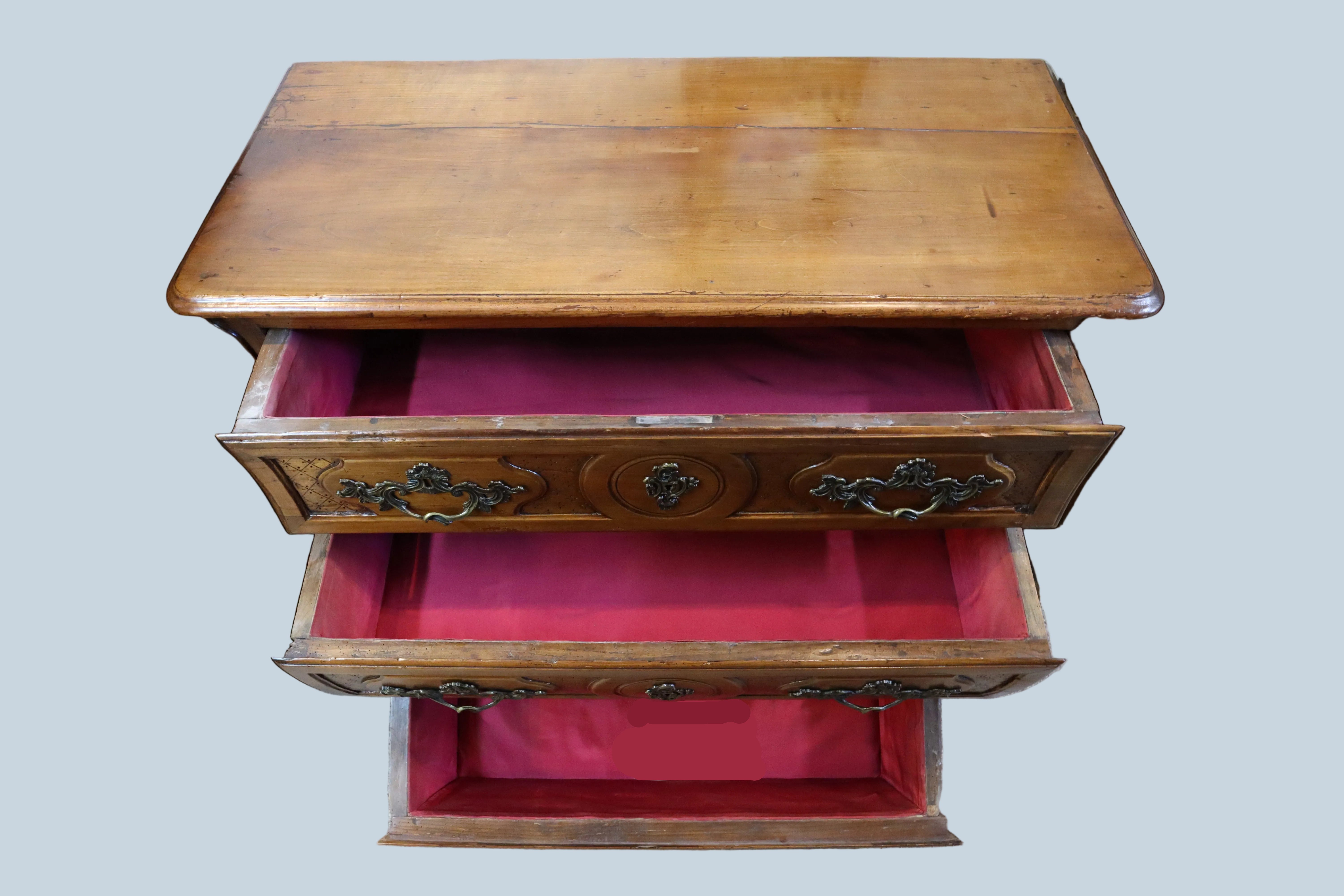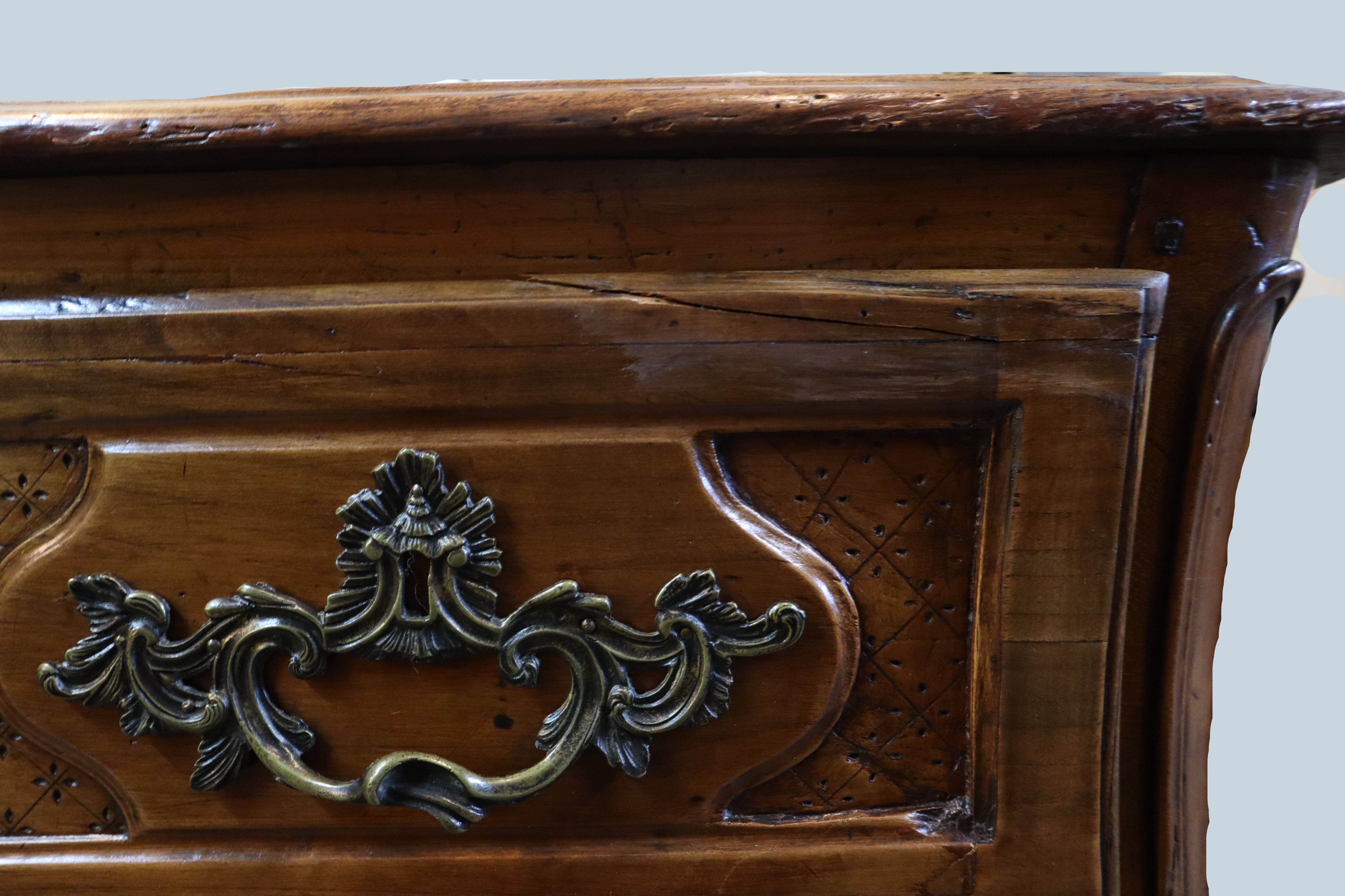 Rare 18th Century Regence Walnut Commode from Bordeaux, France c. 1750 with Satin Lined Drawers