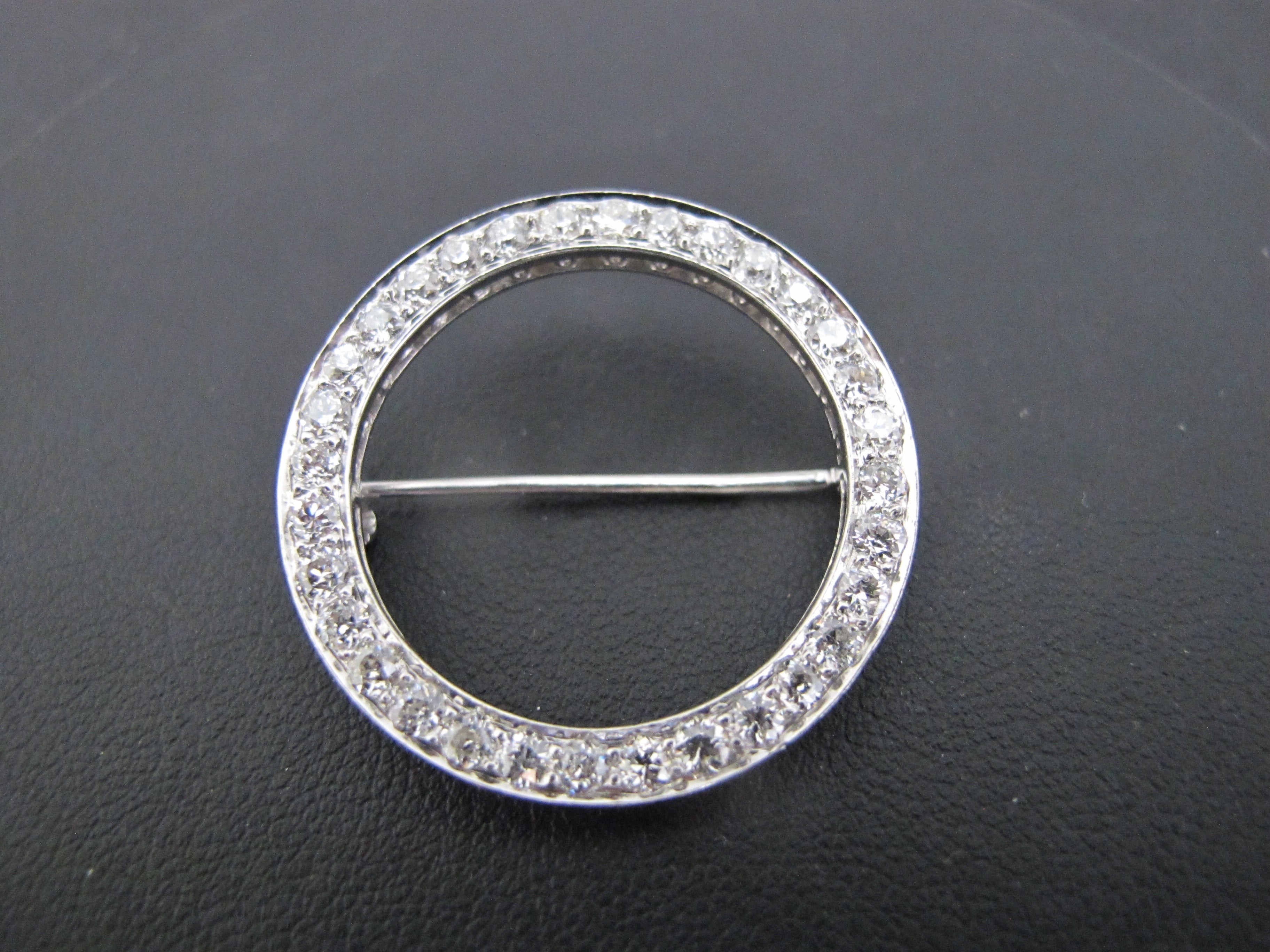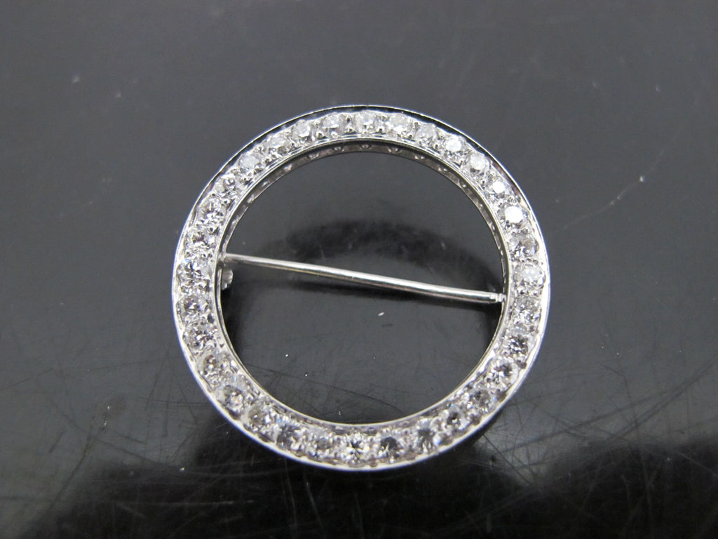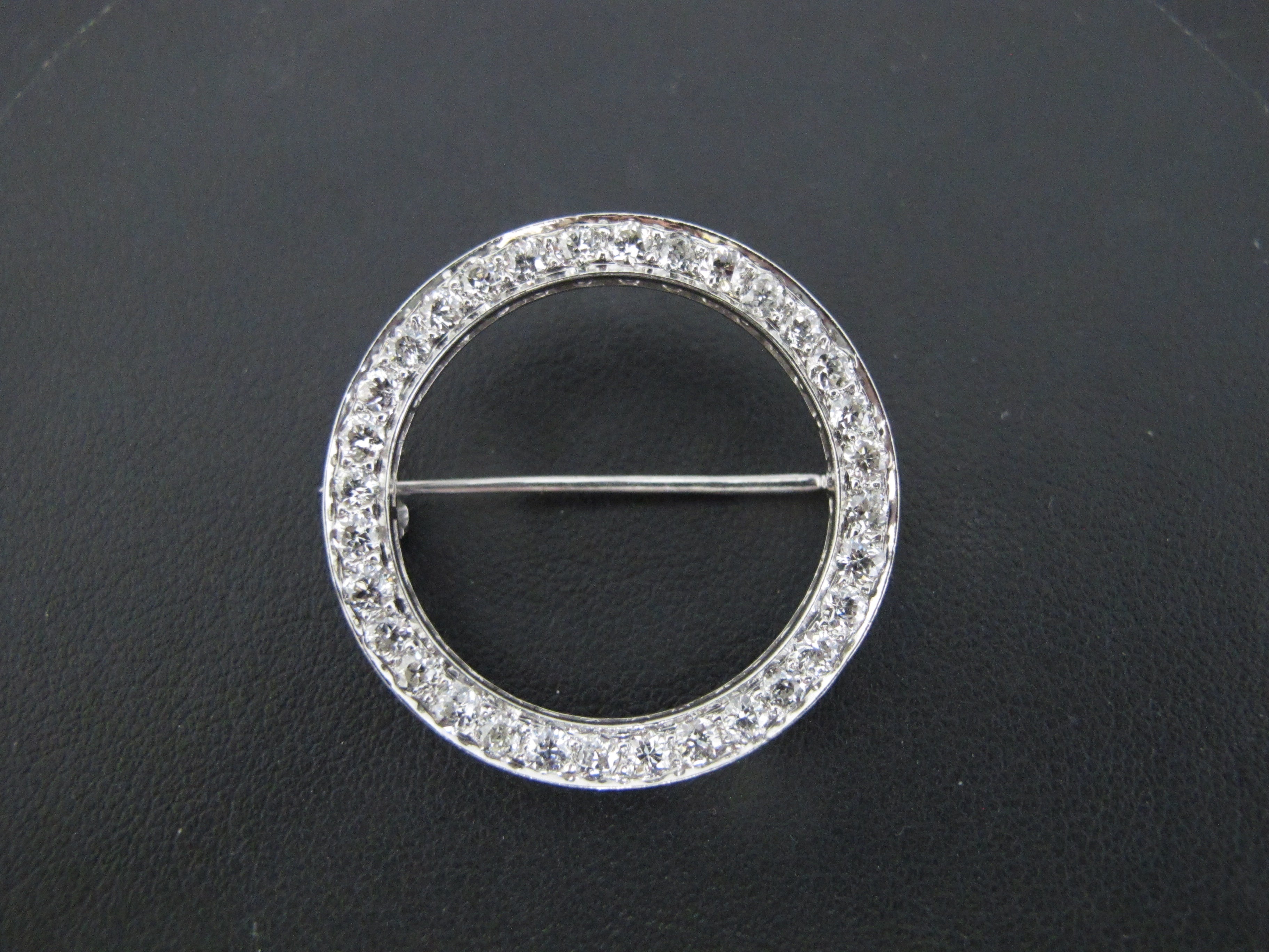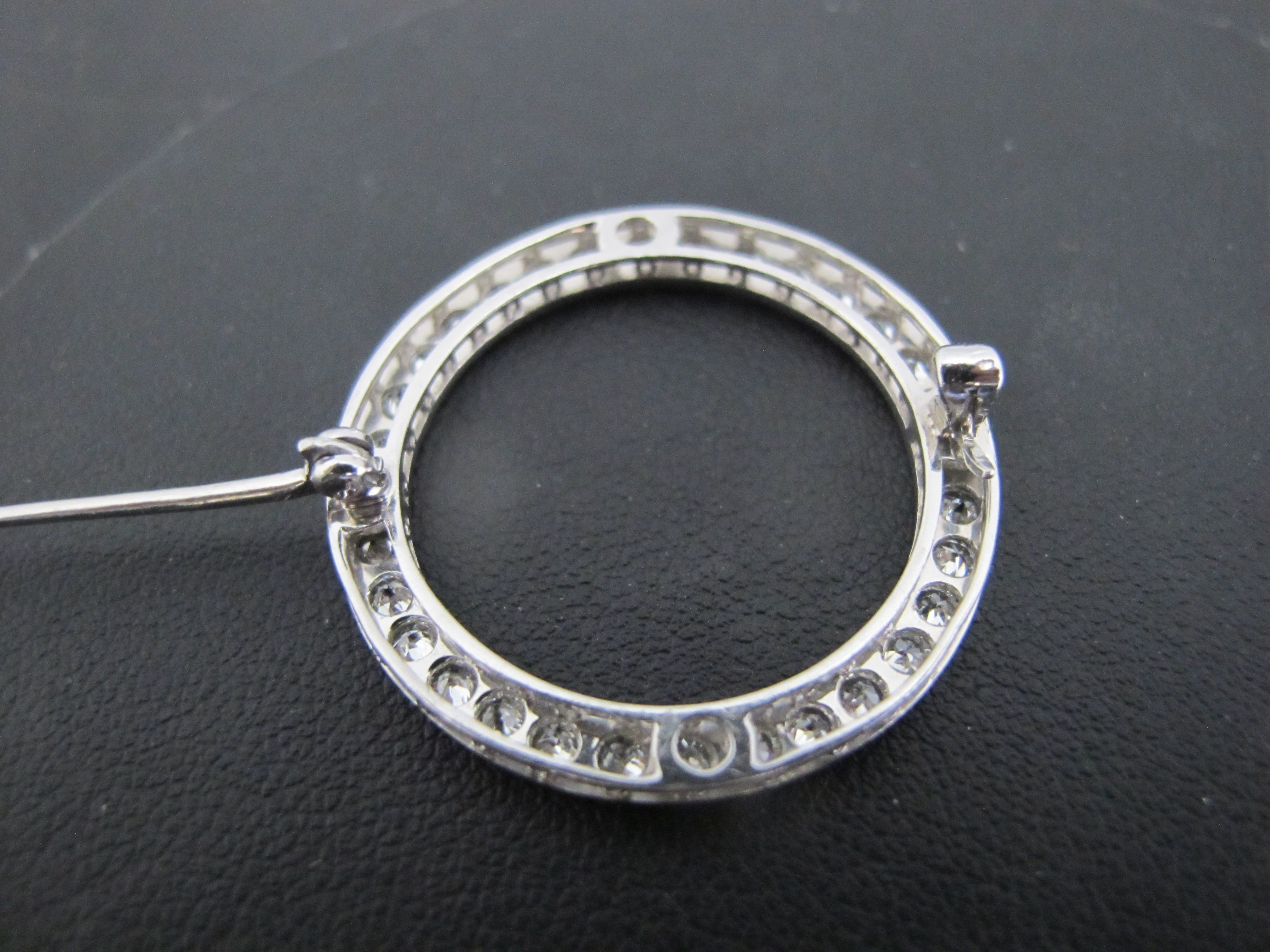 Classic Art Deco style Platinum circular brooch pin with diamonds
