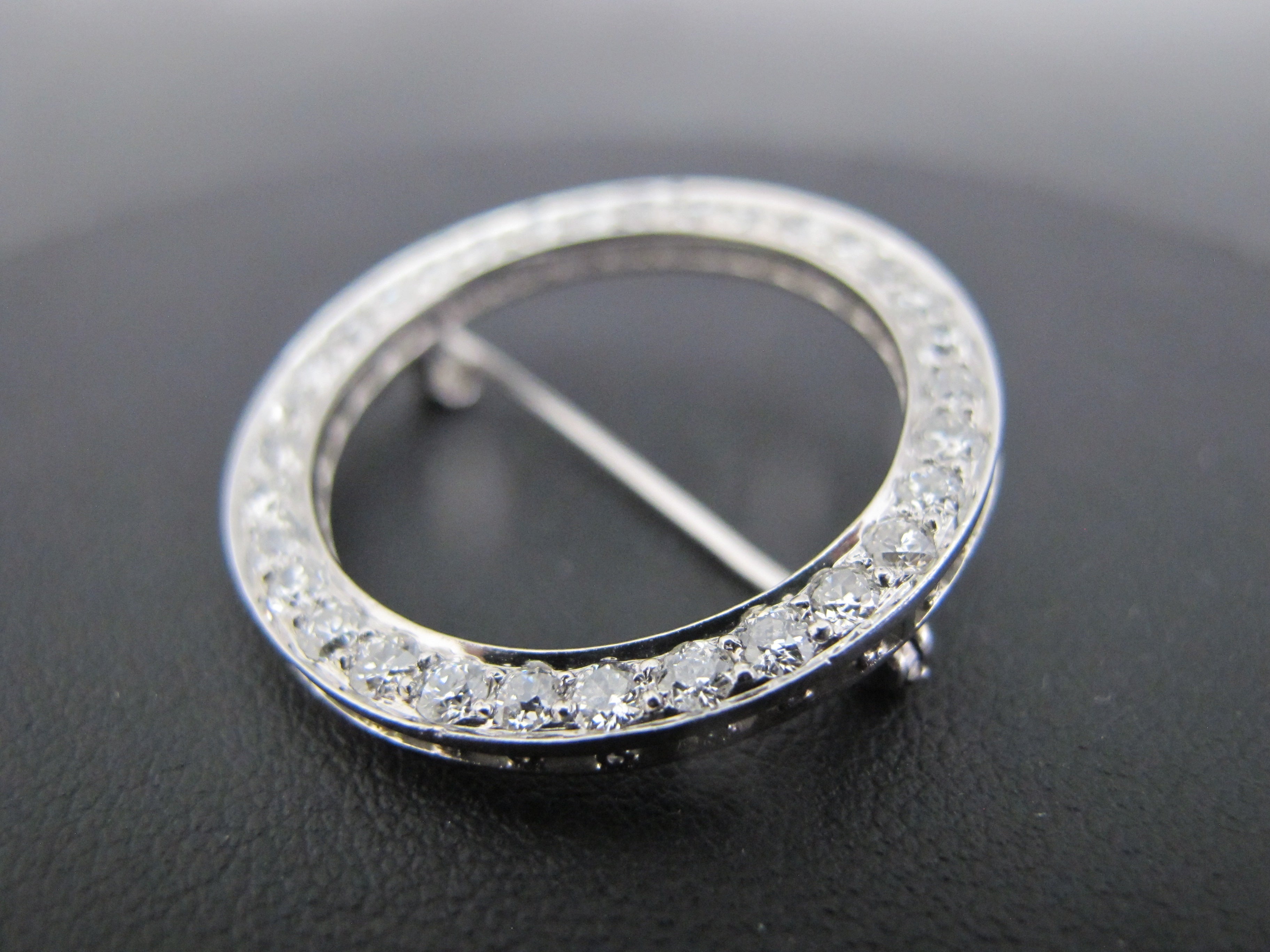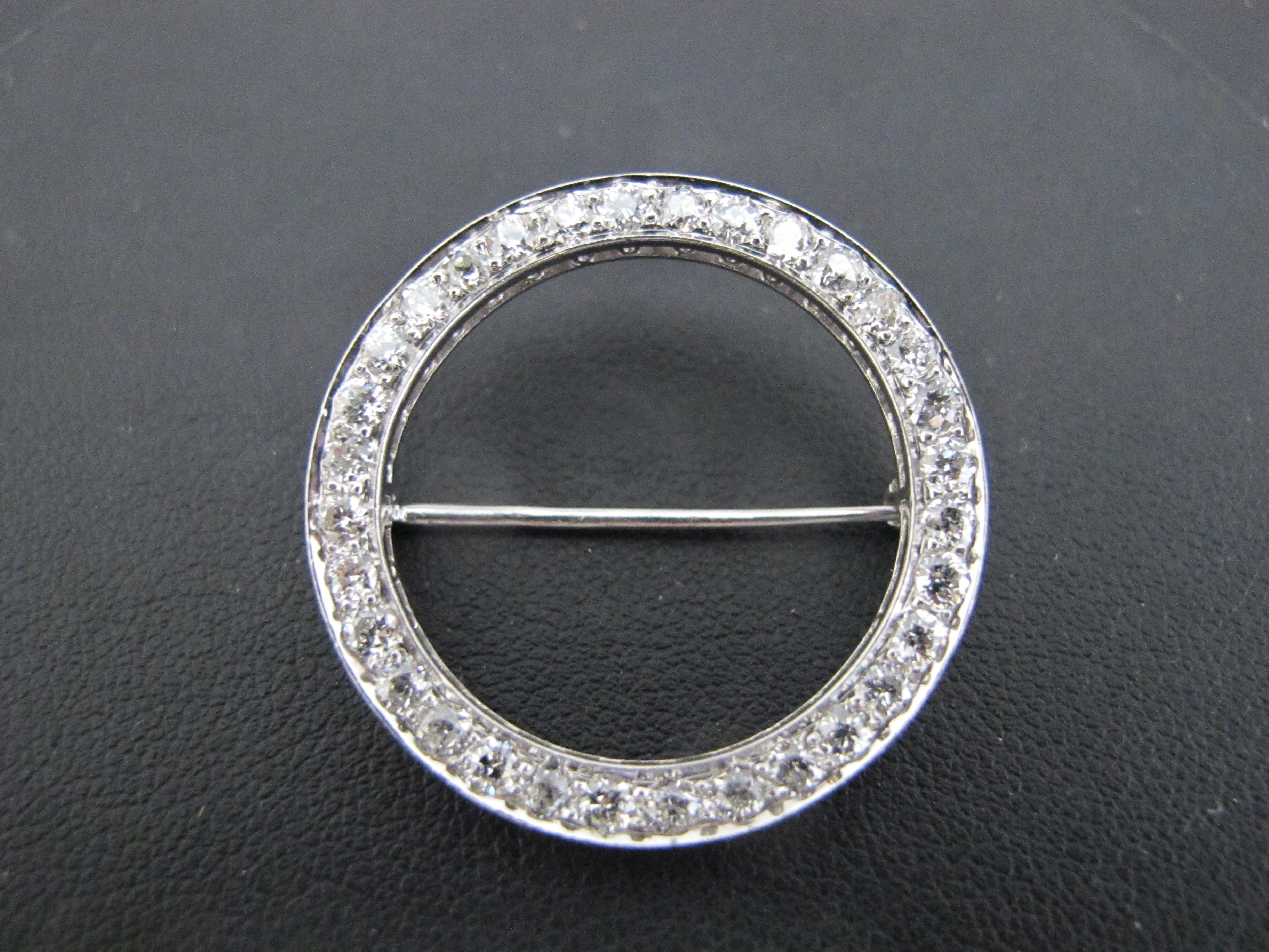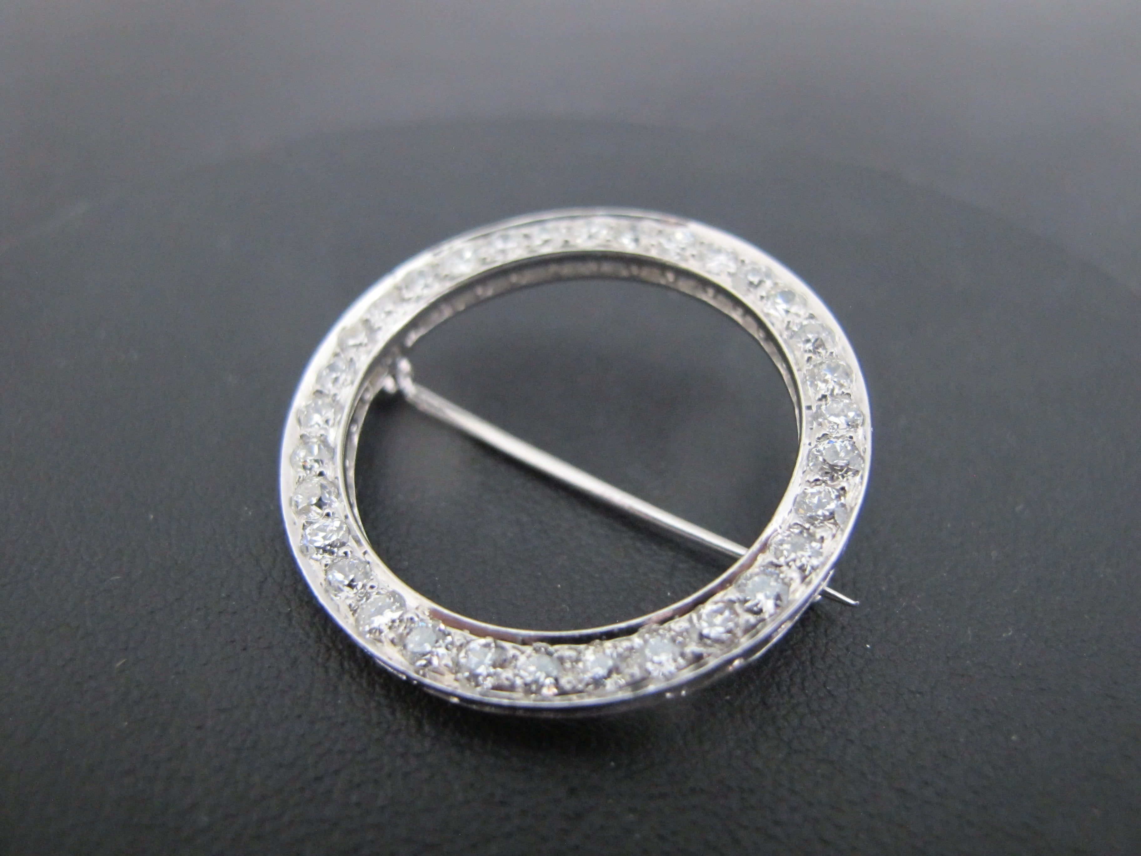 Classic Art Deco style Platinum circular brooch pin with diamonds