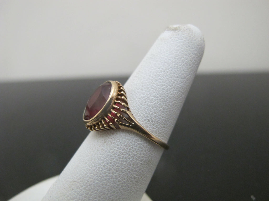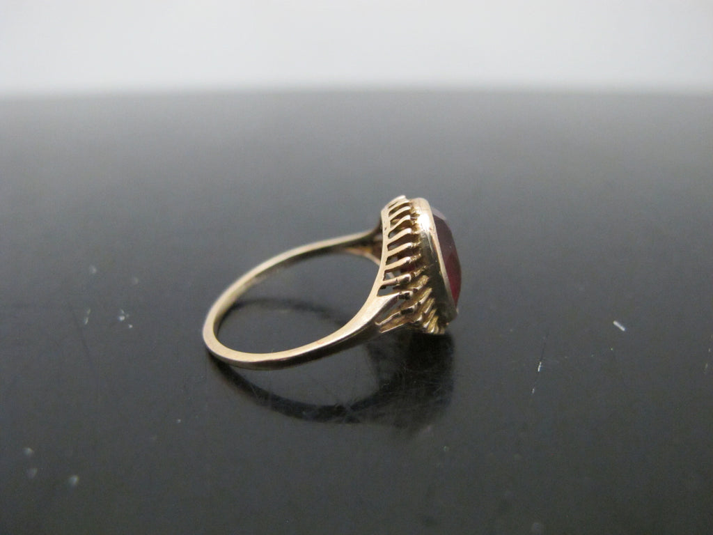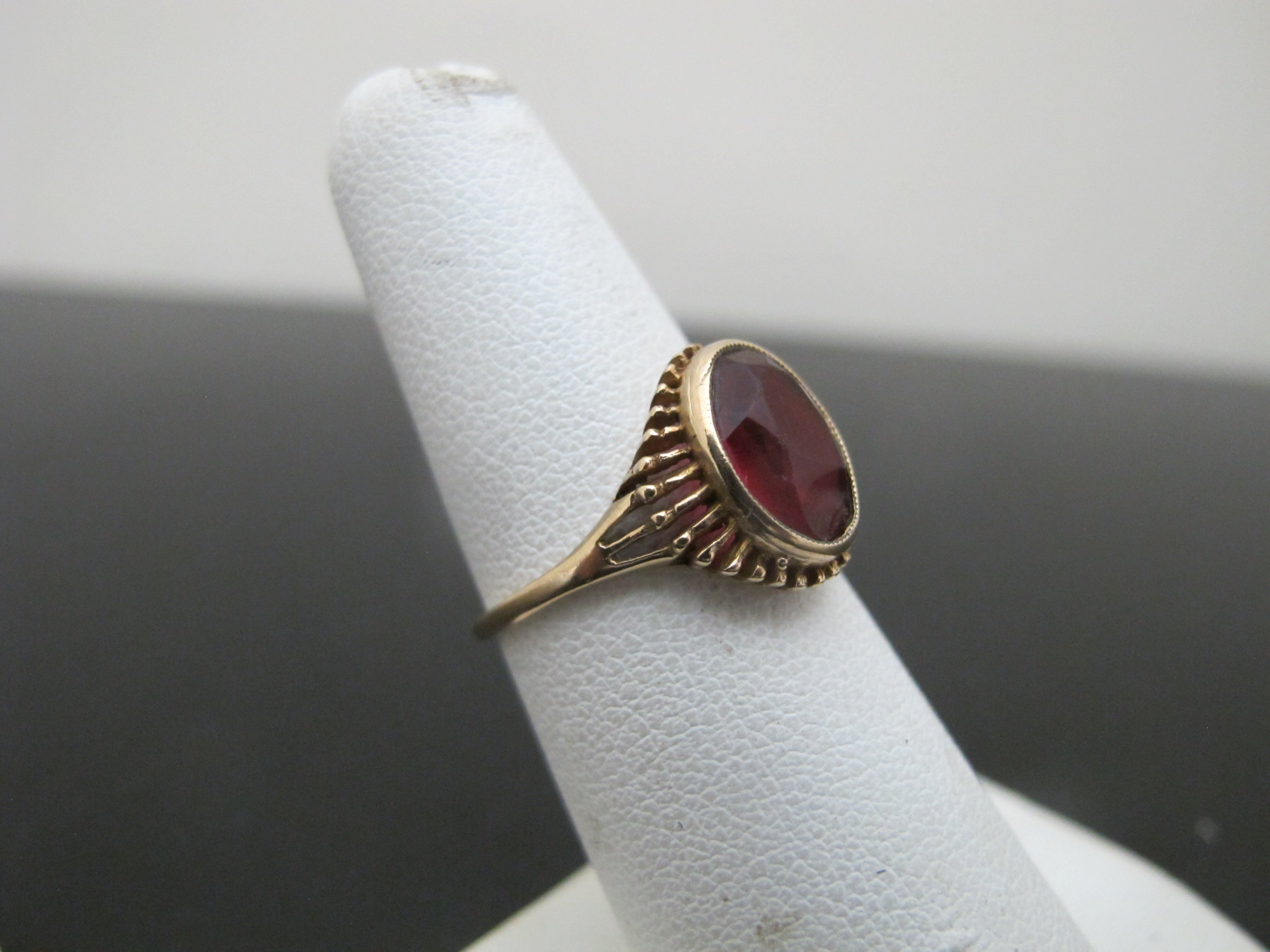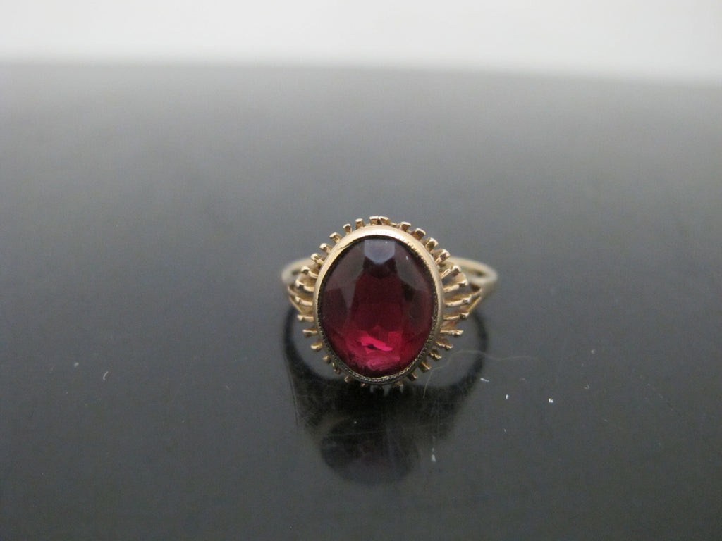 Simple But SWEET Oval Red Faceted GARNET Solitaire 10k Yellow Gold Ring