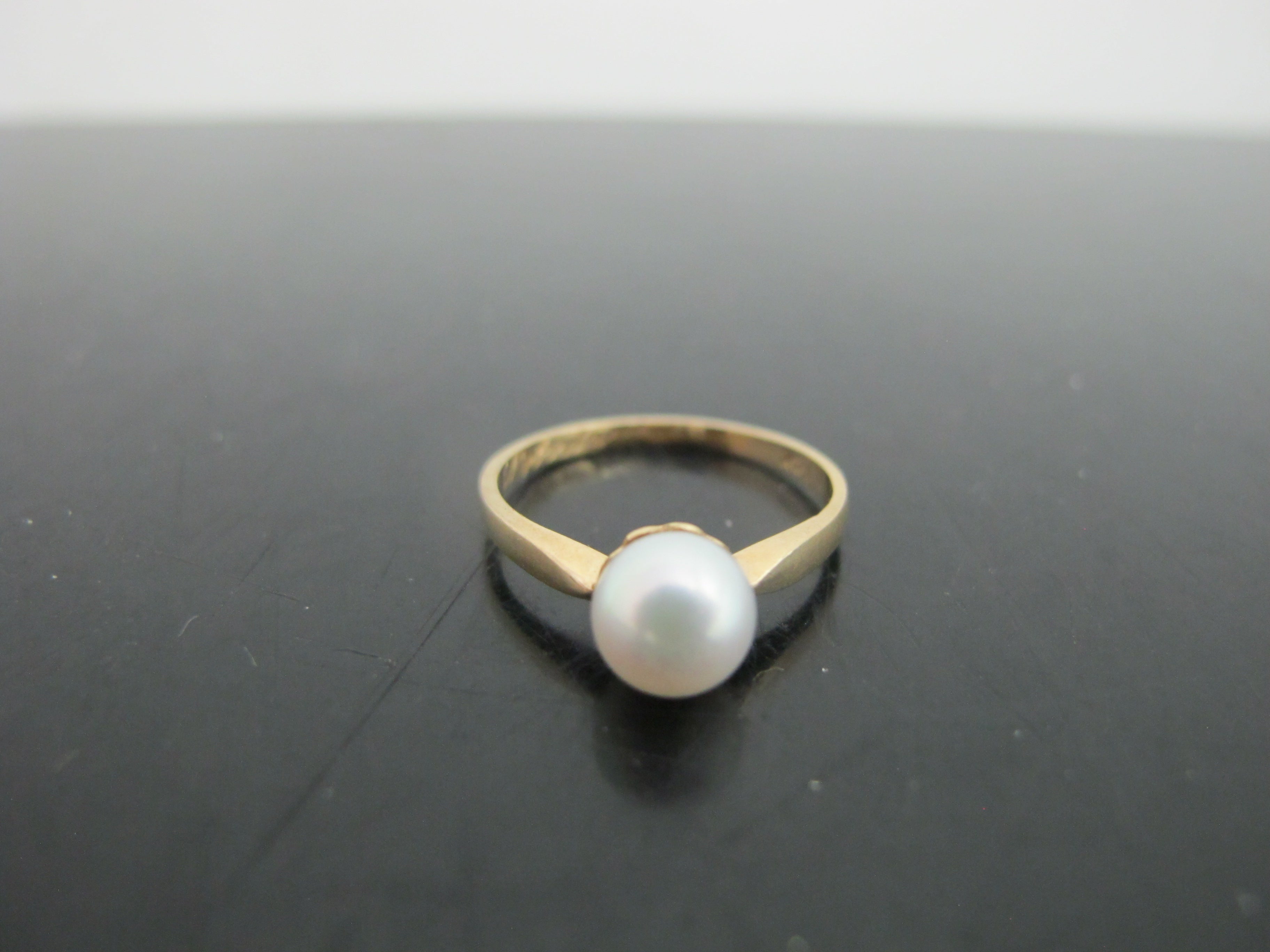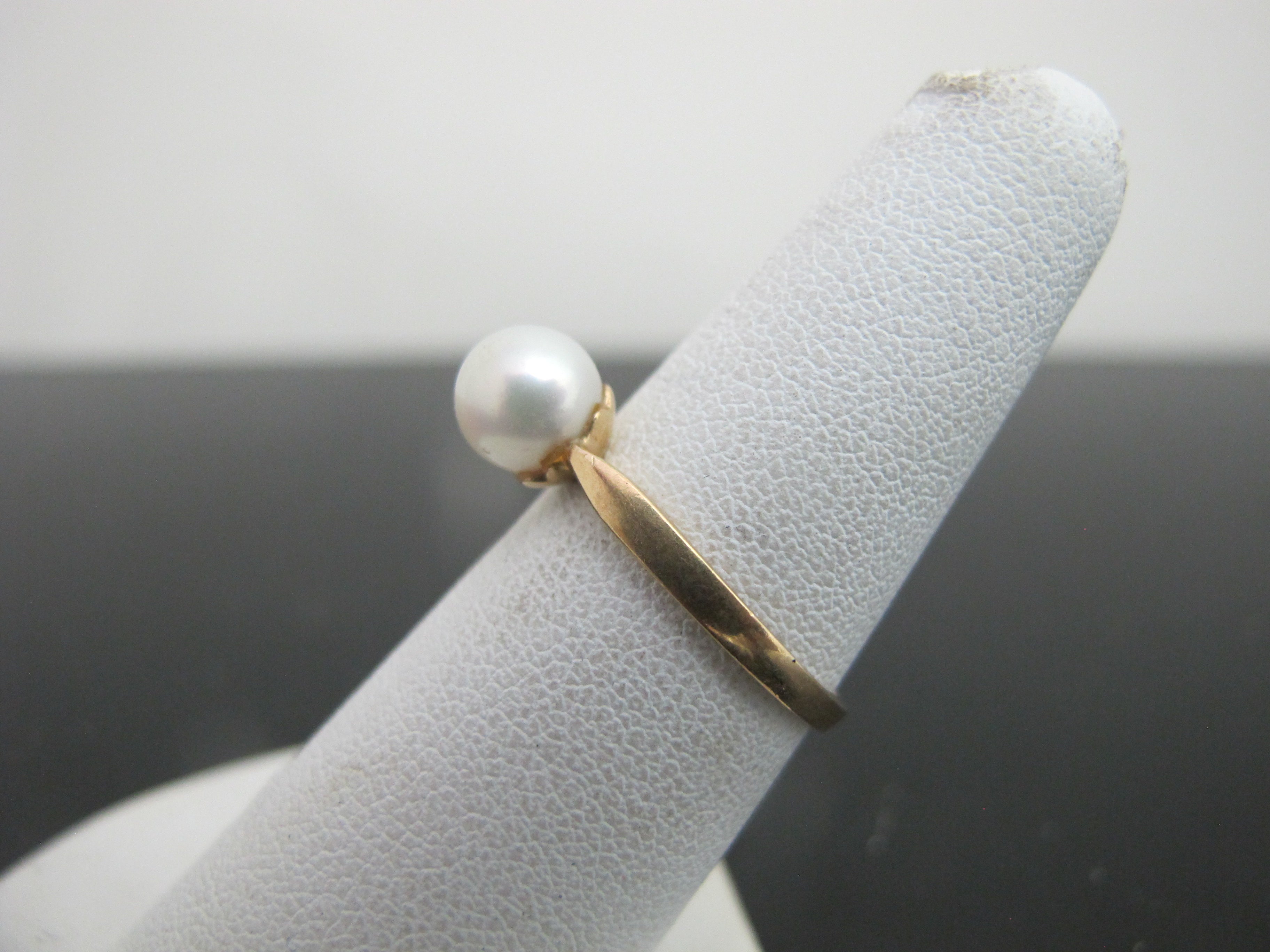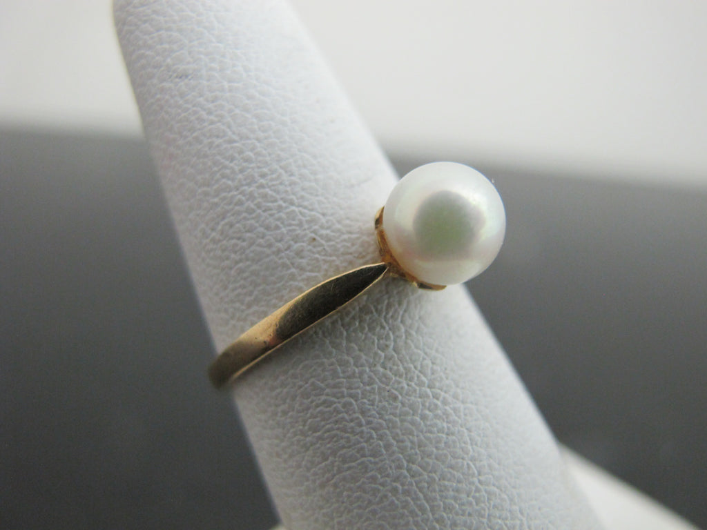Simple But Sweet 14k Yellow Gold MODERNIST Style Solitaire PEARL Ring