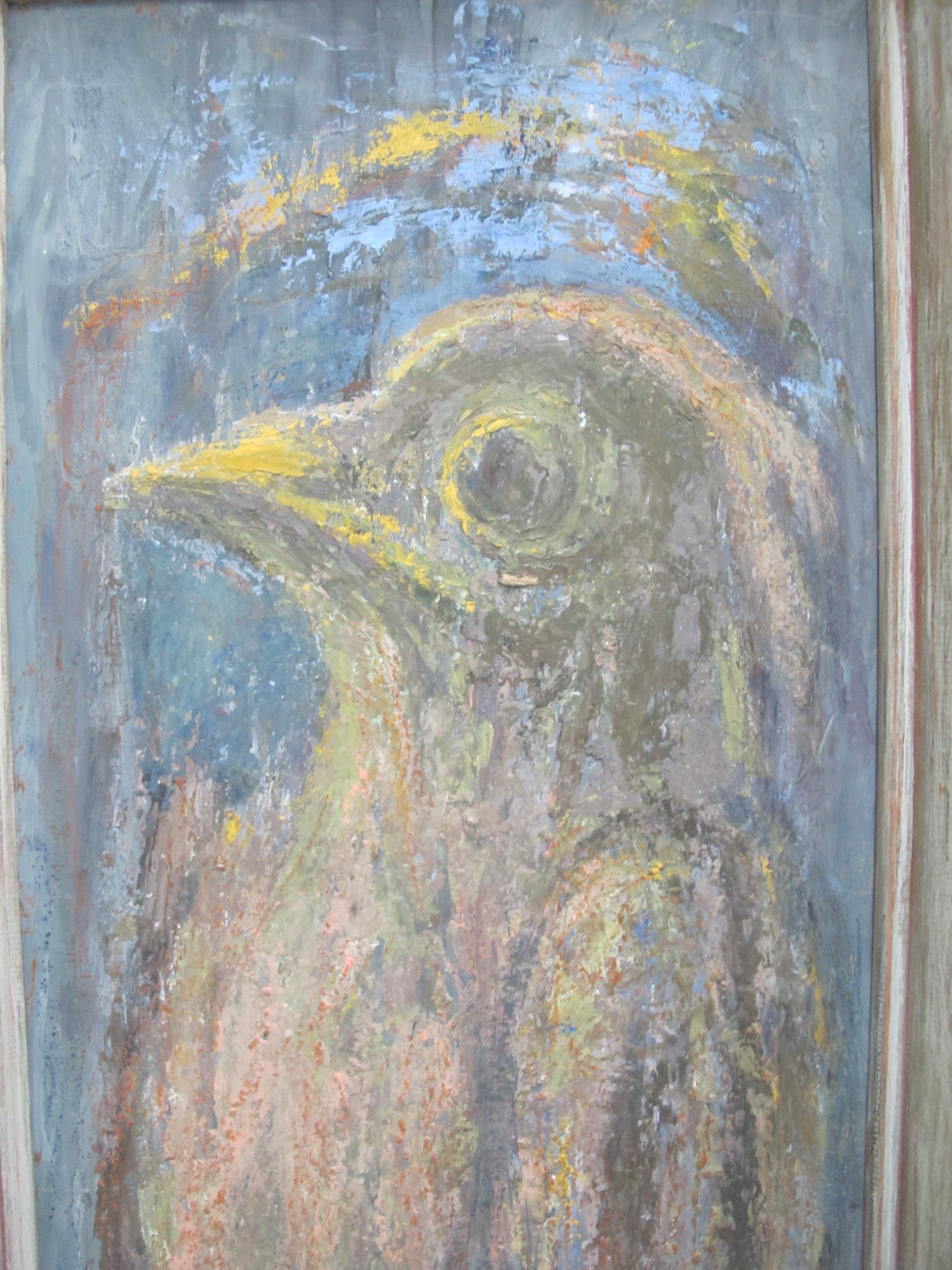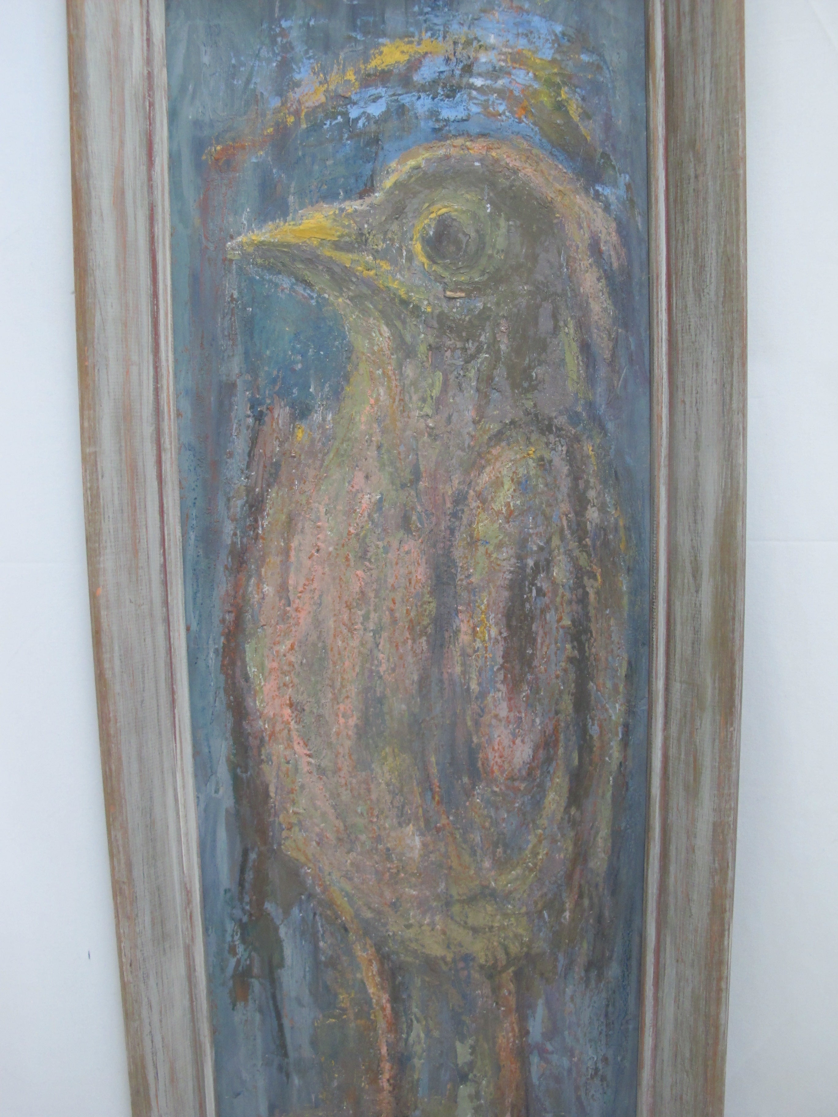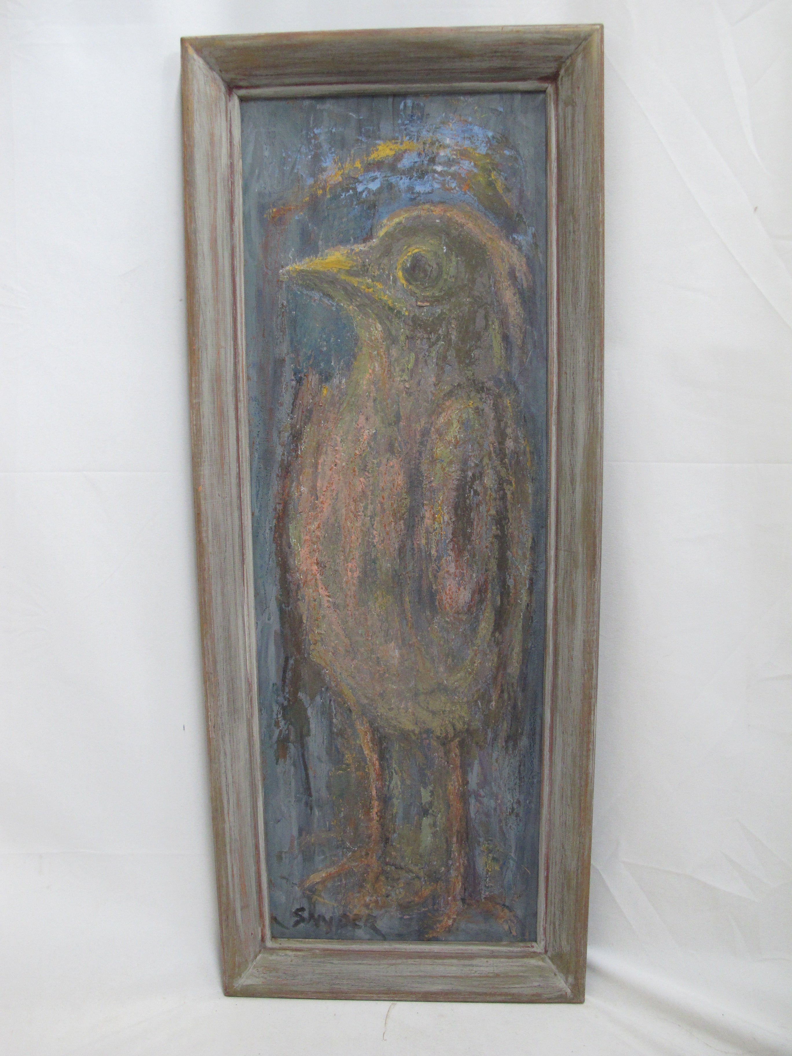 Pacific NW artist, Amanda Snyder, oil painting on panel, 'Another Young Bird'. Signed at lower left. Frame measures 11 1/2" x 29", painting measures 8 3/4" x 26". Excellent condition, colors could pop a bit more if cleaned.