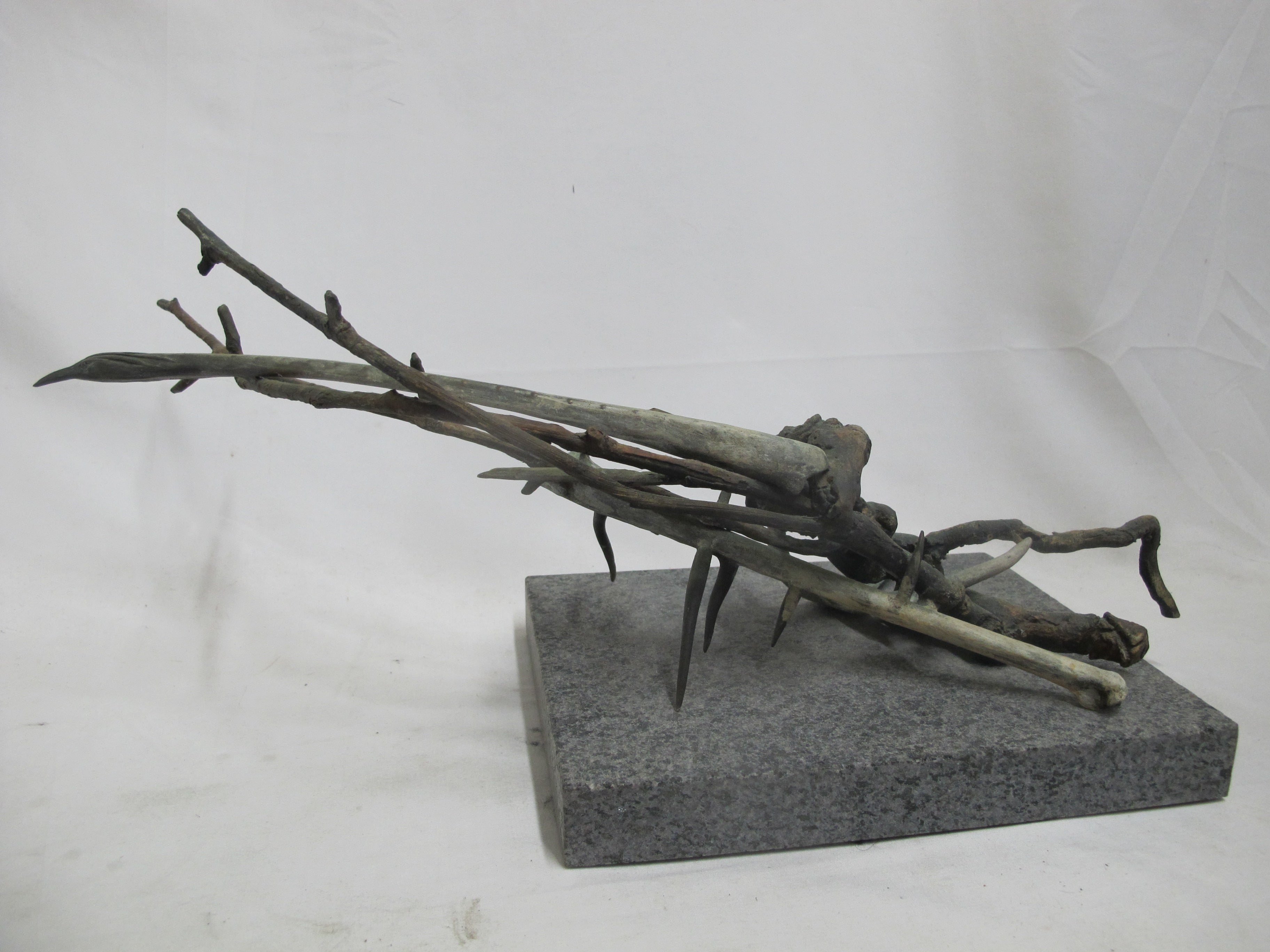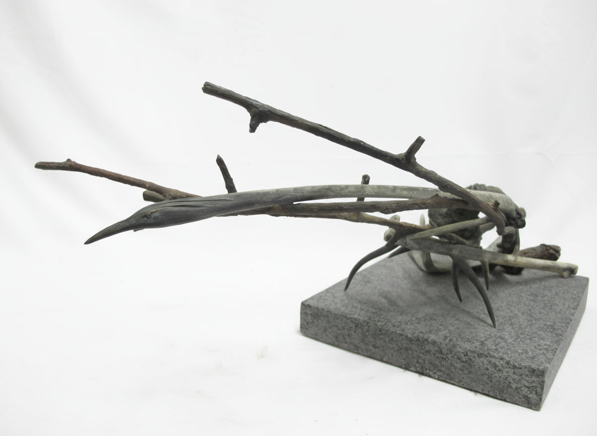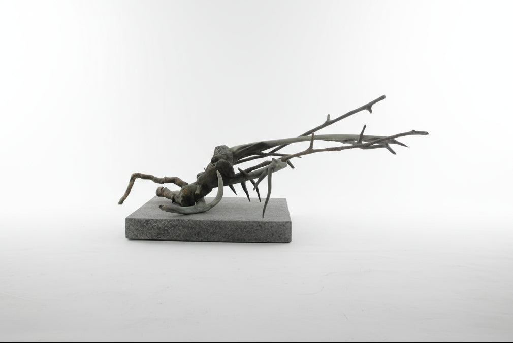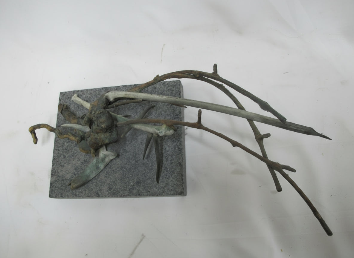 Frank Boyden (Pacific NW) art sculpture consisting of bronze jutting branches on marble base. Measures 20" X 8 1/4" X 8 1/2" tall.