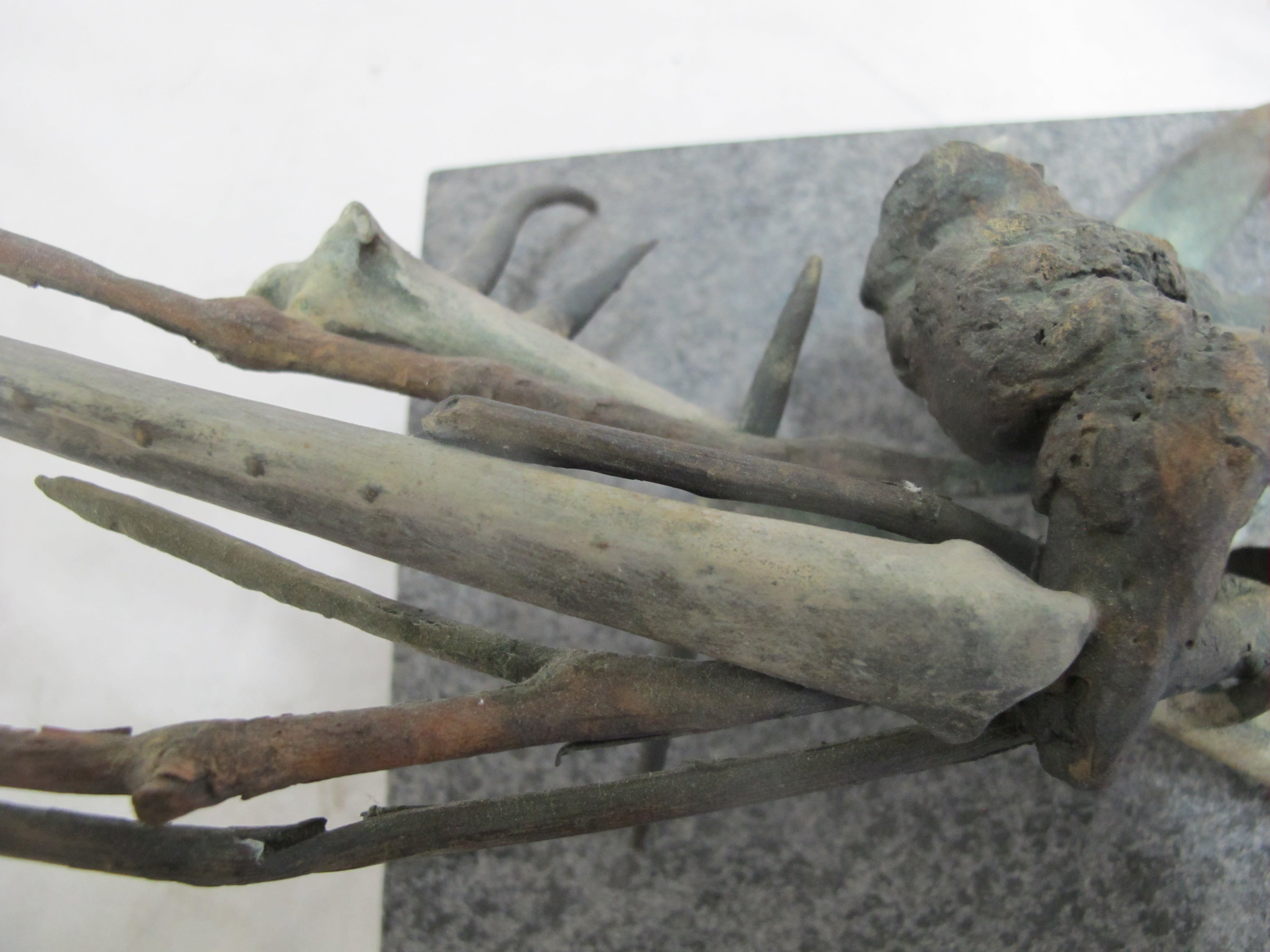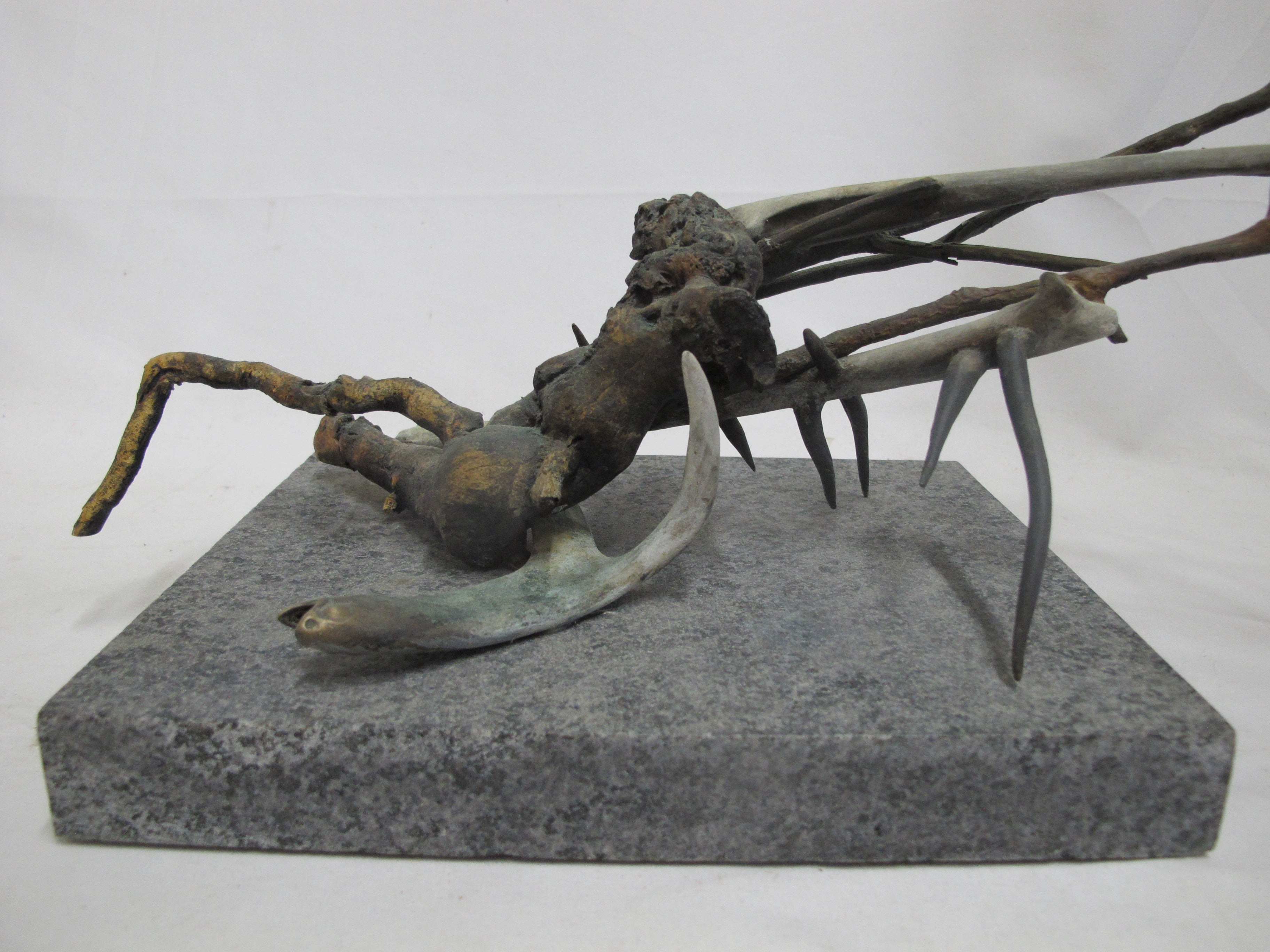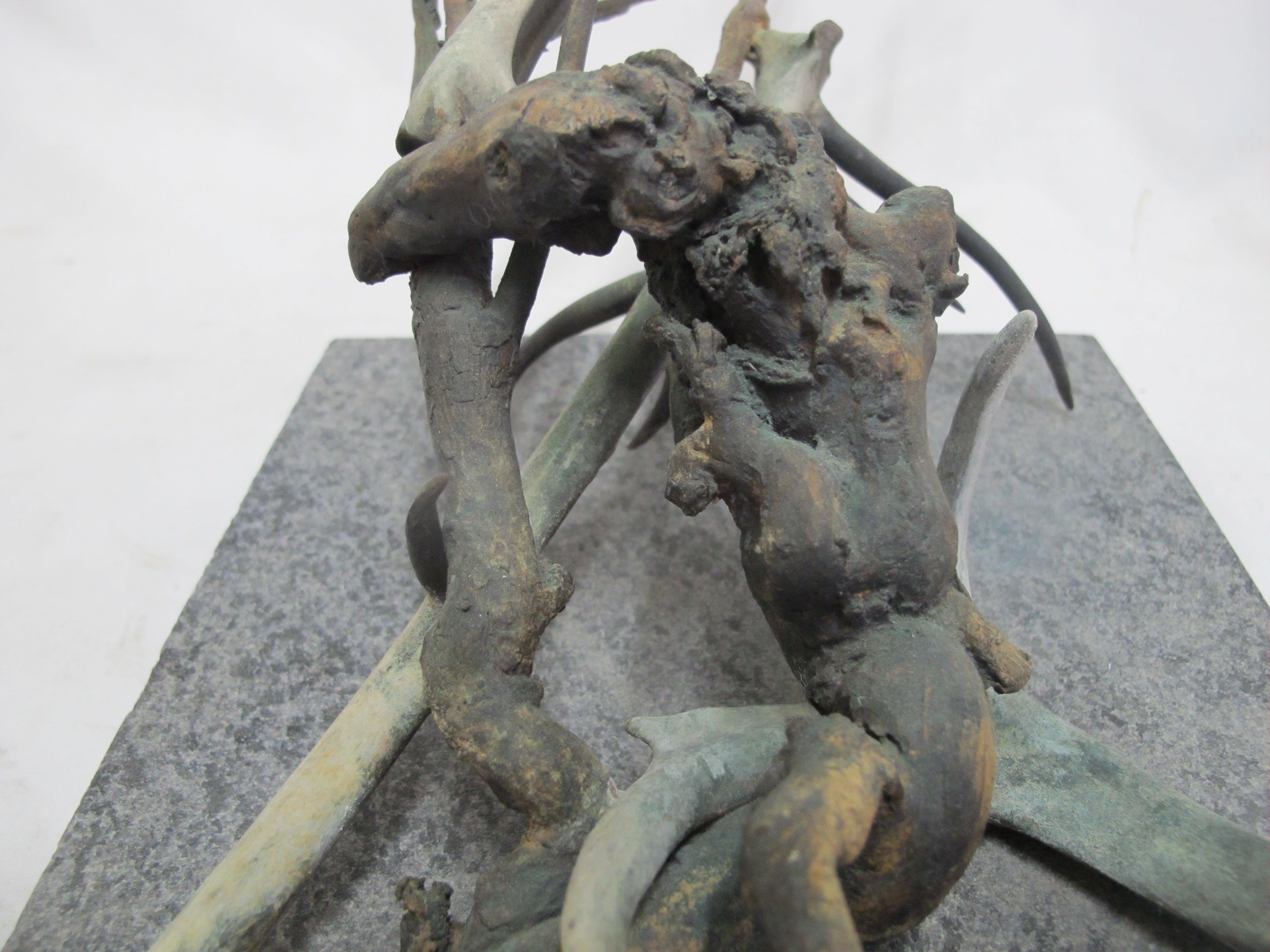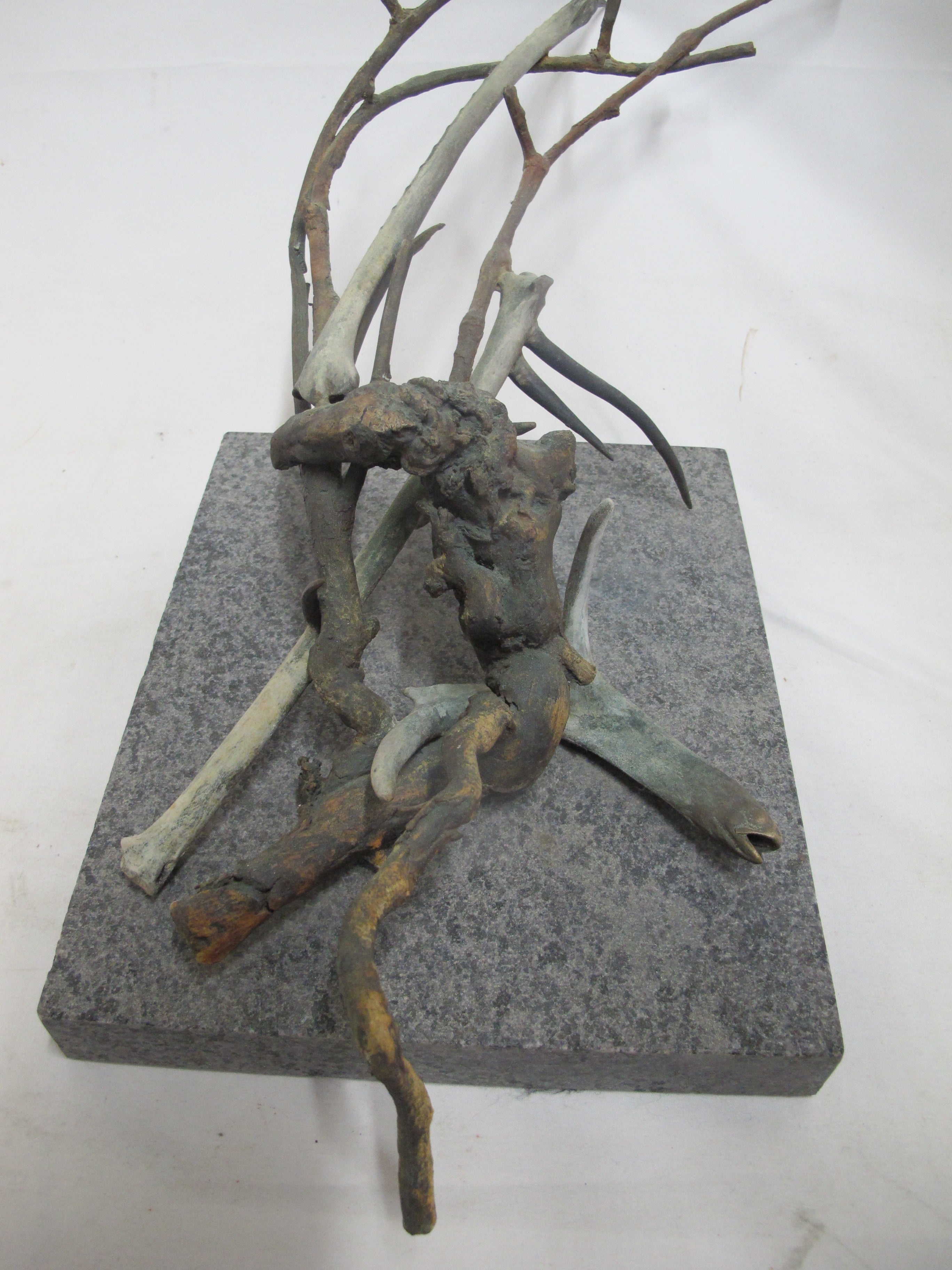 Frank Boyden (Pacific NW) art sculpture consisting of bronze jutting branches on marble base. Measures 20" X 8 1/4" X 8 1/2" tall.