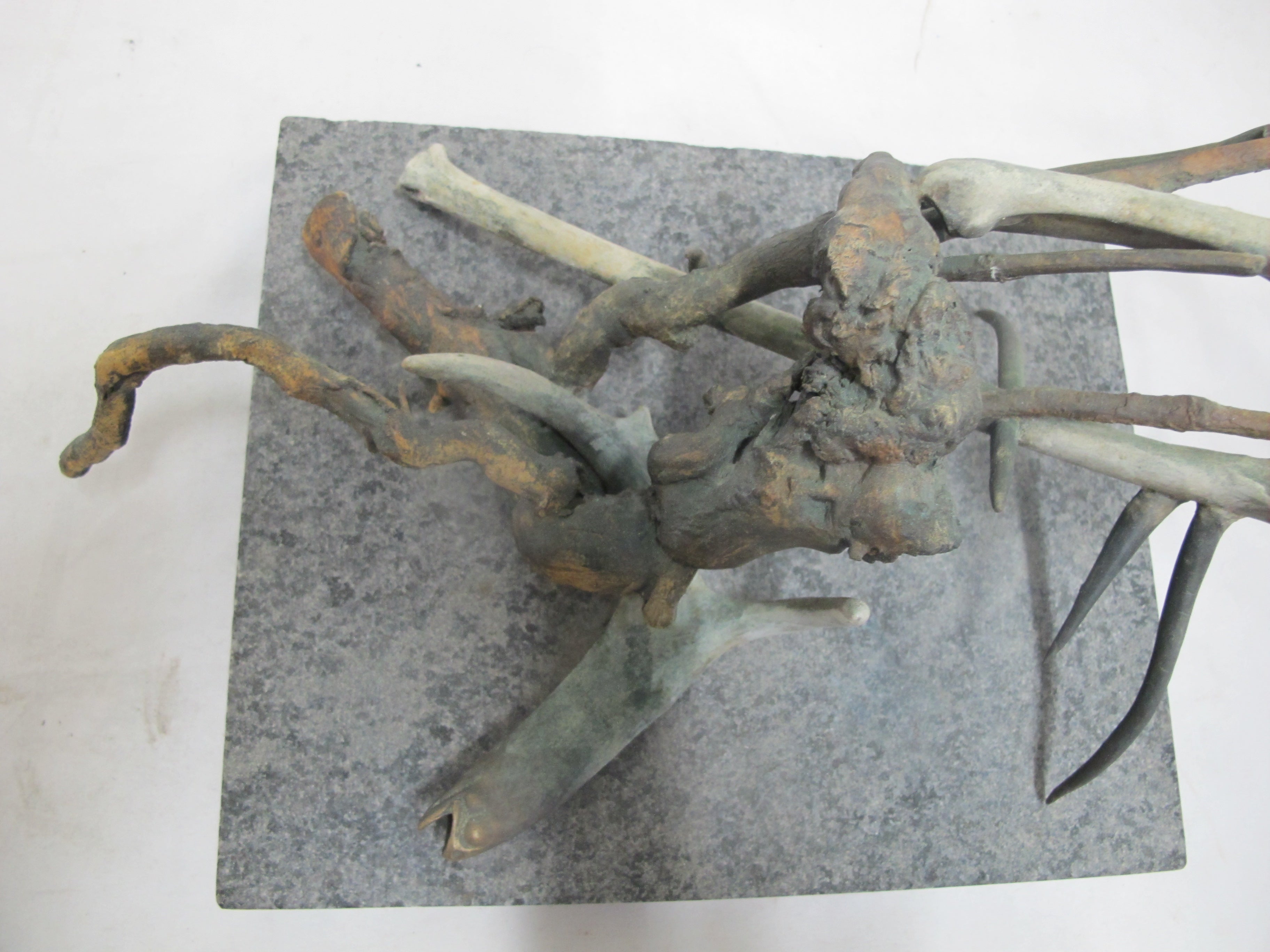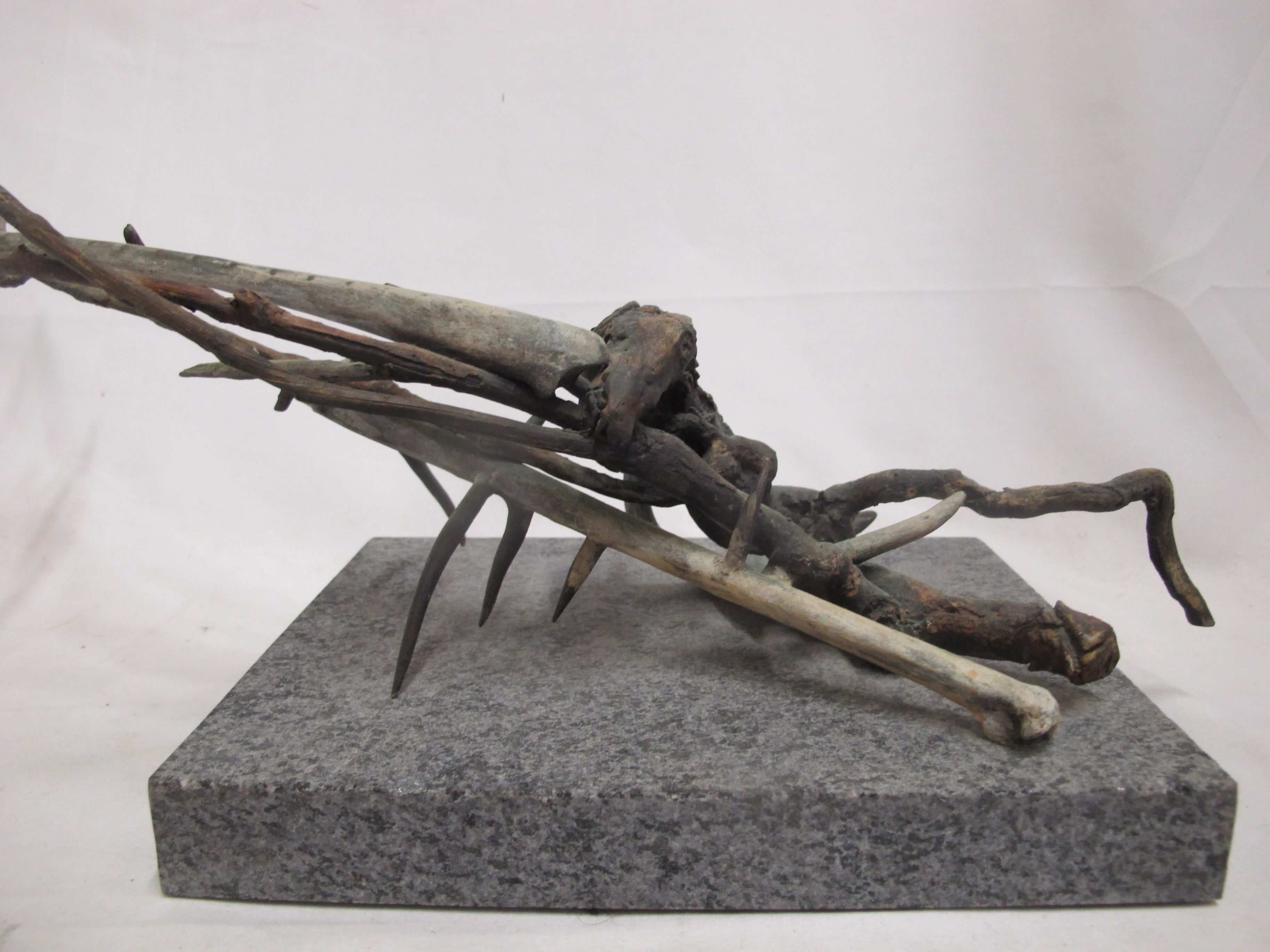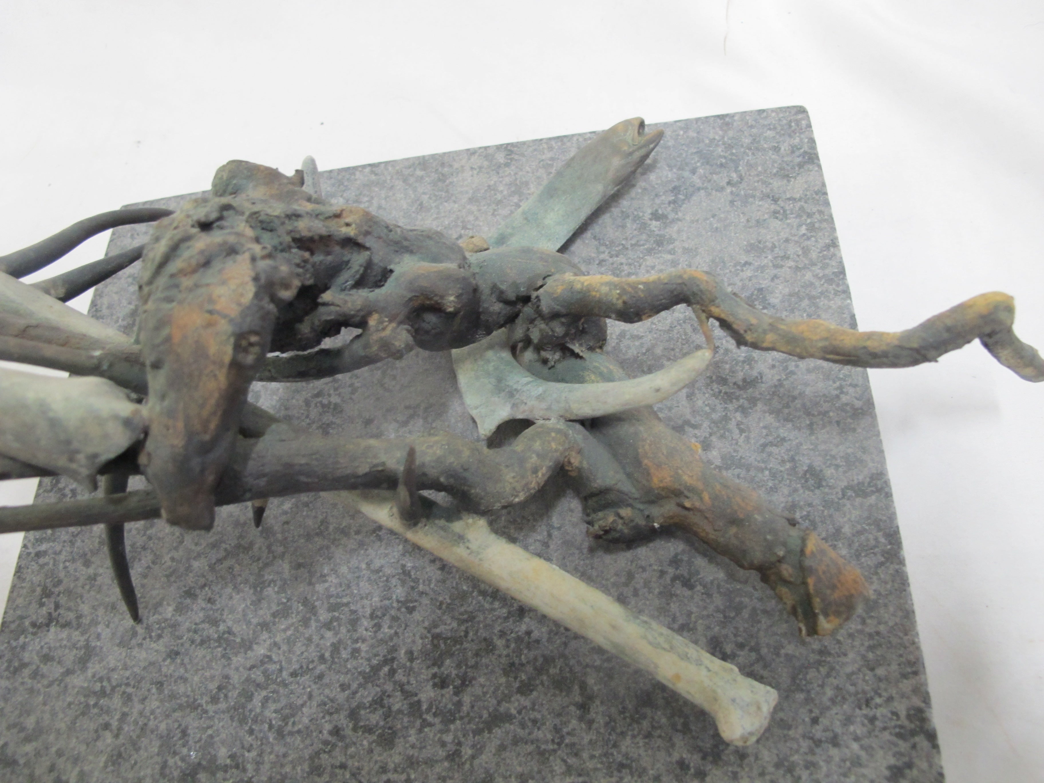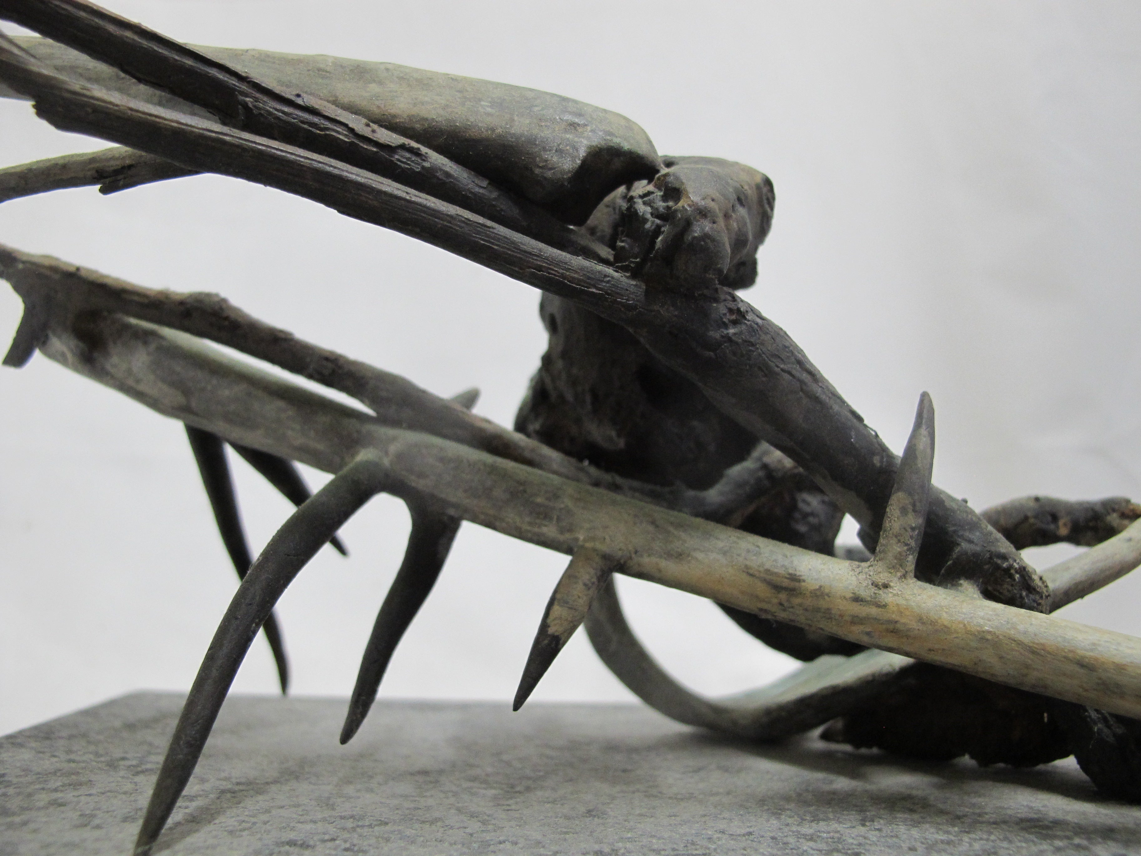 Frank Boyden (Pacific NW) art sculpture consisting of bronze jutting branches on marble base. Measures 20" X 8 1/4" X 8 1/2" tall.