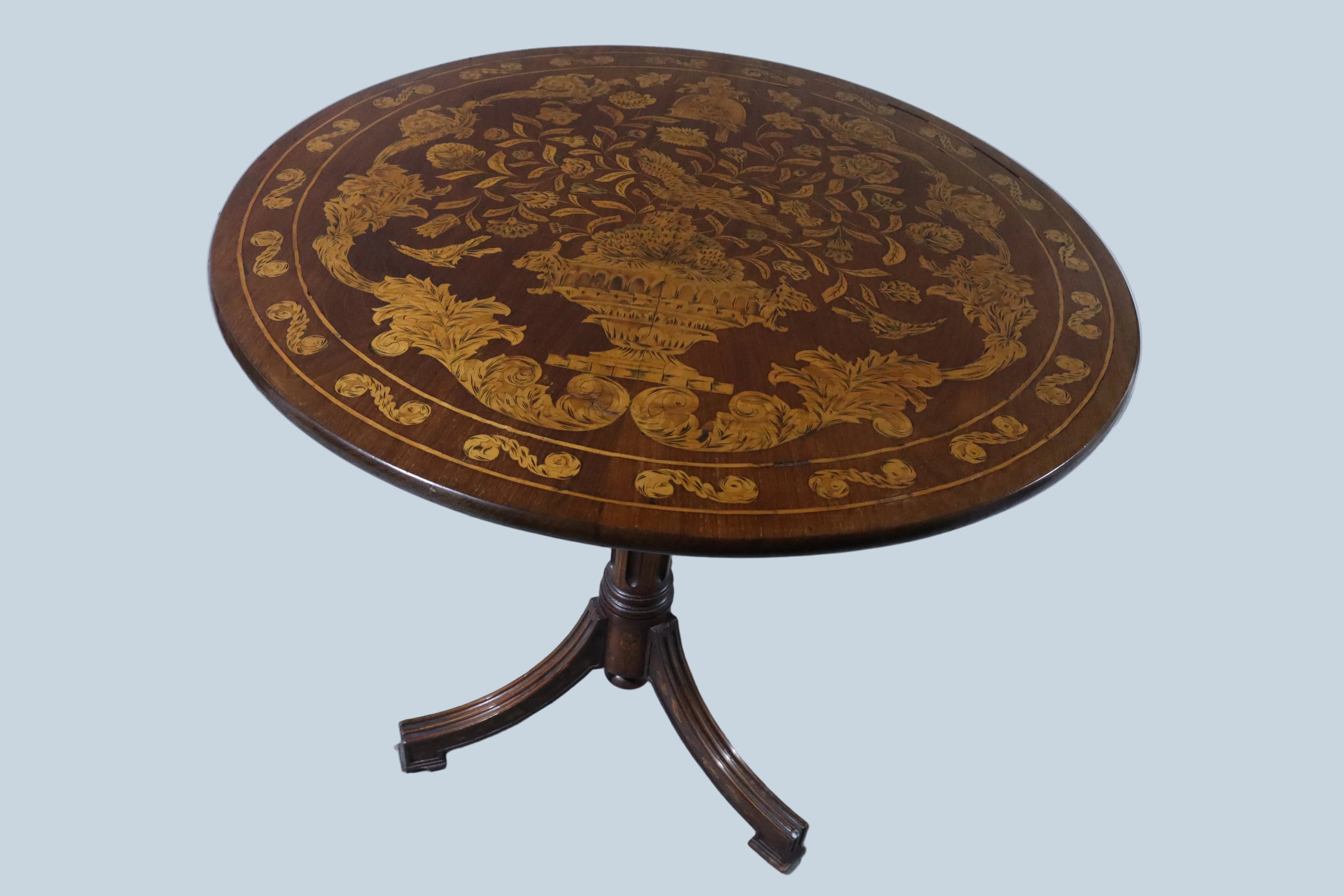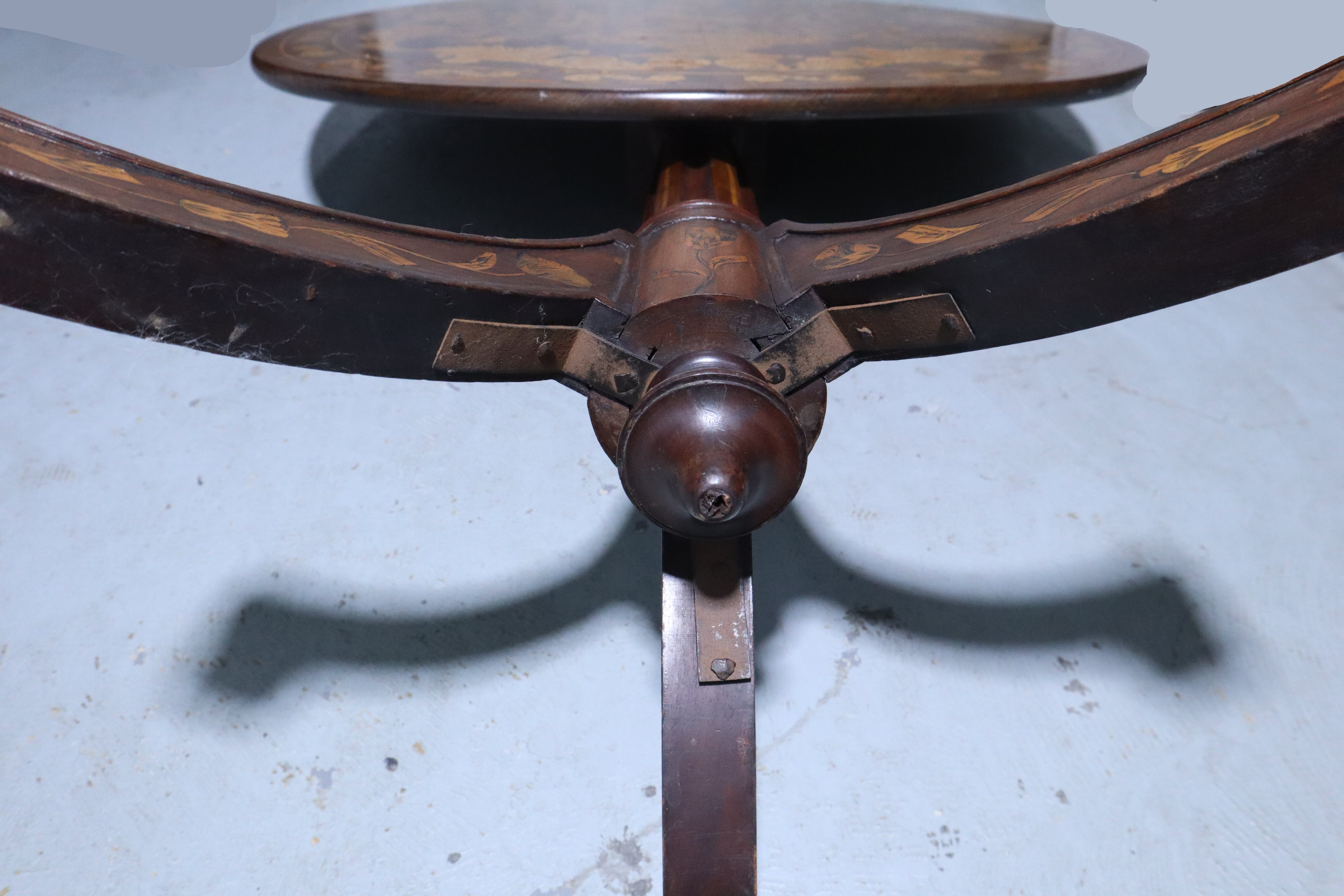Stunning Late 18thc. Dutch Marquetry Tilt Top Table With Box Wood Inlay
