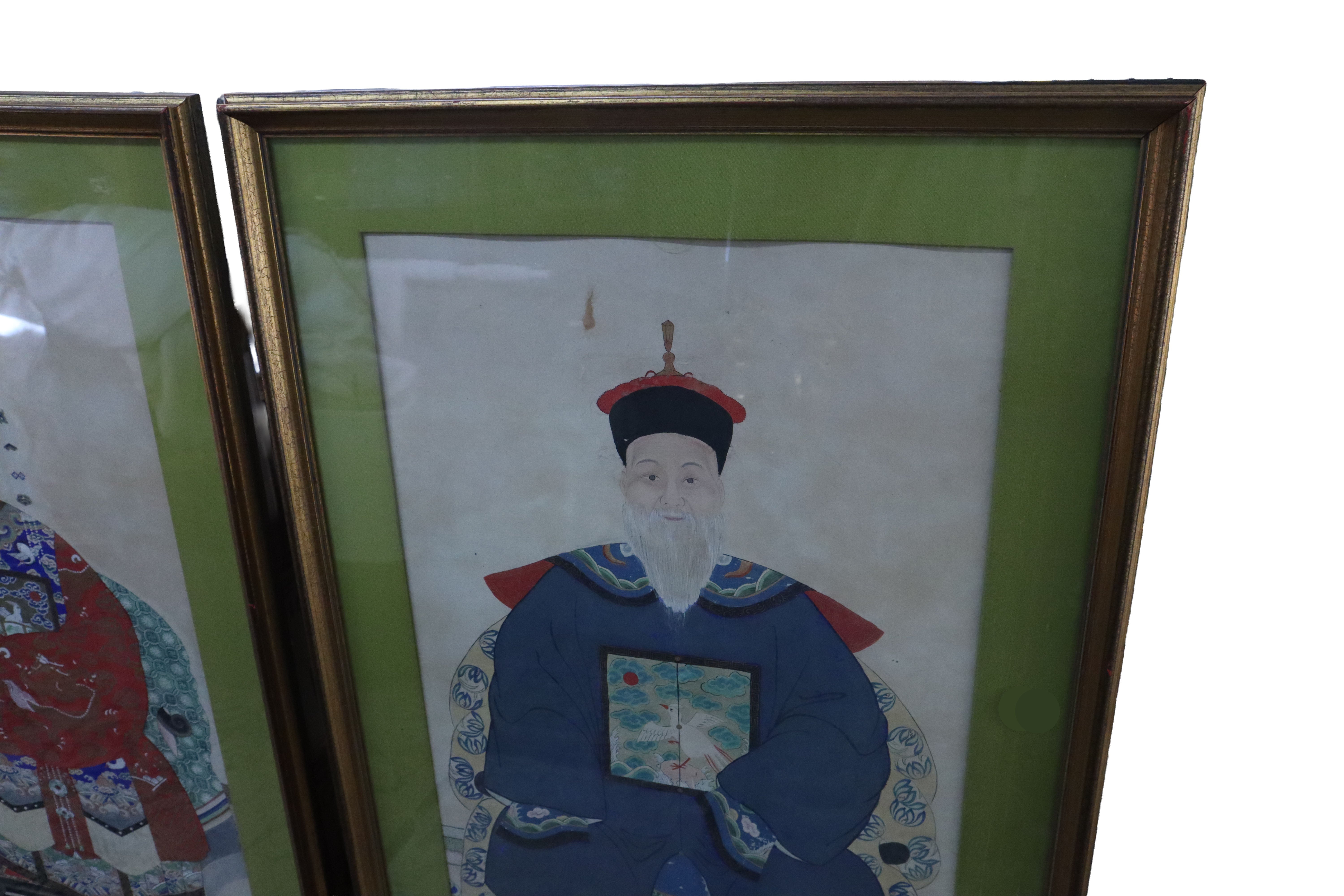 Pair of Large Antique Chinese 19th Century Painted Ancestor Portraits