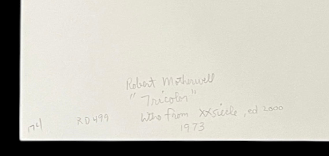 Robert Motherwell 1973 "Tricolor" XX Siècle Mourlot Original Lithograph Print