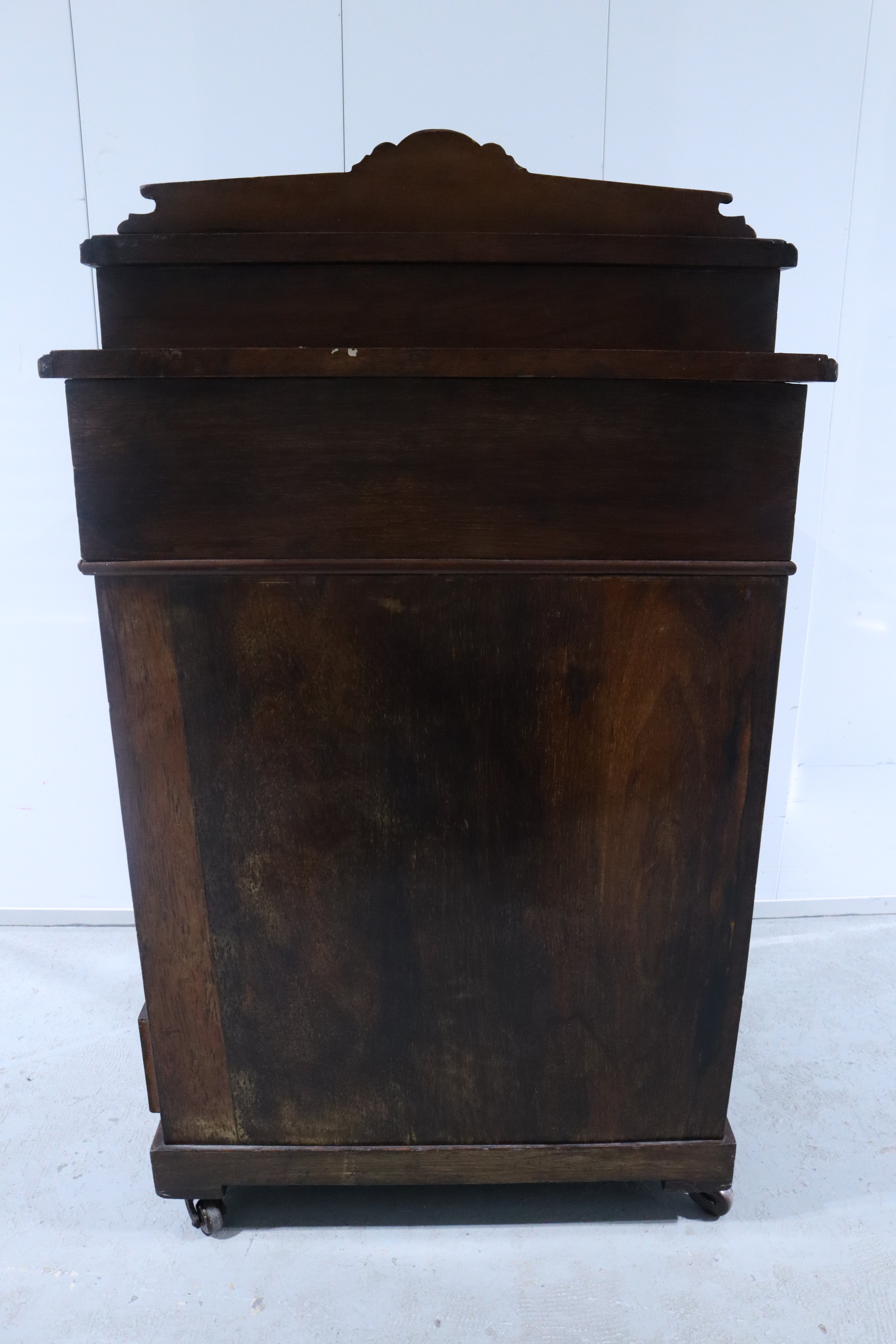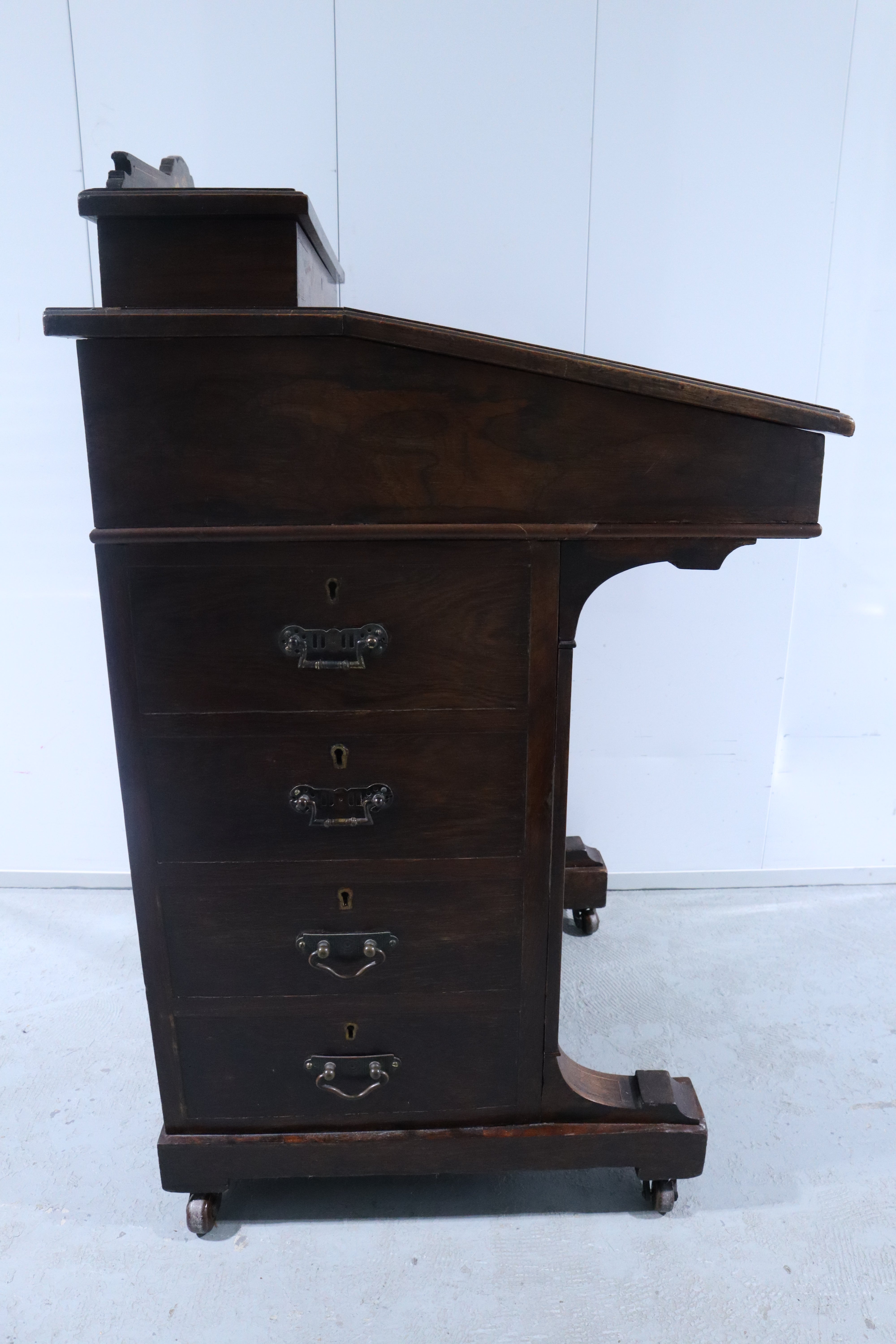 Beautiful Antique Rosewood Marquetry Writing Desk with Dual Flip Tops, Drawers & Wheels