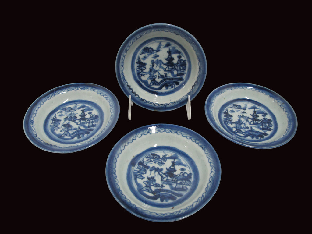 CHINESE Export Canton BLUE Village Scene Porcelain Dessert 5 3/4" Bowl Set