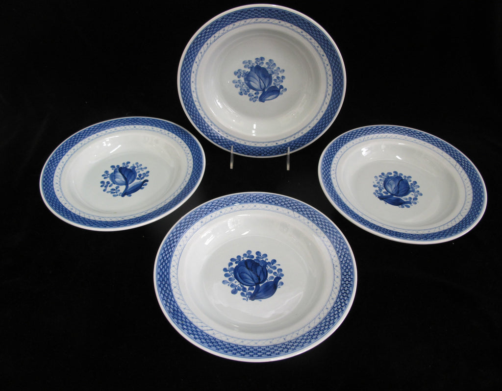 ROYAL COPENHAGEN 950 Aluminia Faience Tranquebar Blue 10" SOUP Bowl 4pc Set