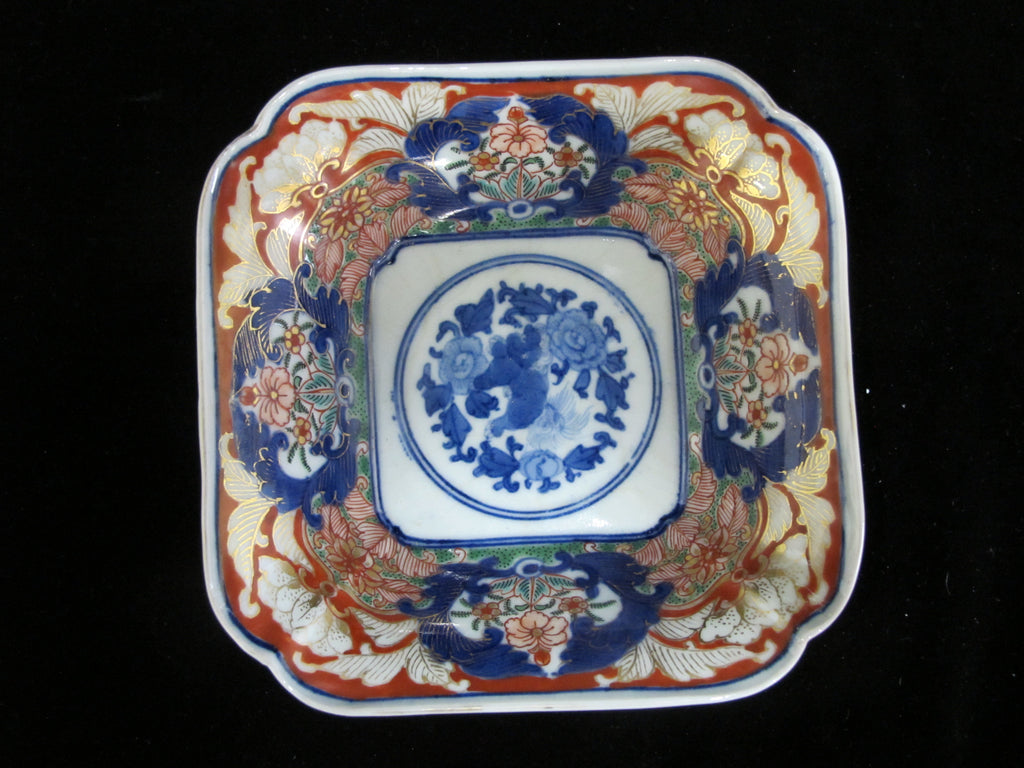 Japanese Small IMARI Ornate Gilt Flower Porcelain SQUARE Bowl with Scalloped Rim