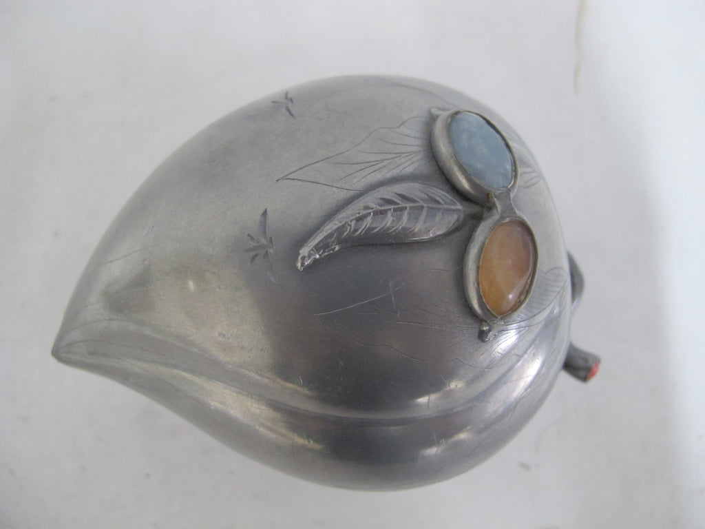 Antique CHINESE Inlaid Gemstone Pewter FRUIT Peach Form Altar or Trinket Box