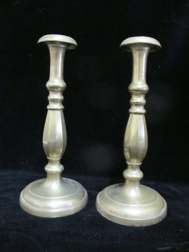 Antique Heavy BRASS Gothic 12" Mantel CANDLESTICK Candle Holder Pair