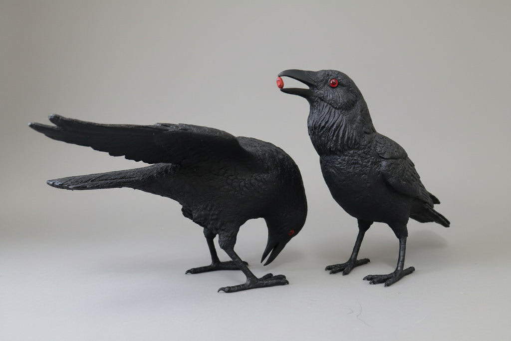 JIM EPPLER Pair of Signed Limited Edition Bronze RAVENS IV & XI Large Bird Sculpture