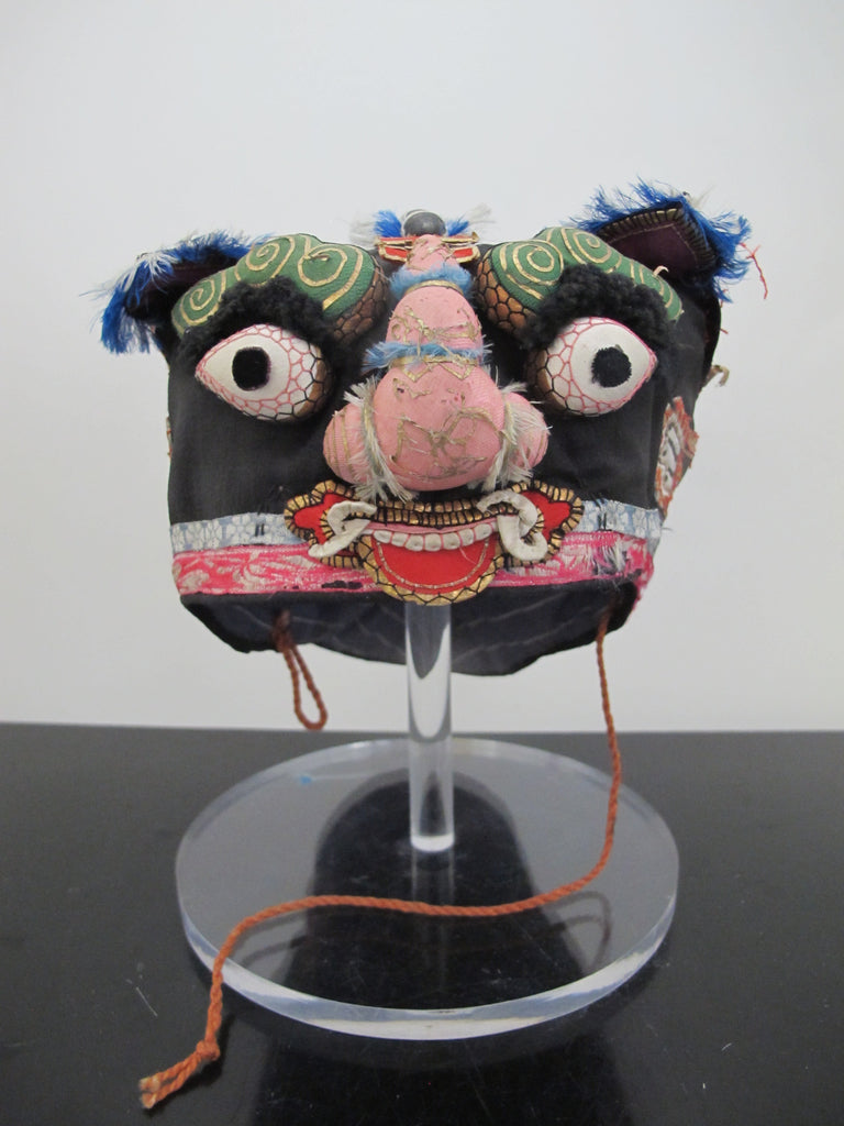 Antique CHINESE Embroidered Silk DRAGON Tiger Foo Dog Festival Child Hat