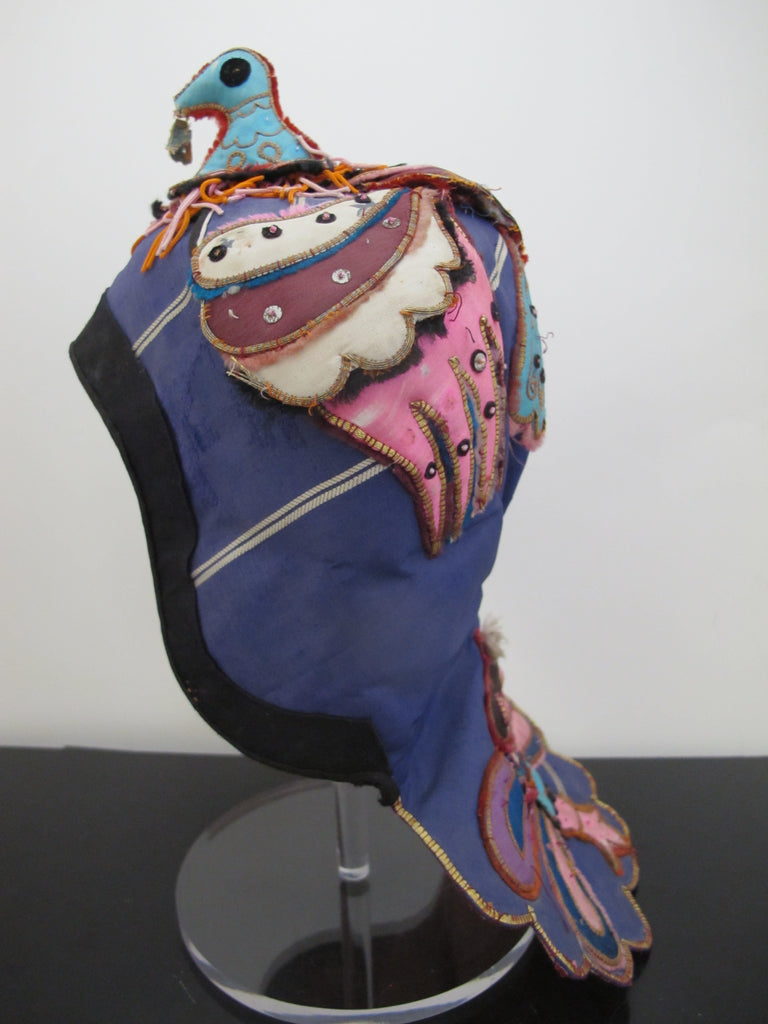 Antique CHINESE Ornate Embroidered Silk PEACOCK Bird Festival Childrens Hat