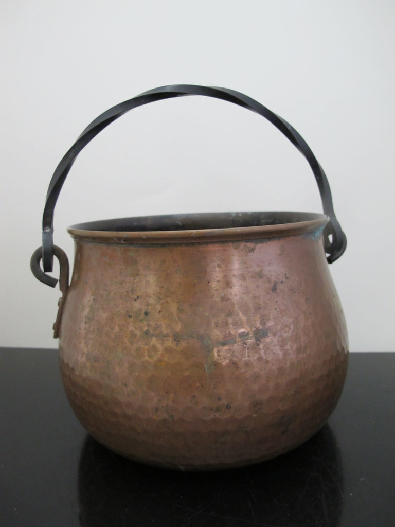 Vintage Hand Hammered Honeycomb Large COPPER Soup Pot with Metal Chain Handle