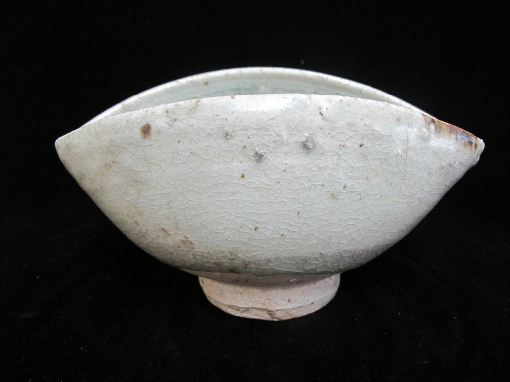 Chinese SONG YUAN Rustic Style CELADON Incised Floral Oblong Pottery BOWL