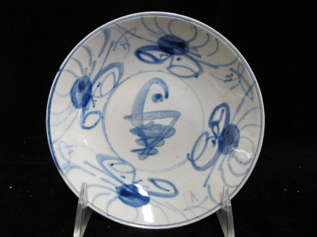 Antique CHINESE Blue & White SWATOW Porcelain Shallow Bowl Saucer CRAB Plate Set