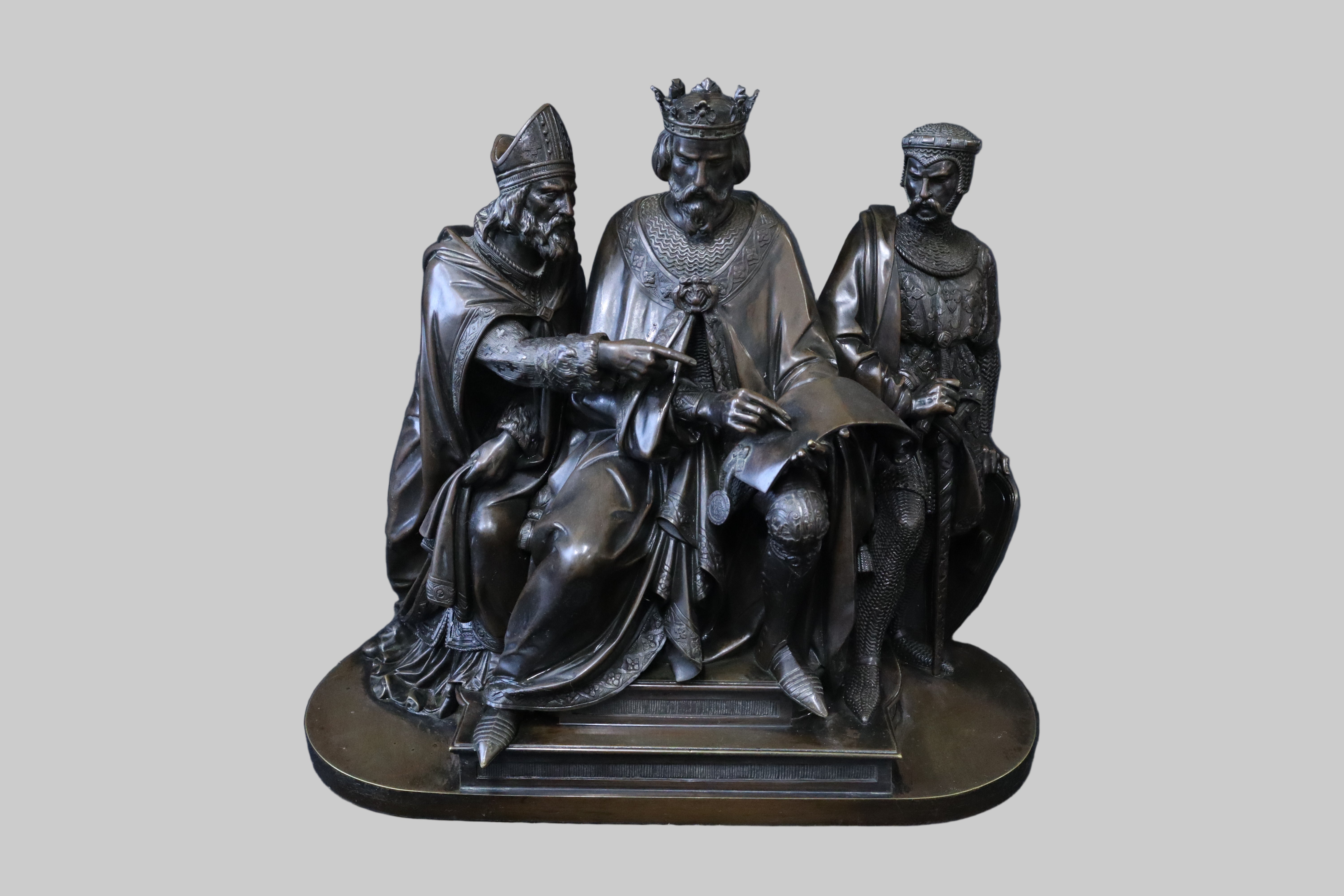 Antique François Theodore Devaulx Bronze Magna Carte Sculpture 1808-1870