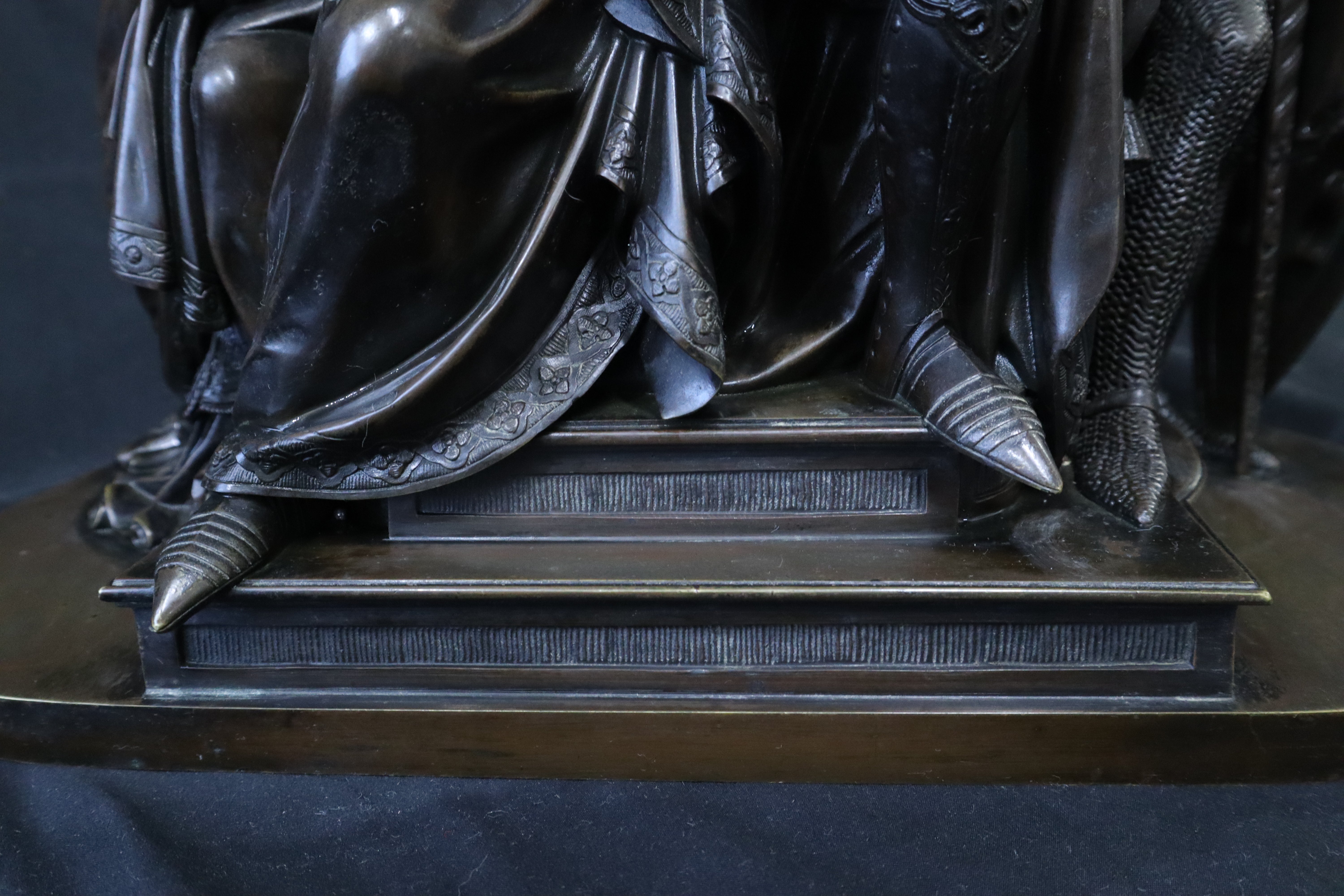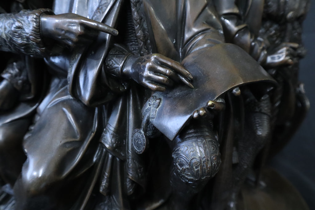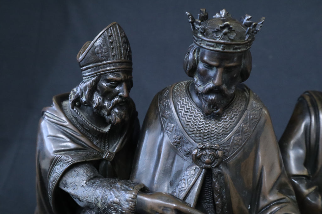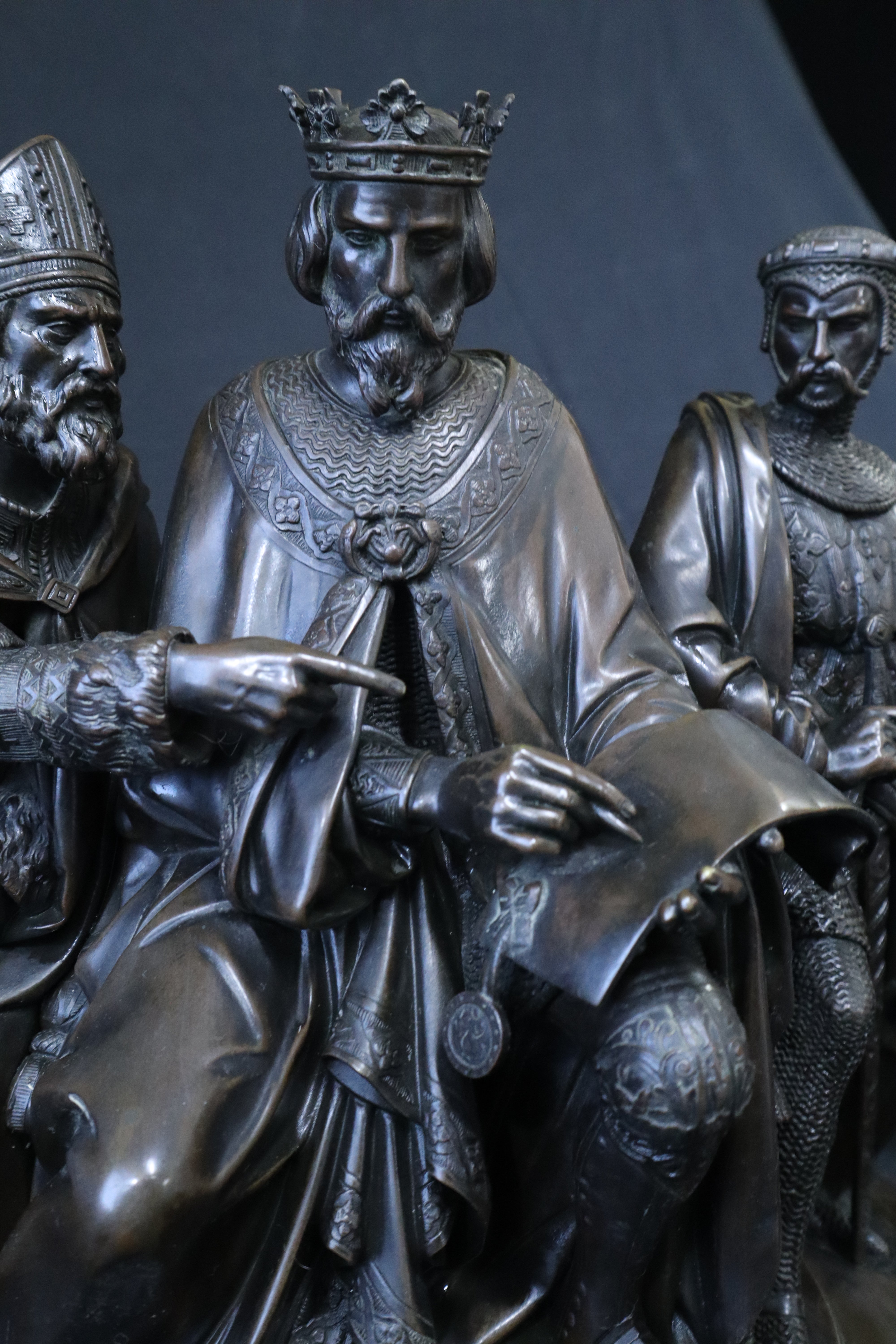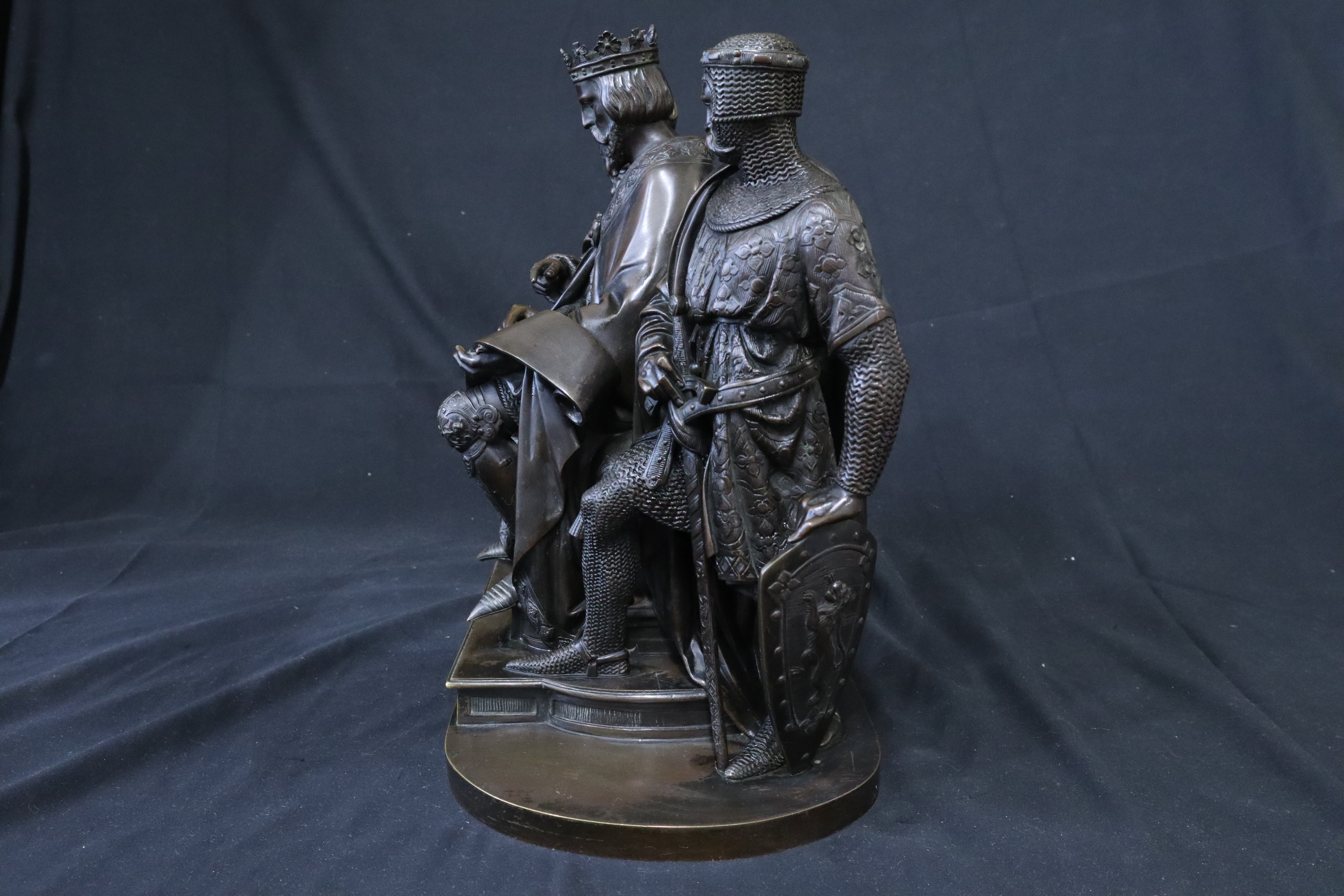 Gorgeous "The signing of the Magna Carta" bronze with dark patina sculpture by famous French sculptor François Theodore Devaulx (1808-1870). Devaulx was known for extremely lifelike and expressive bronzes of figures, specializing in works of figurative fiction and historical moments. This work is number 3376 on the back and engraved on the inside with the sequence 540-03-7967.