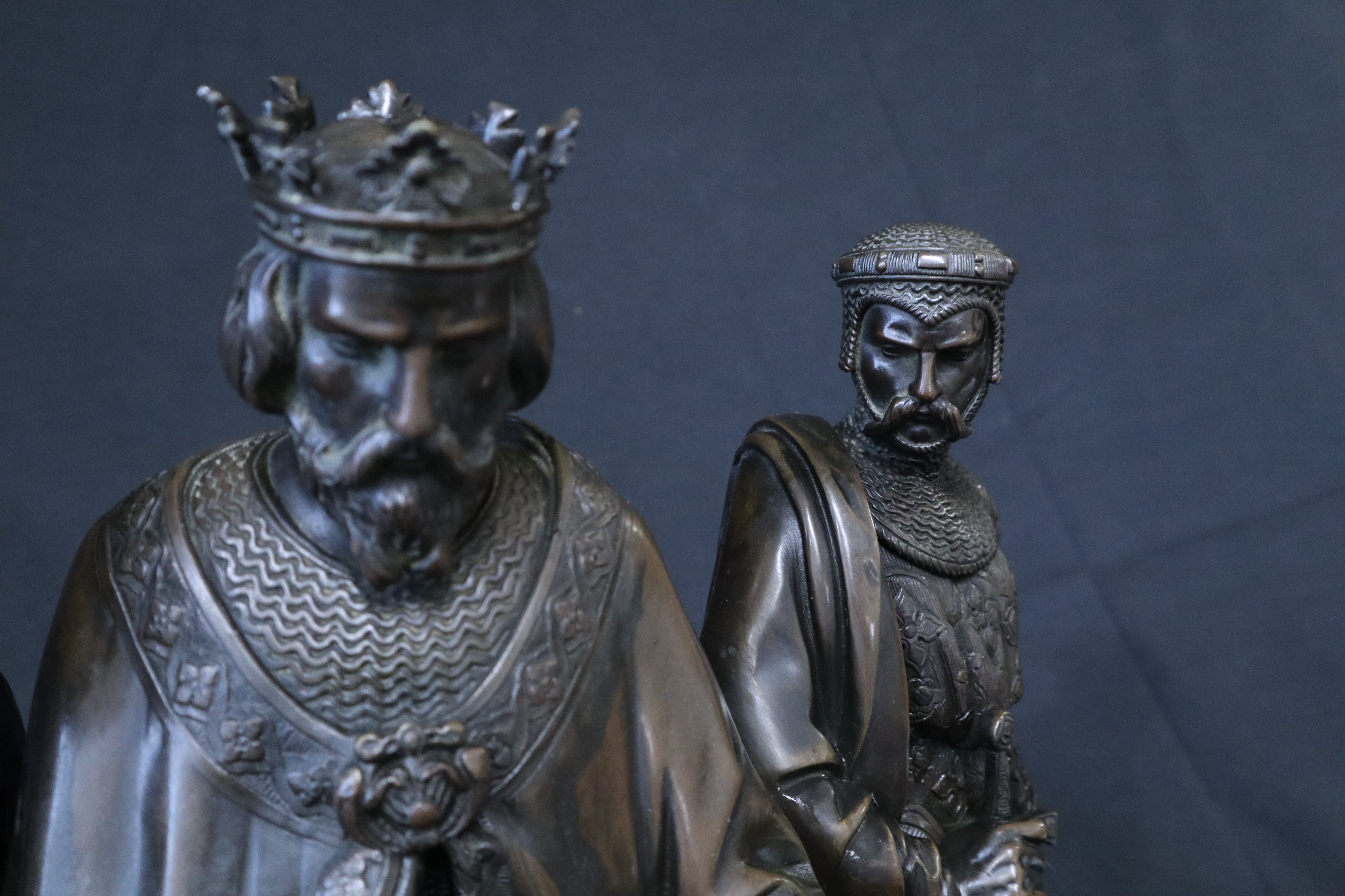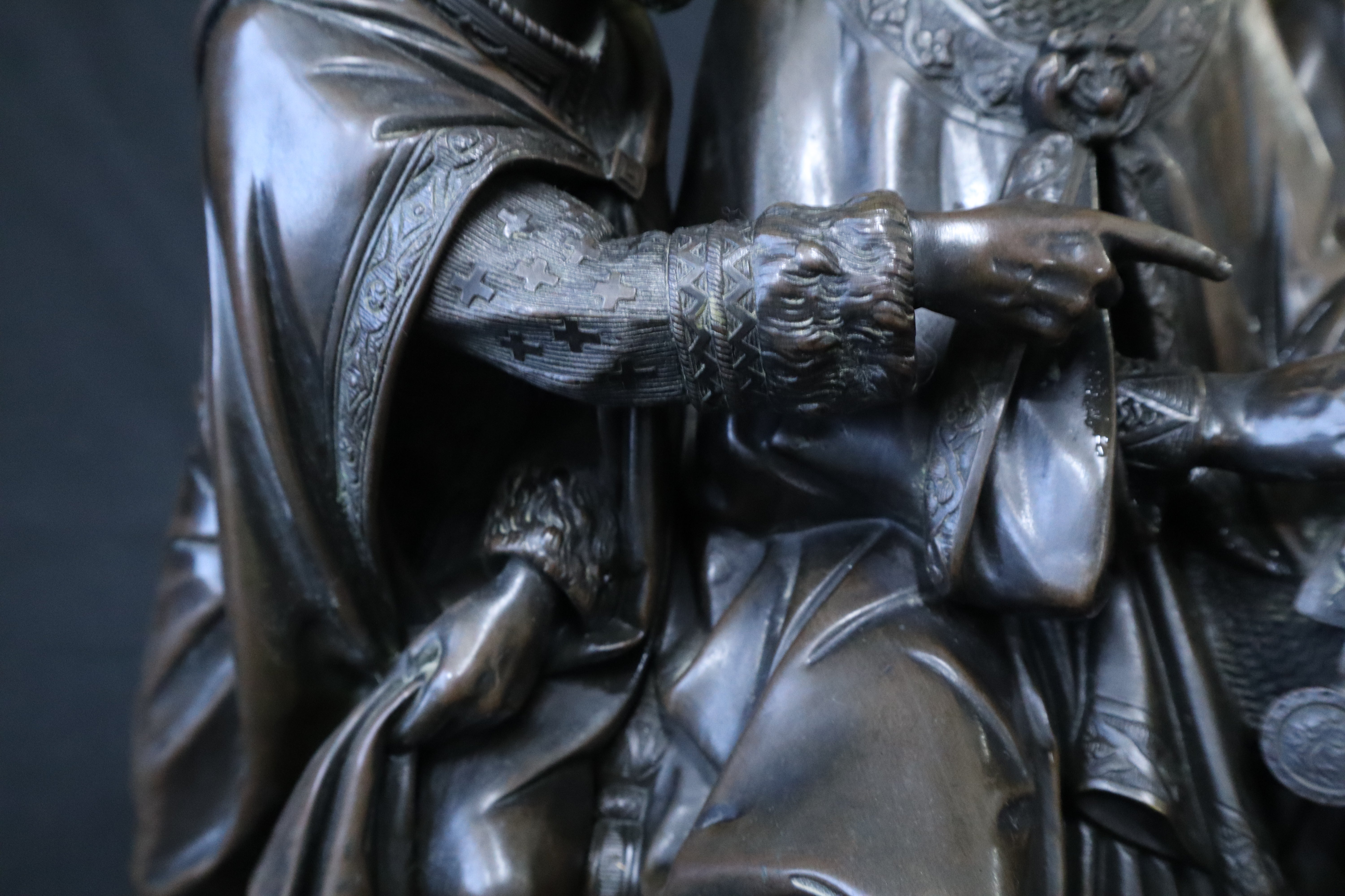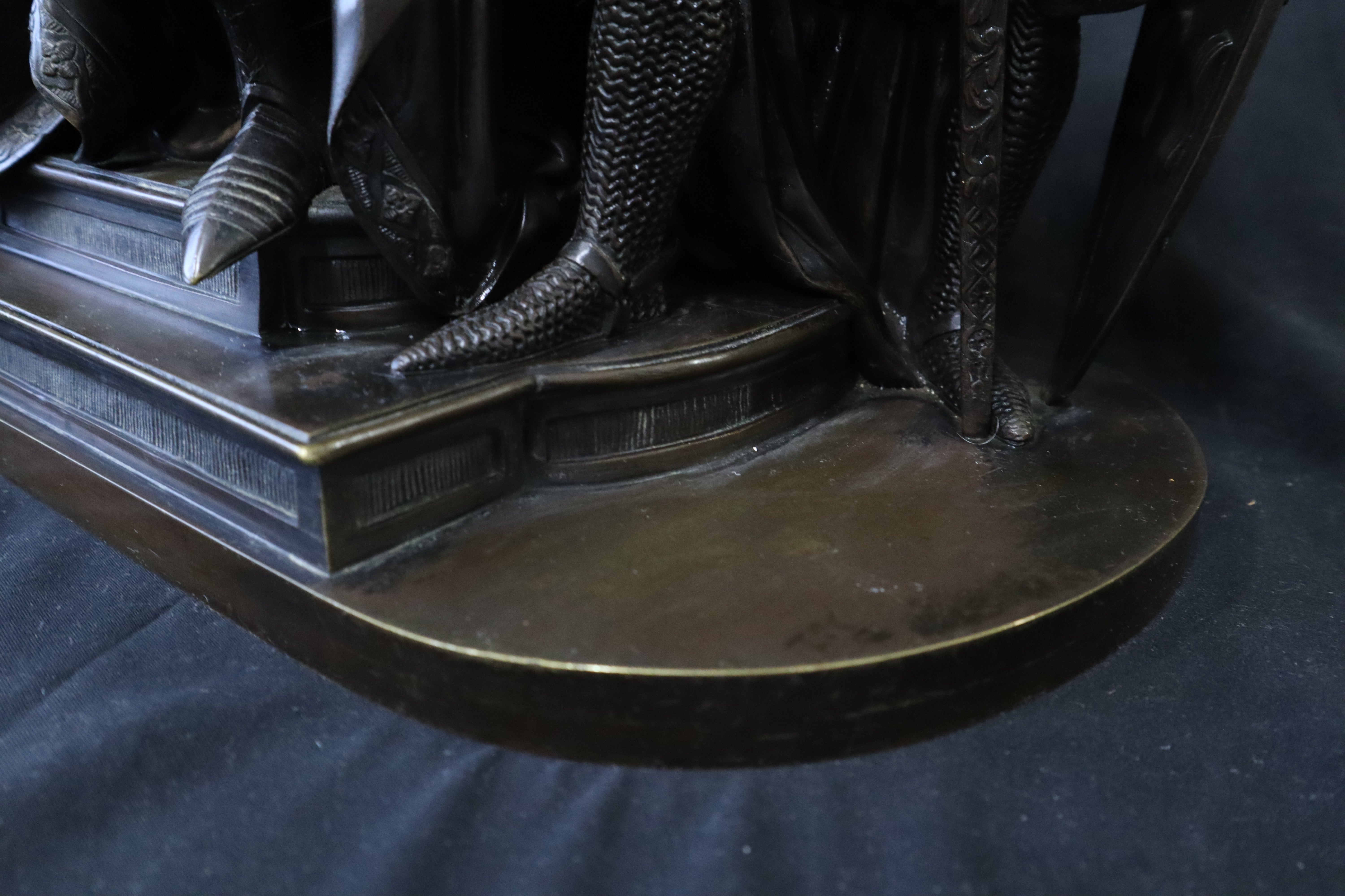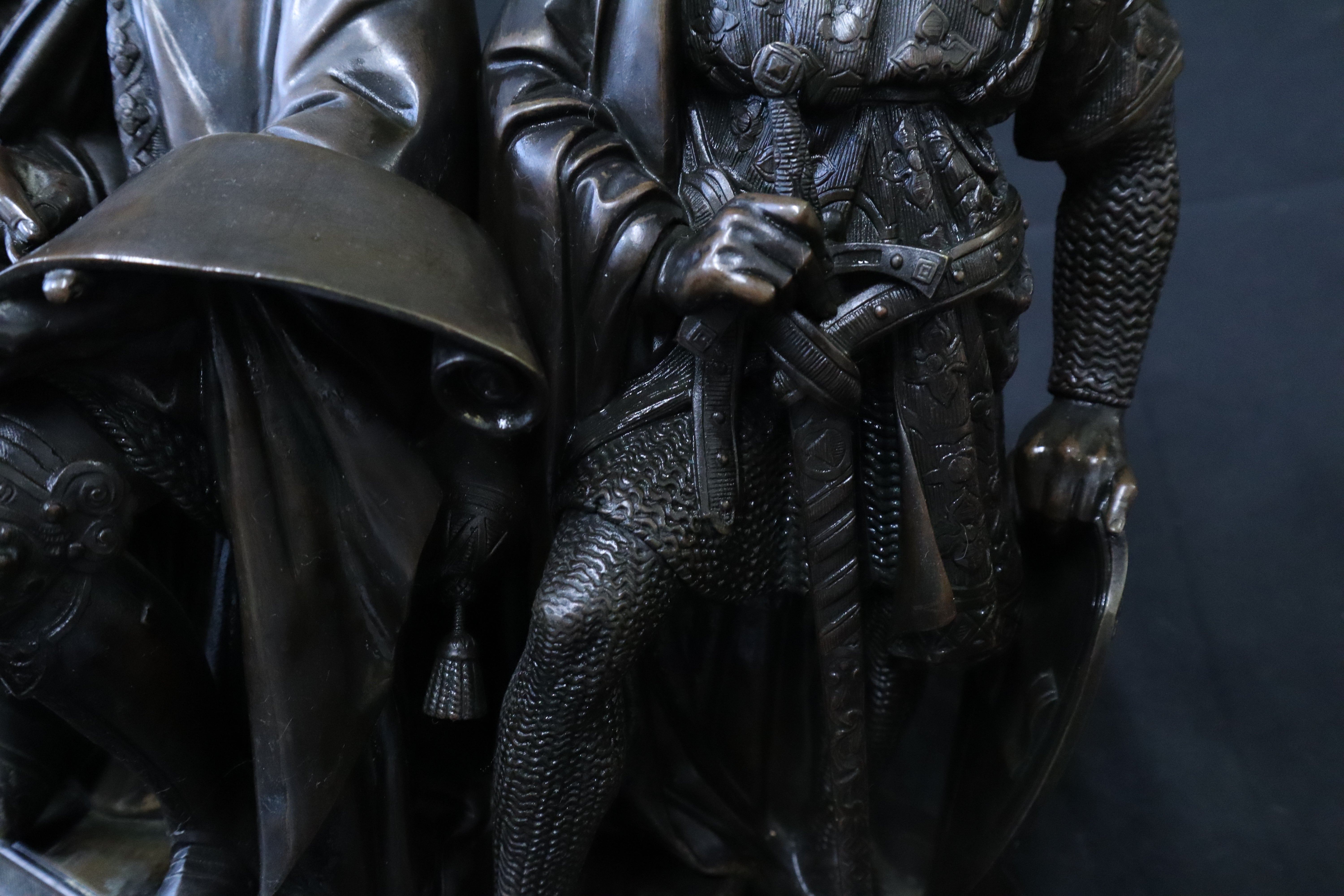 Gorgeous "The signing of the Magna Carta" bronze with dark patina sculpture by famous French sculptor François Theodore Devaulx (1808-1870). Devaulx was known for extremely lifelike and expressive bronzes of figures, specializing in works of figurative fiction and historical moments. This work is number 3376 on the back and engraved on the inside with the sequence 540-03-7967.