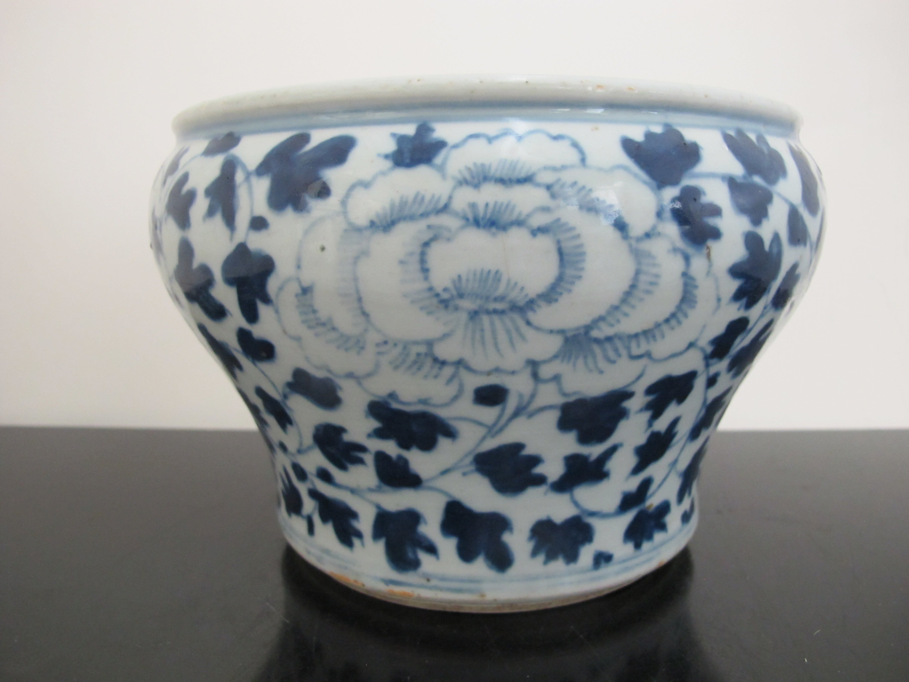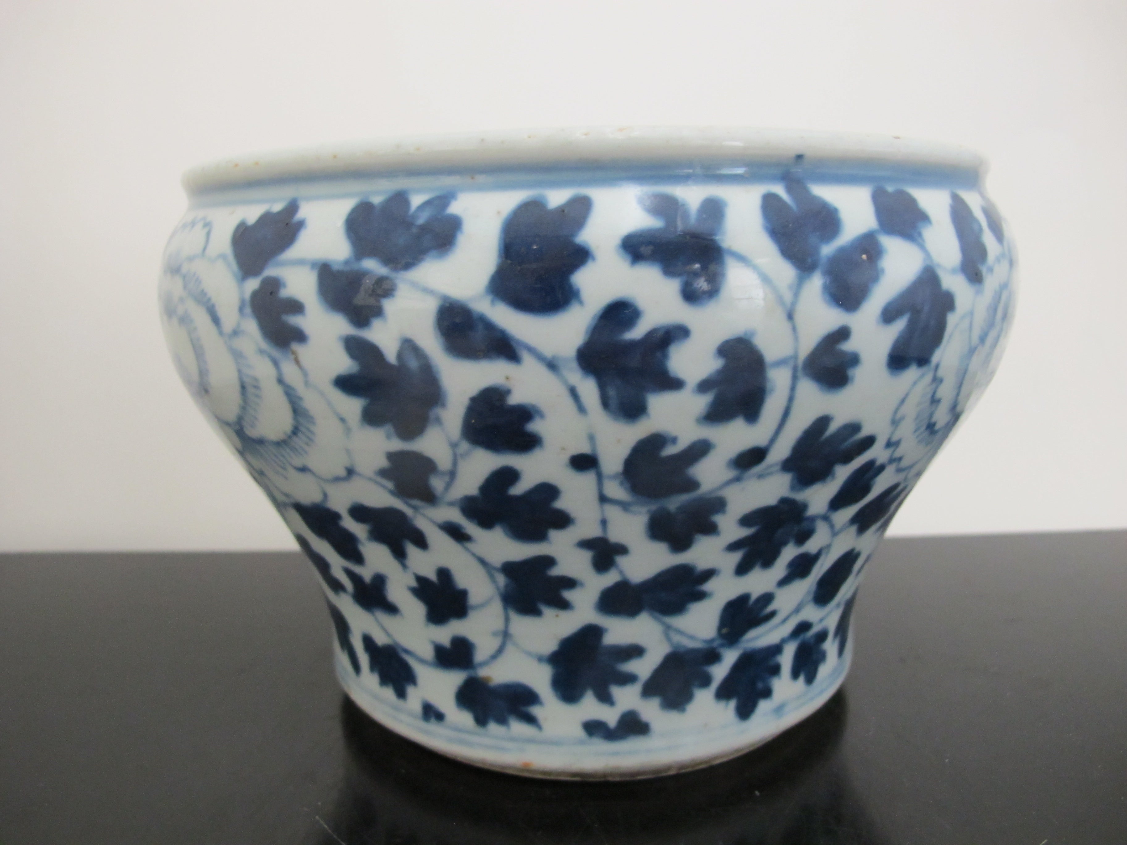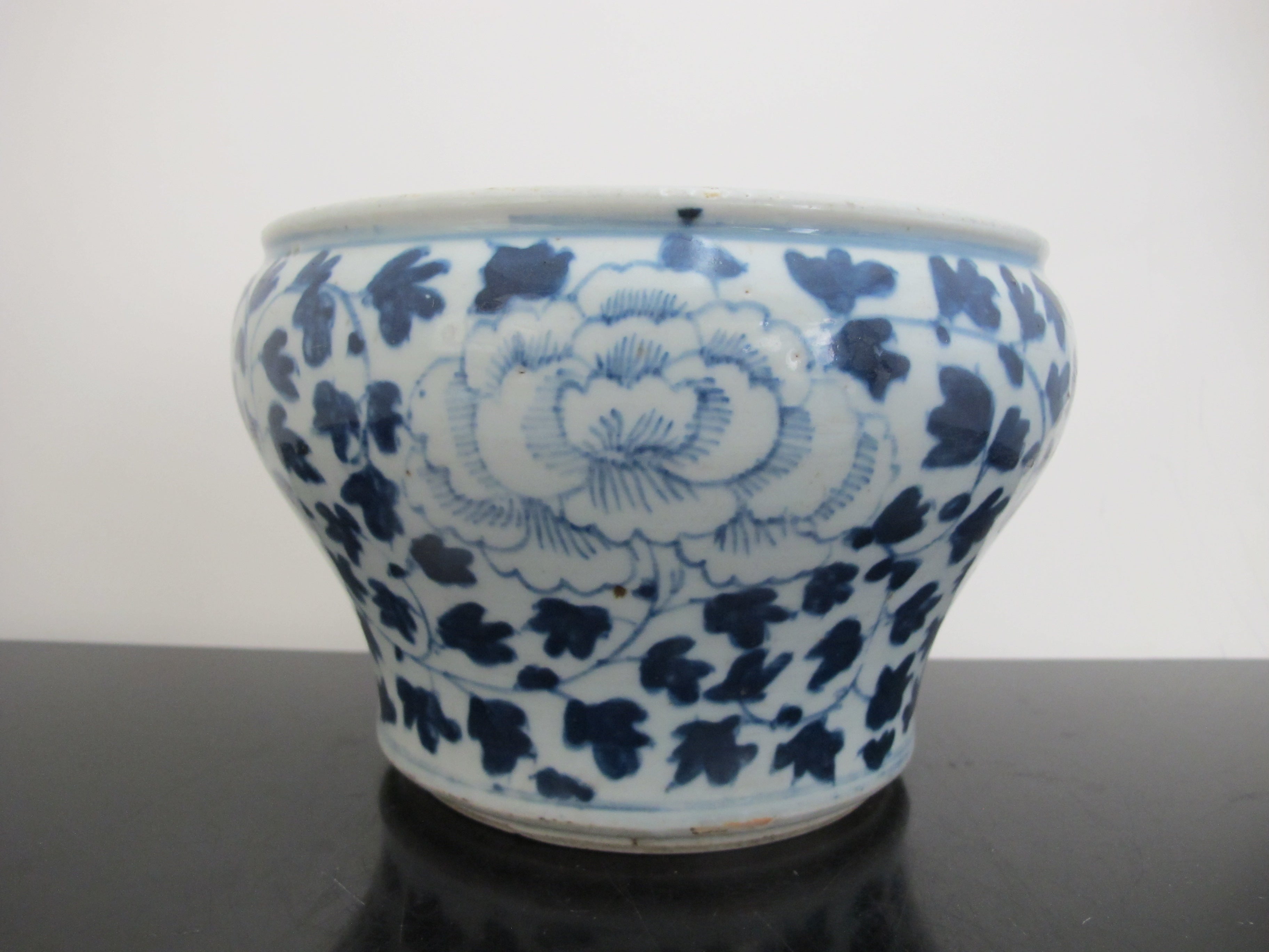 CHINESE Qing Dynasty Blue & White Porcelain FLOWER Vines Cache Spittoon Pot