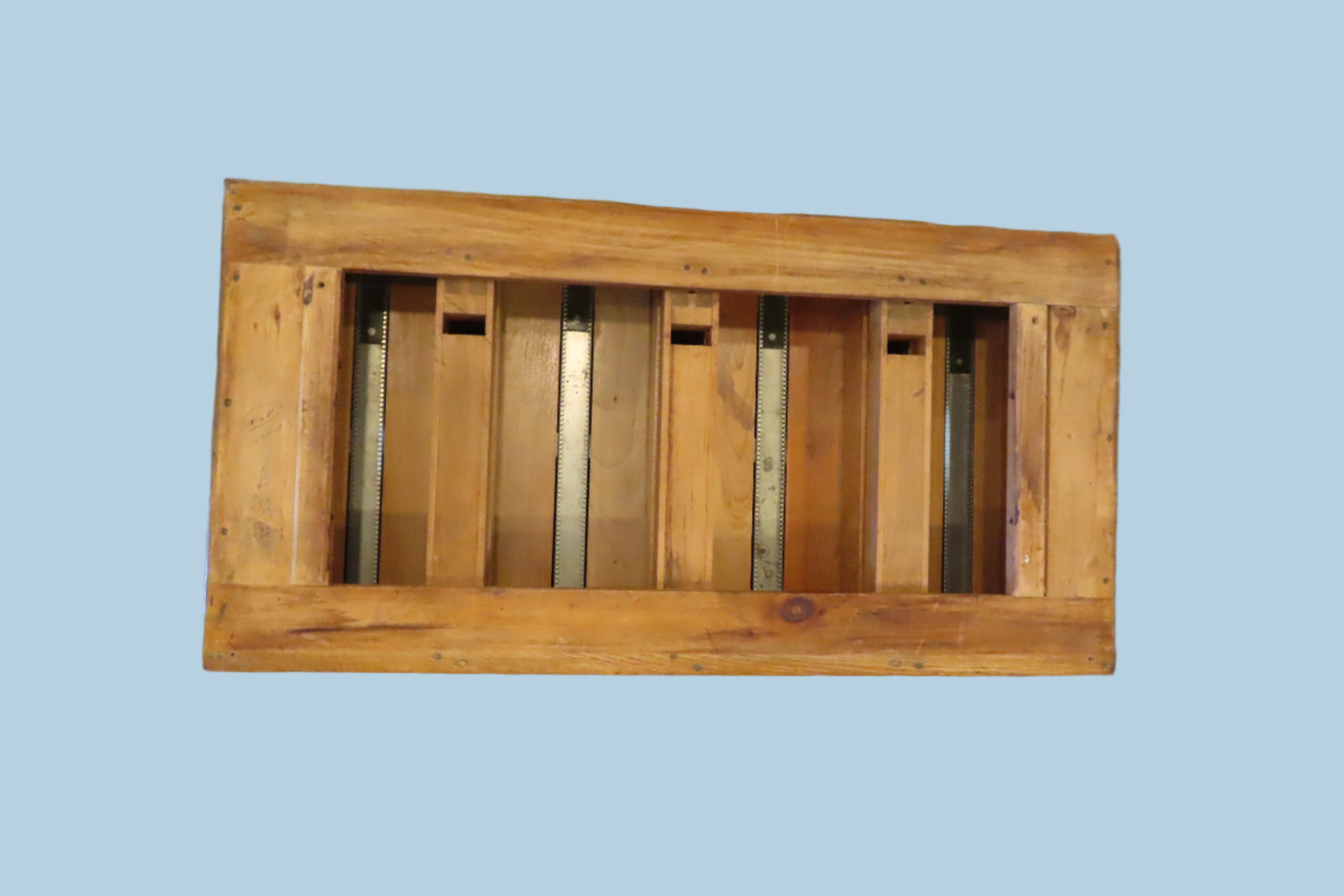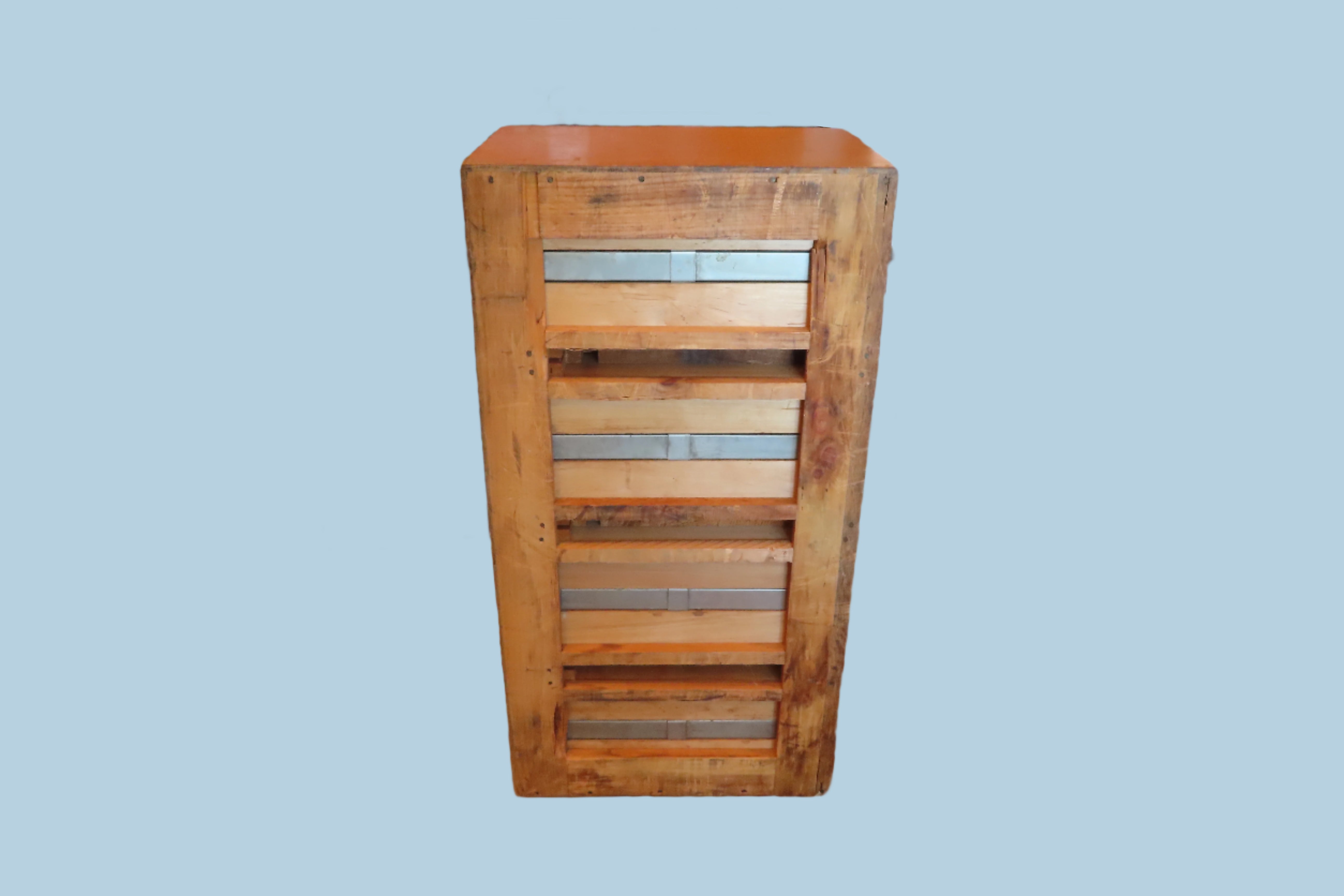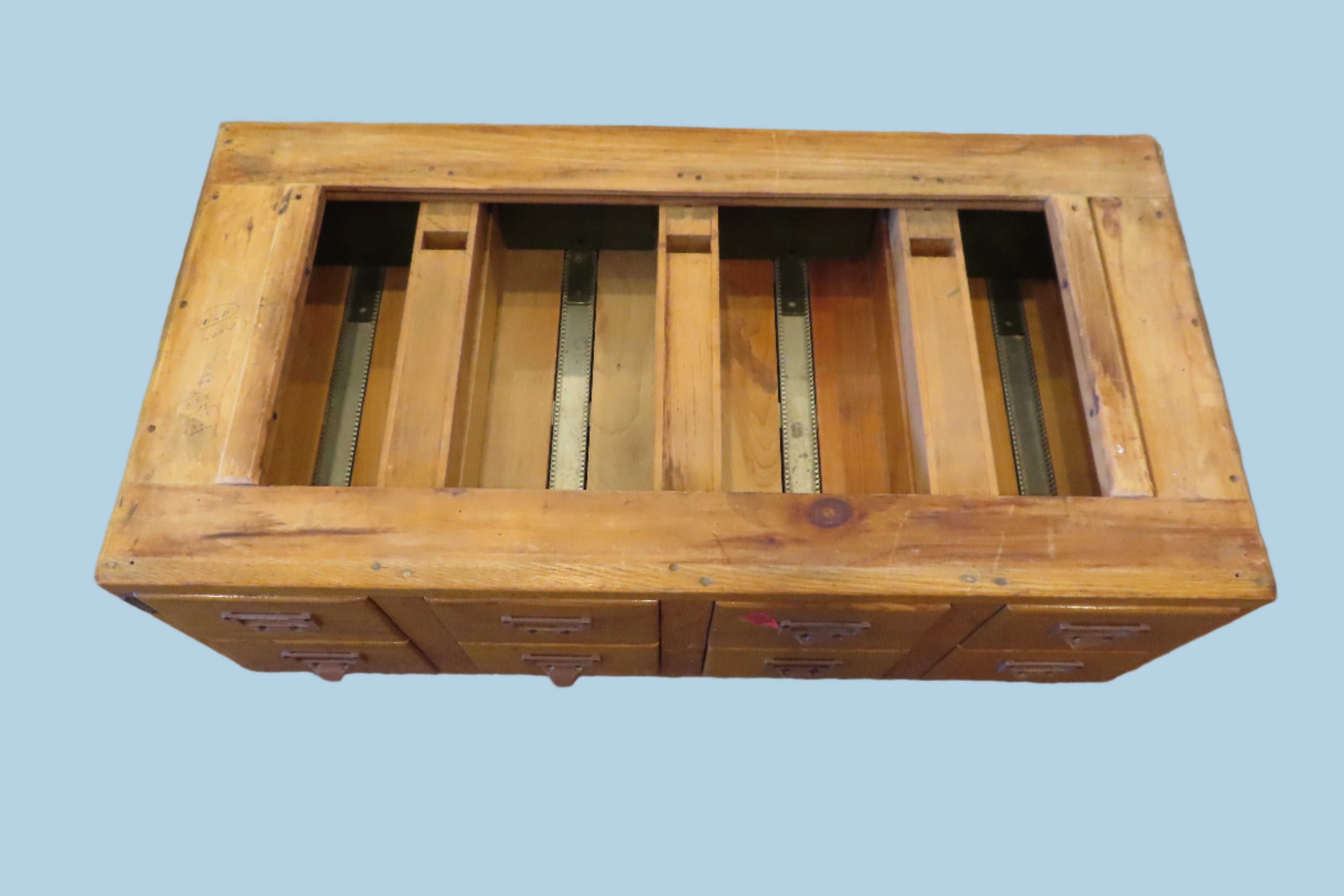 Very cool vintage oak library card filing cabinet. 8 drawers in total, situated in 2 rows of 4. Made to stack with others of it's kind. Super cool for organizing or just for decorating a space with a more vintage aesthetic. Tag on left front side says Inventory Number 163066.