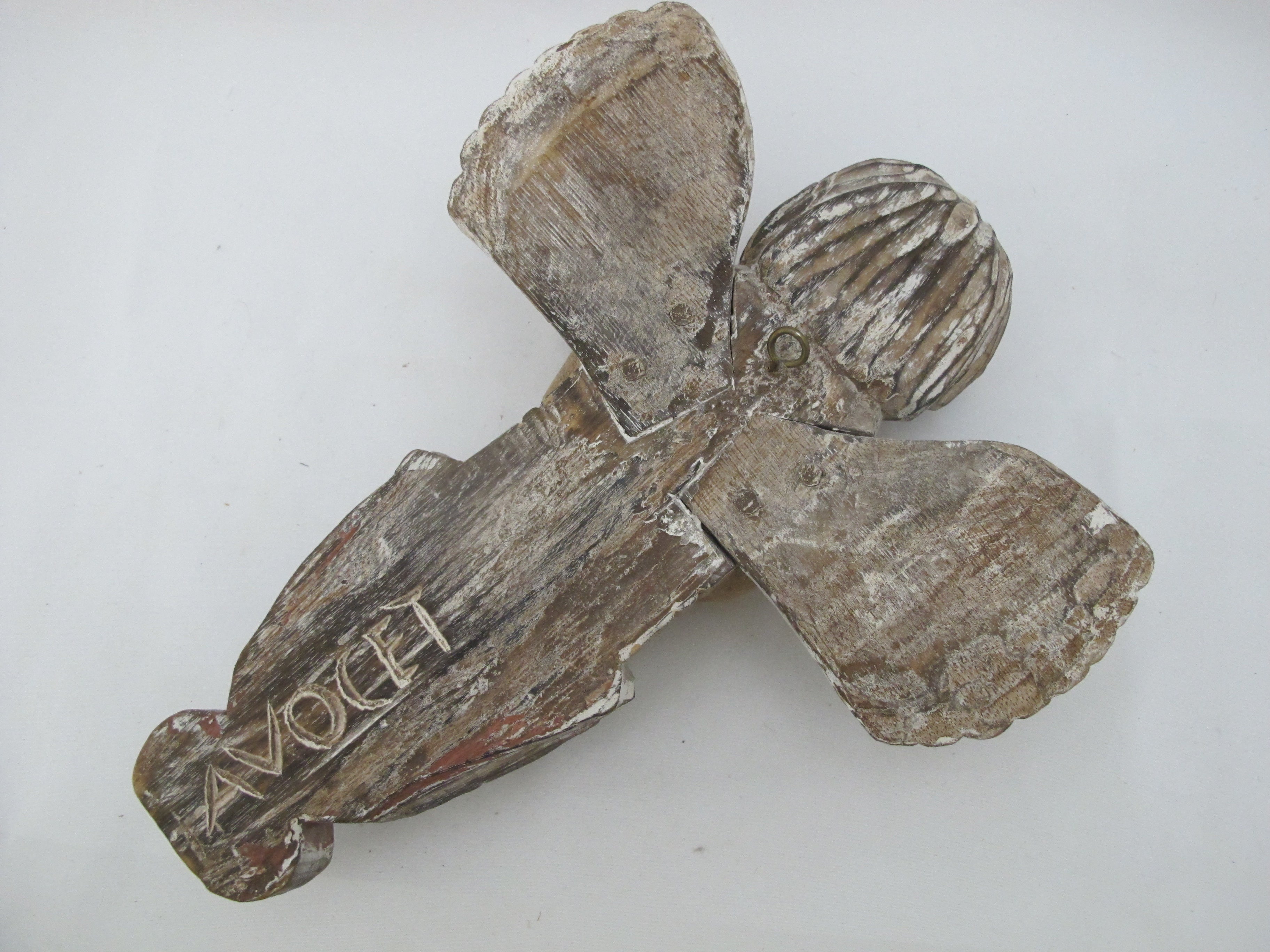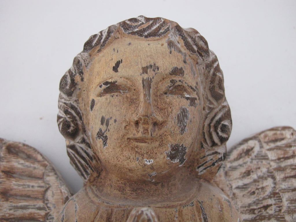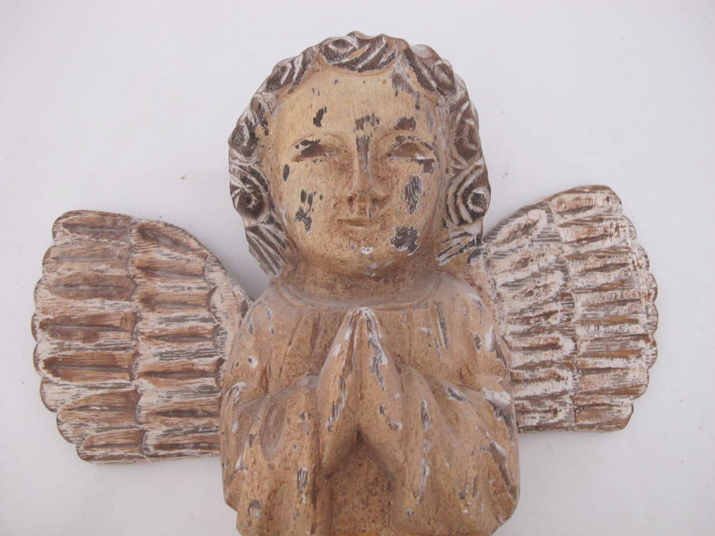 Italian Carved Wood PRAYING ANGEL Cherub Folk Wall Art Signed AVOCET