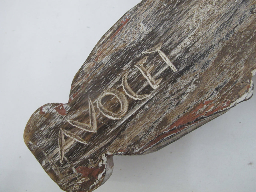Metal loop at back for hanging. Carved signature at back "Avocet". Excellent condition.