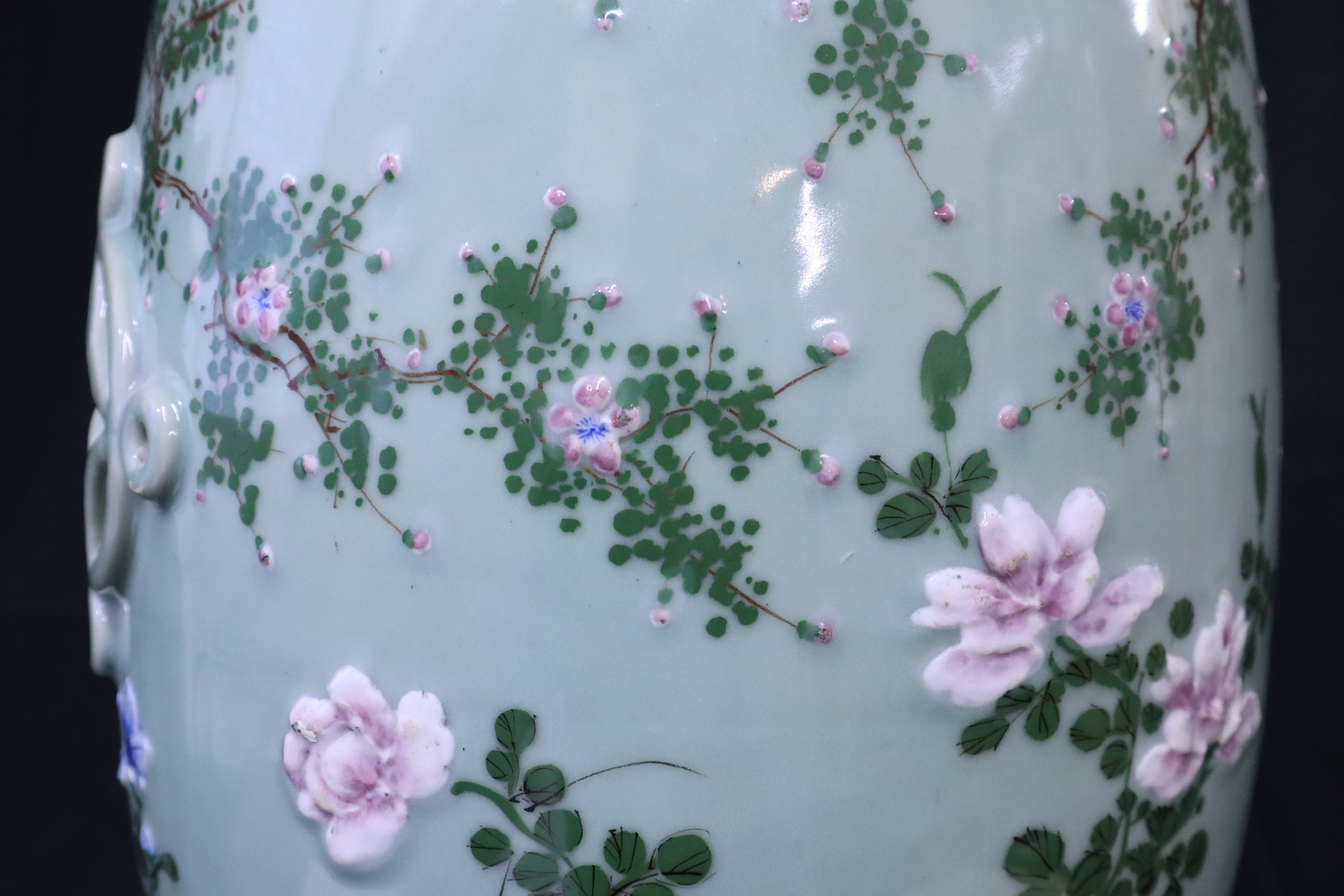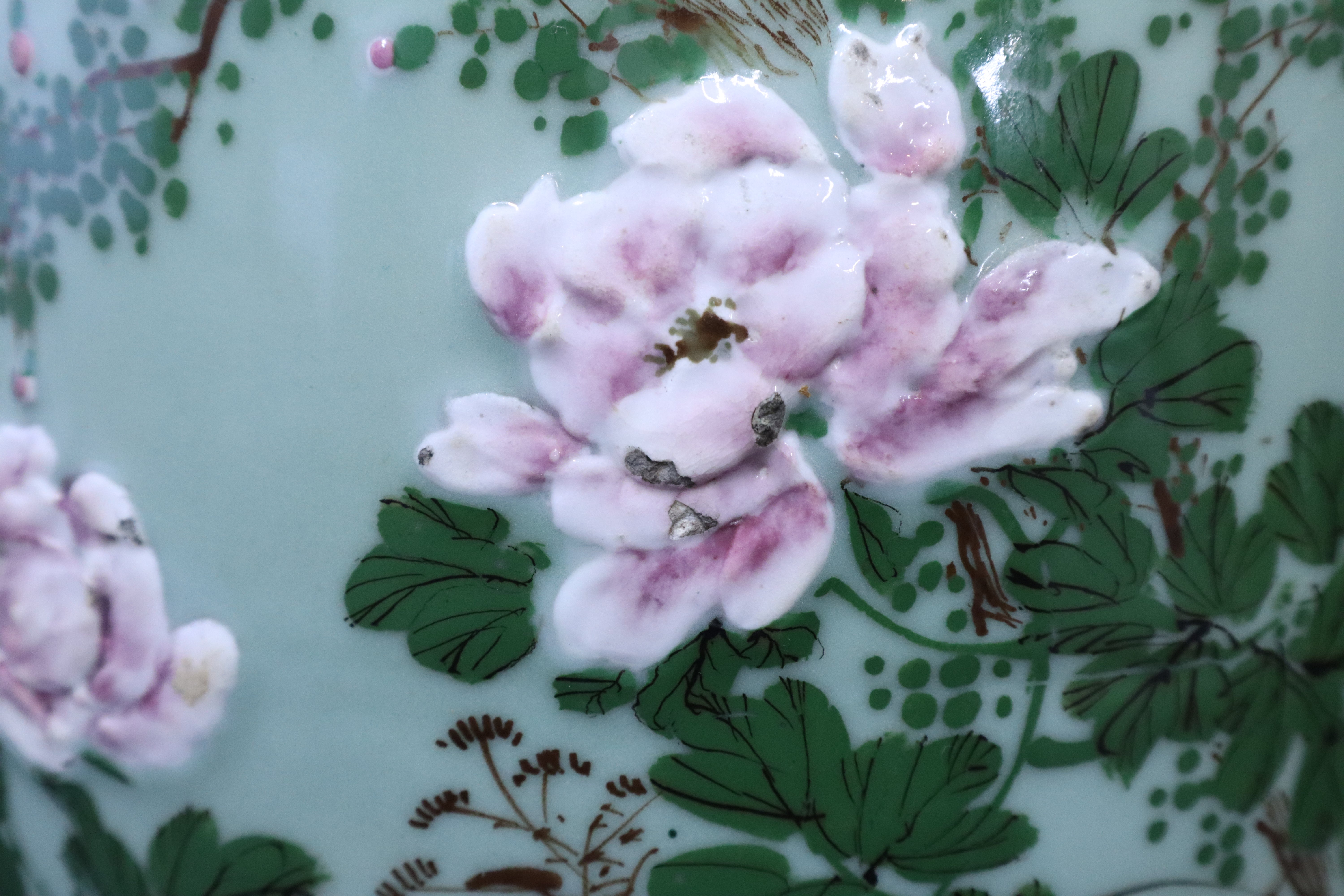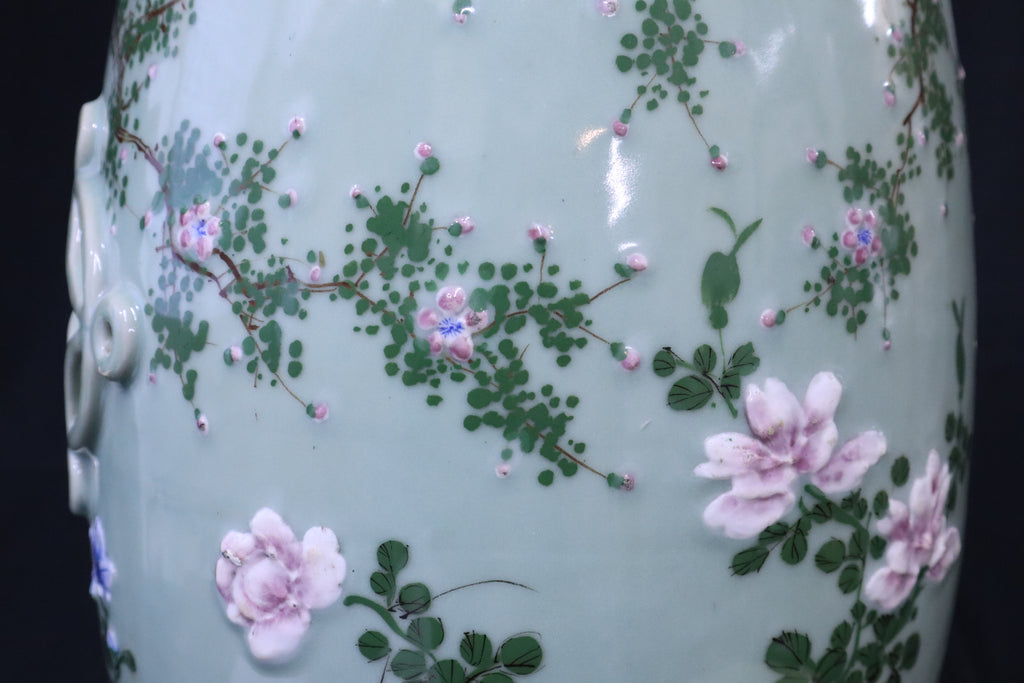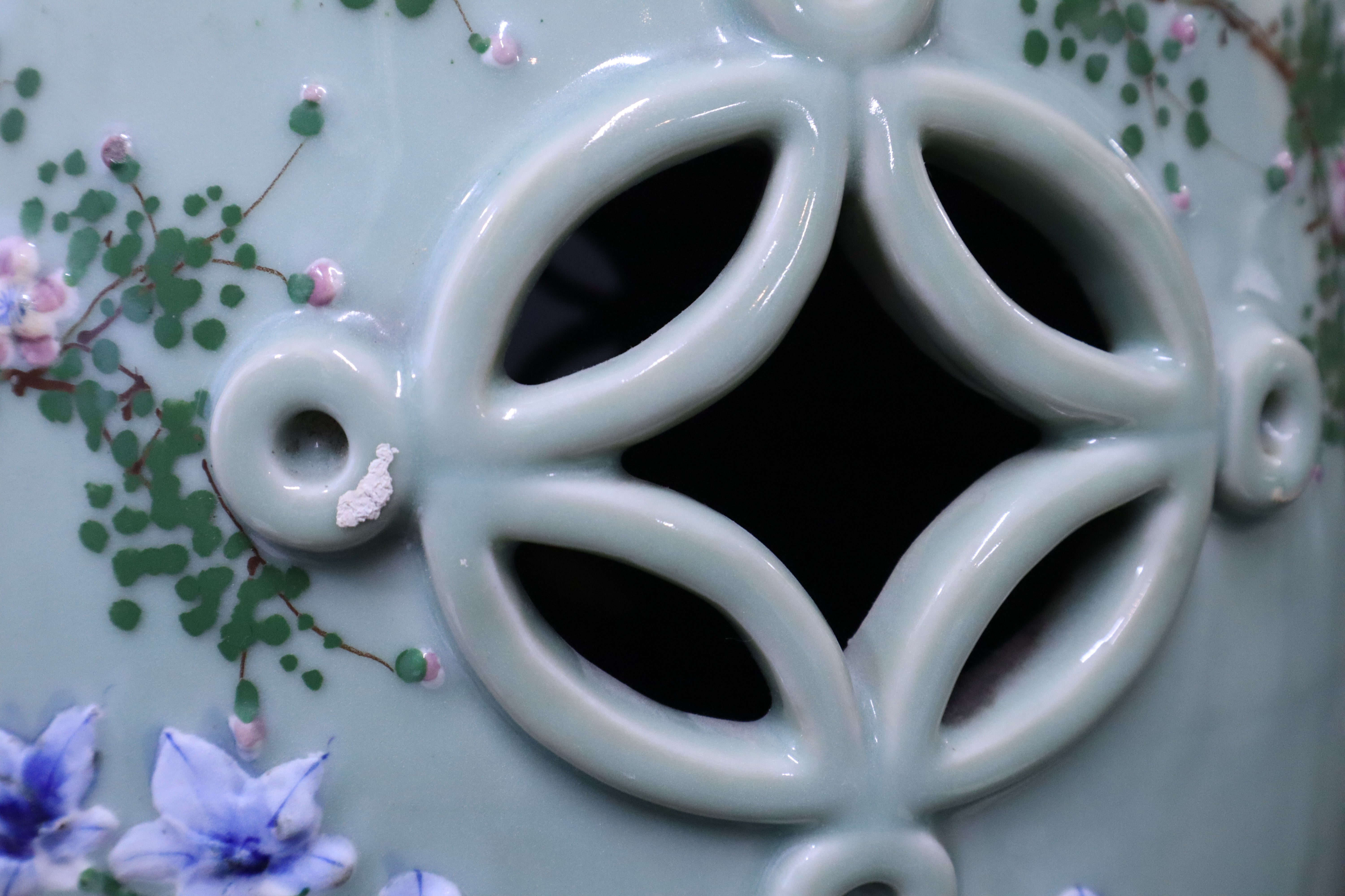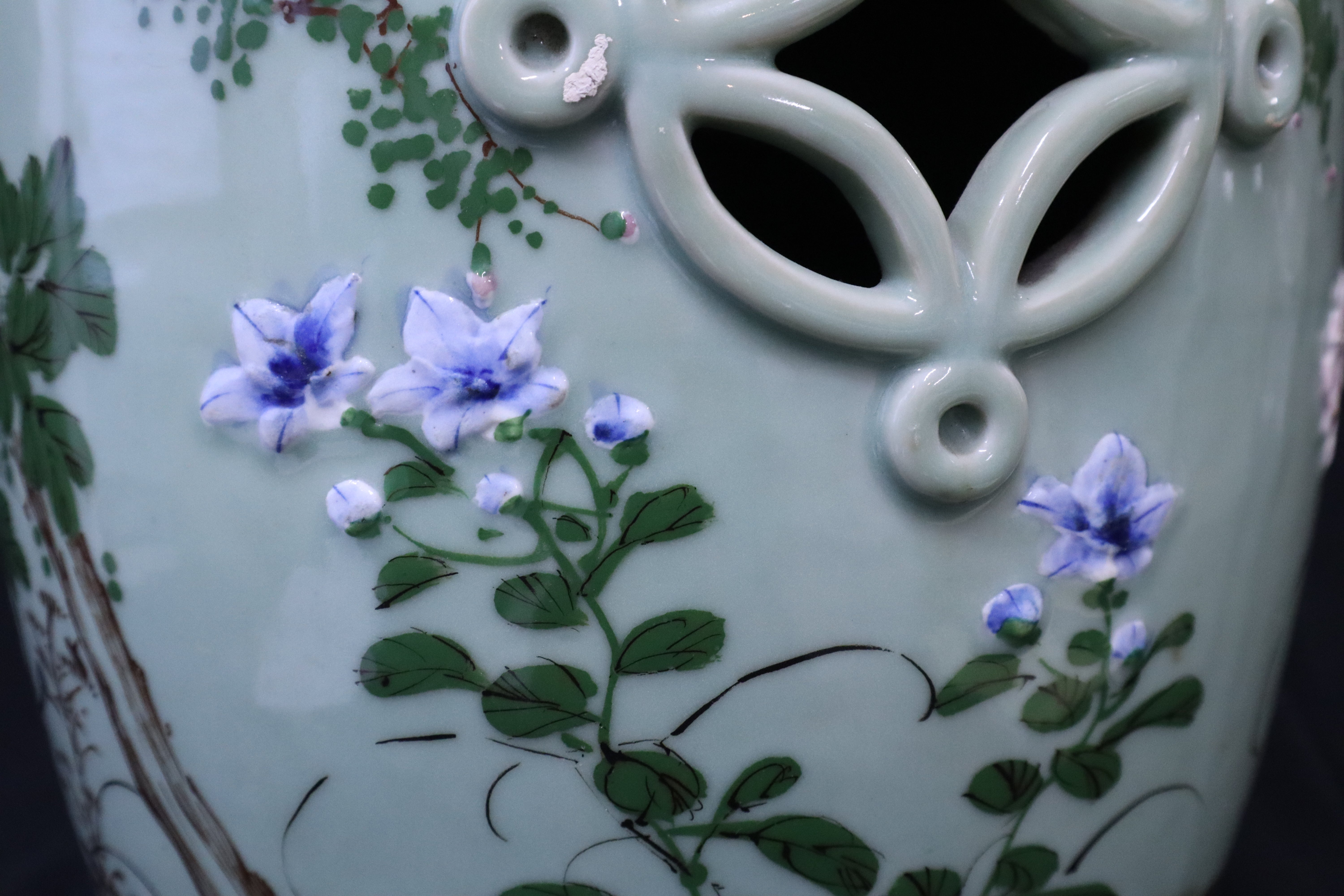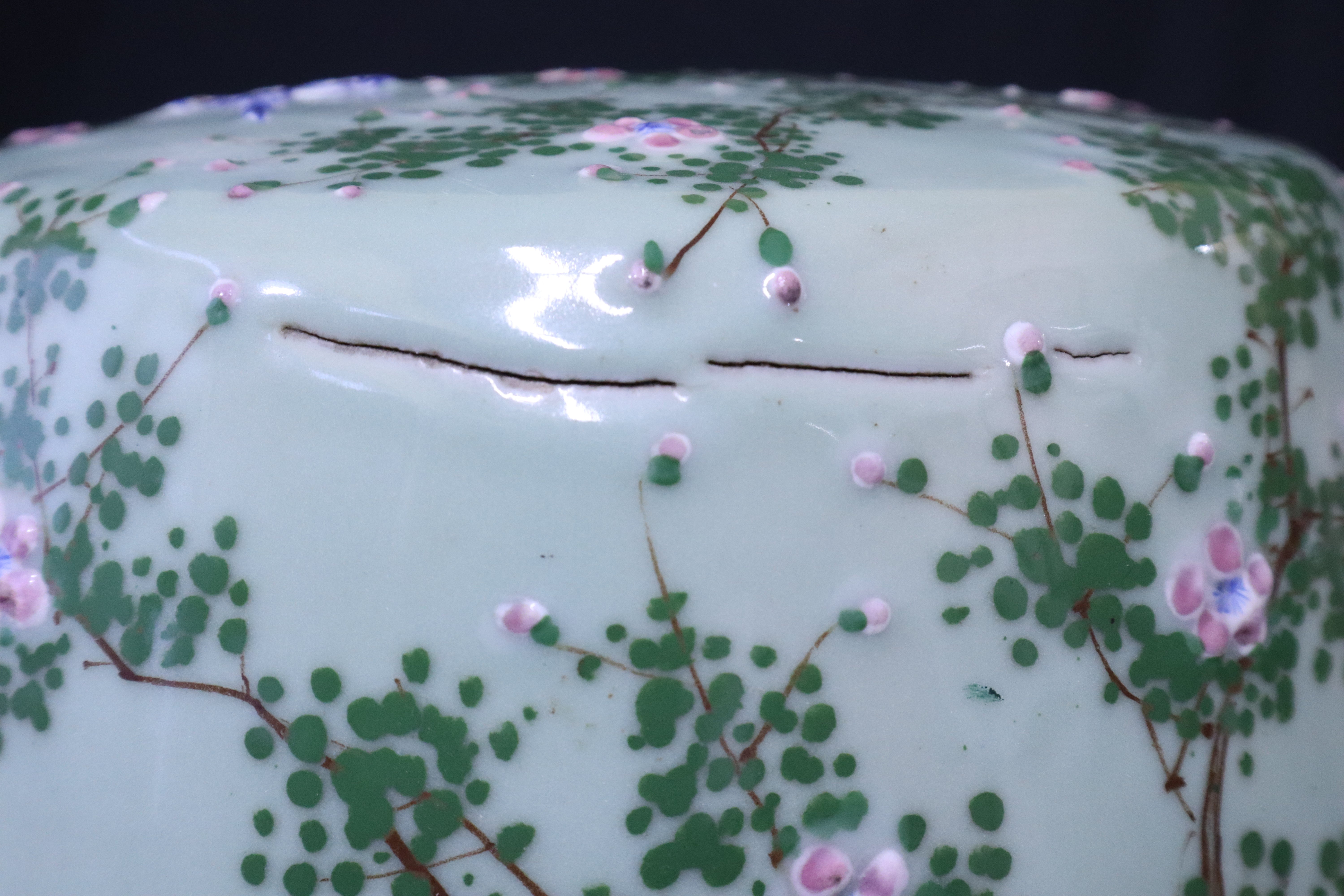 Beautiful Japanese Celadon Garden Stool with Tree Branches, Flowers & Bird
