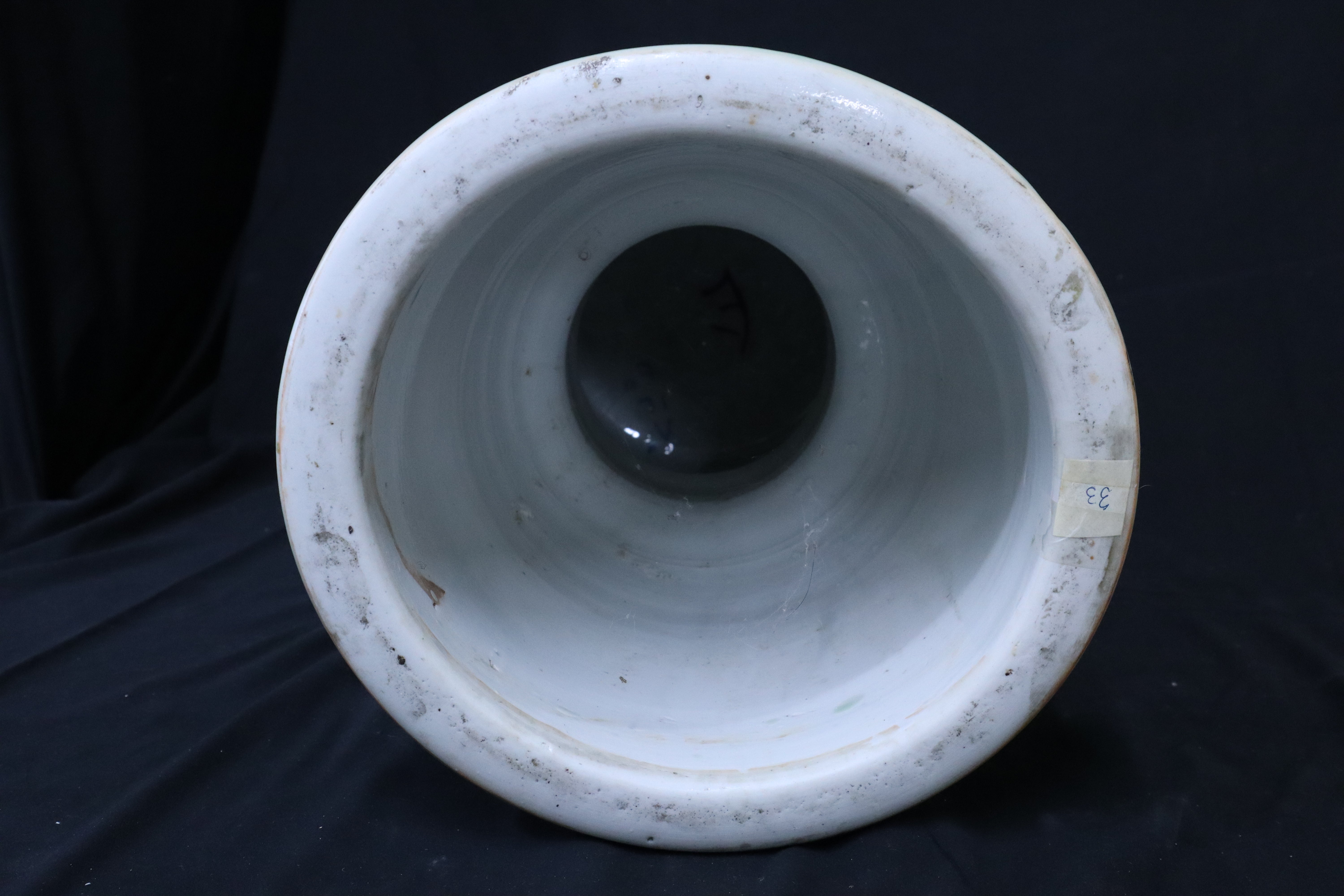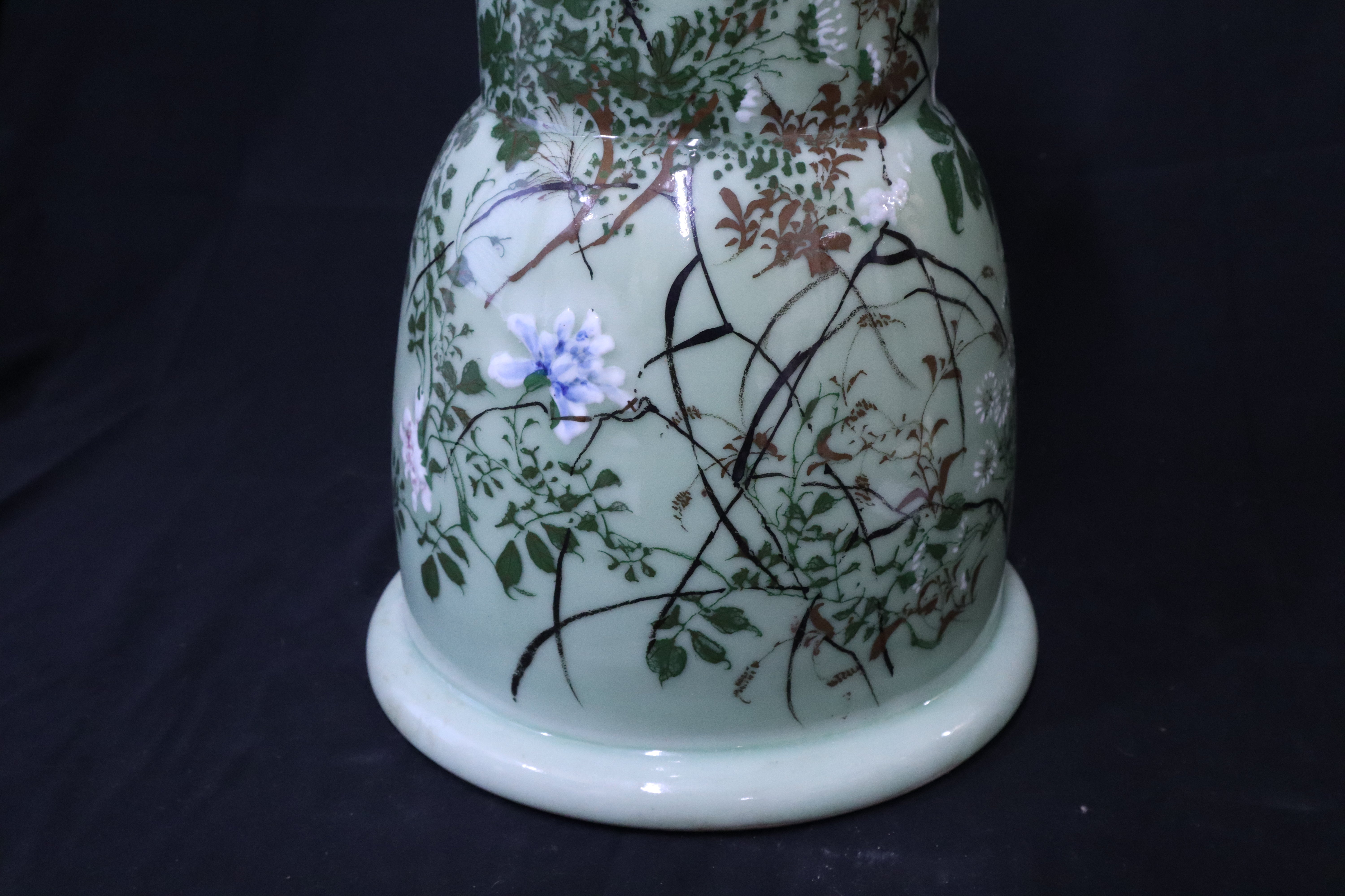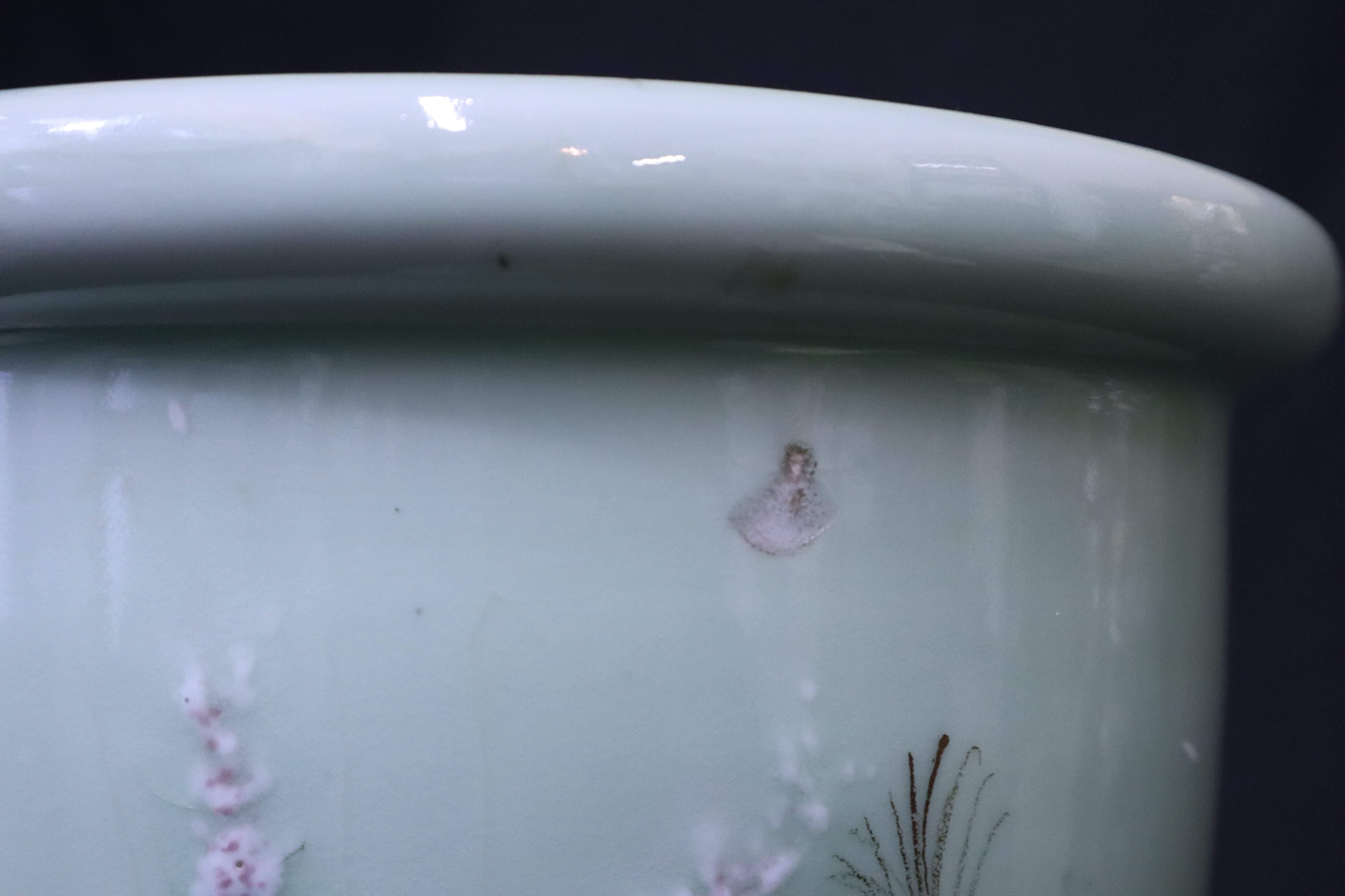 Beautiful Japanese Celadon Hour Glass Garden Stool with Tree Branches & Passion Fruit Flowers
