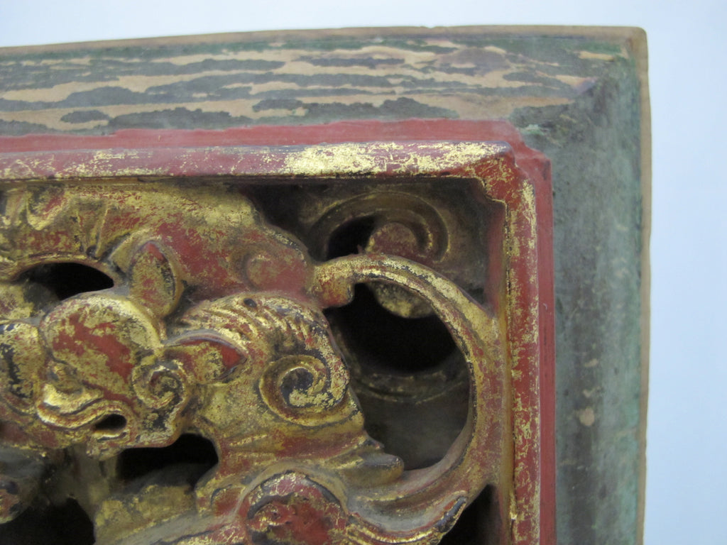 Gilt finish showing minor wear, revealing red and darker layers underneath.