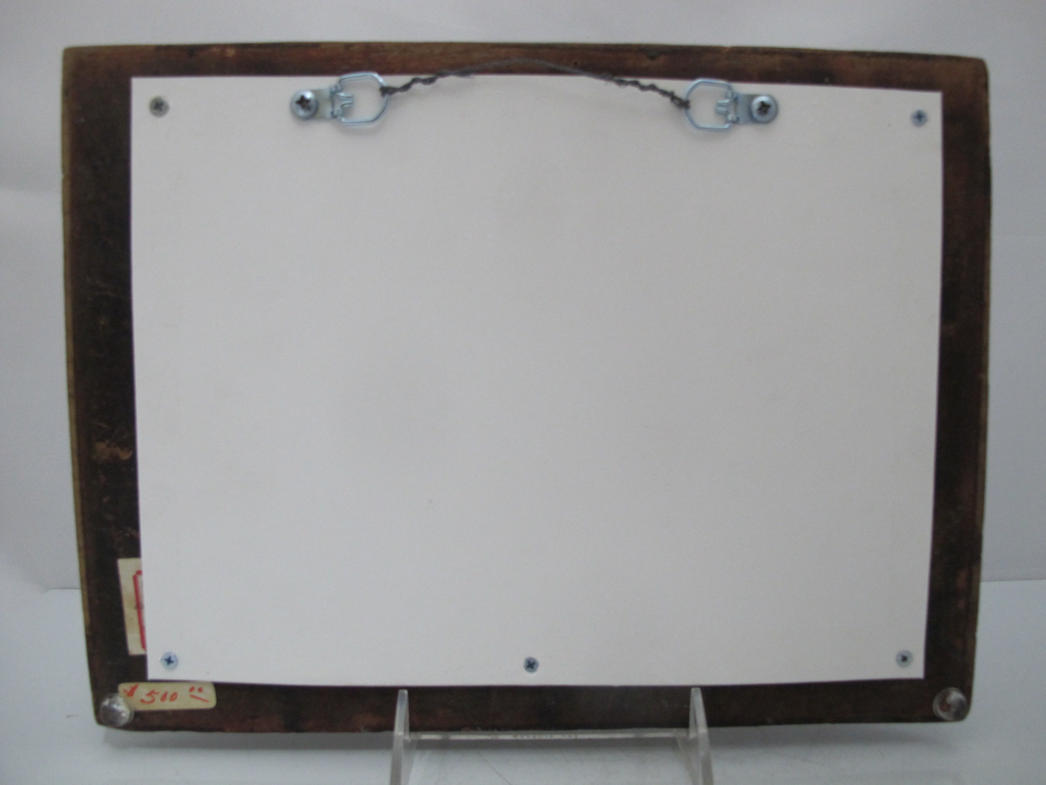 Excellent condition, no chips, cracks, or major wear. Panel was put on back in order to be hung nicely.