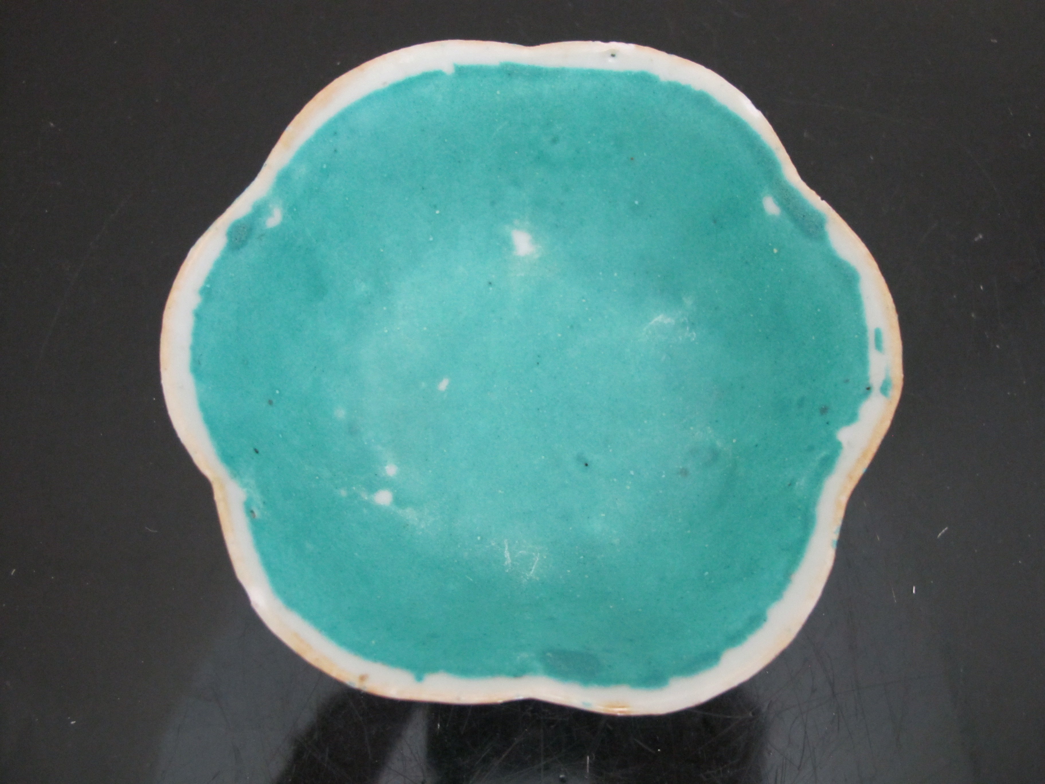 Chinese NYONYA Ware FRUIT Flower BUTTERFLY Motif Turquoise Center Hexagonal Bowl