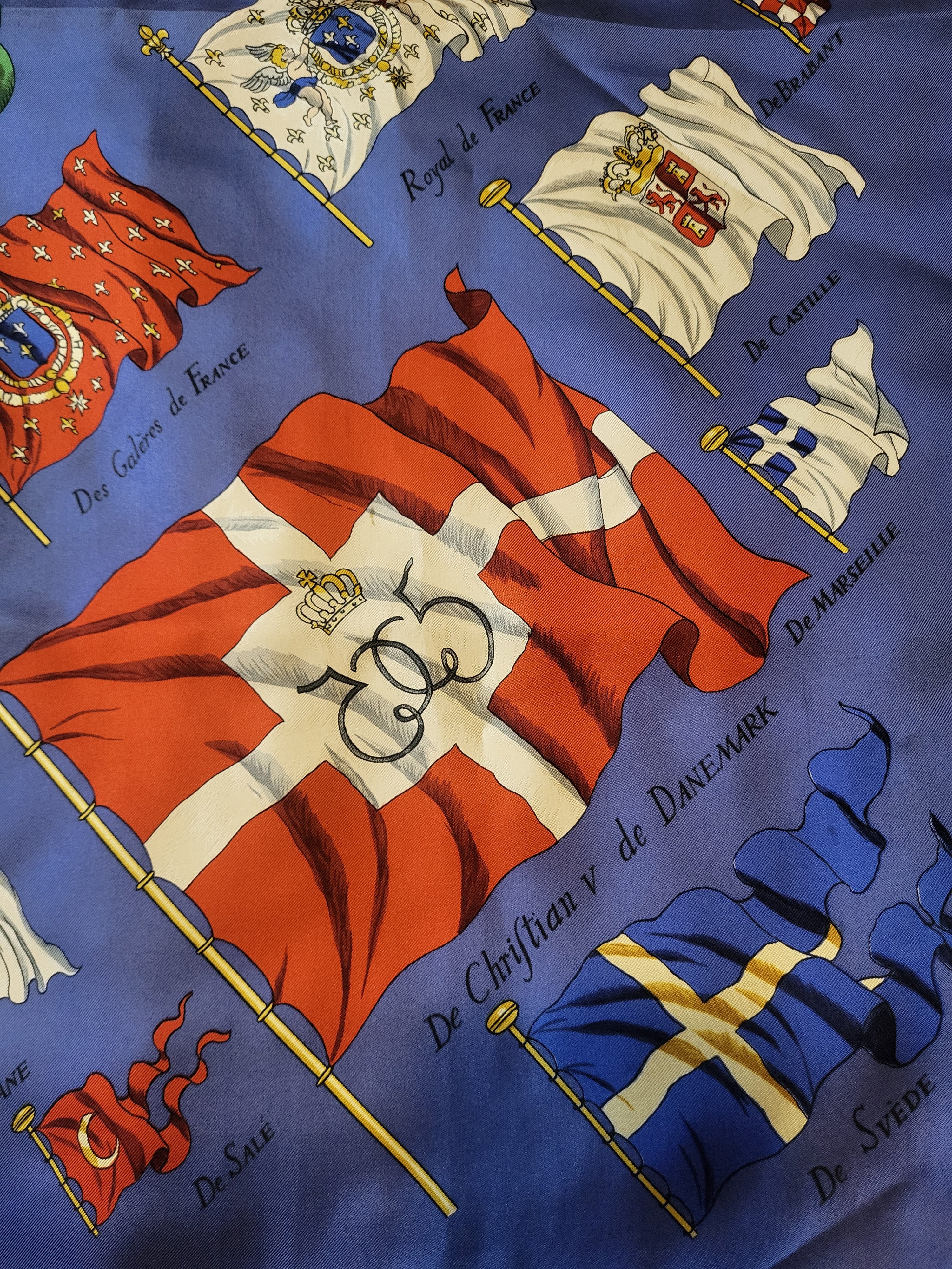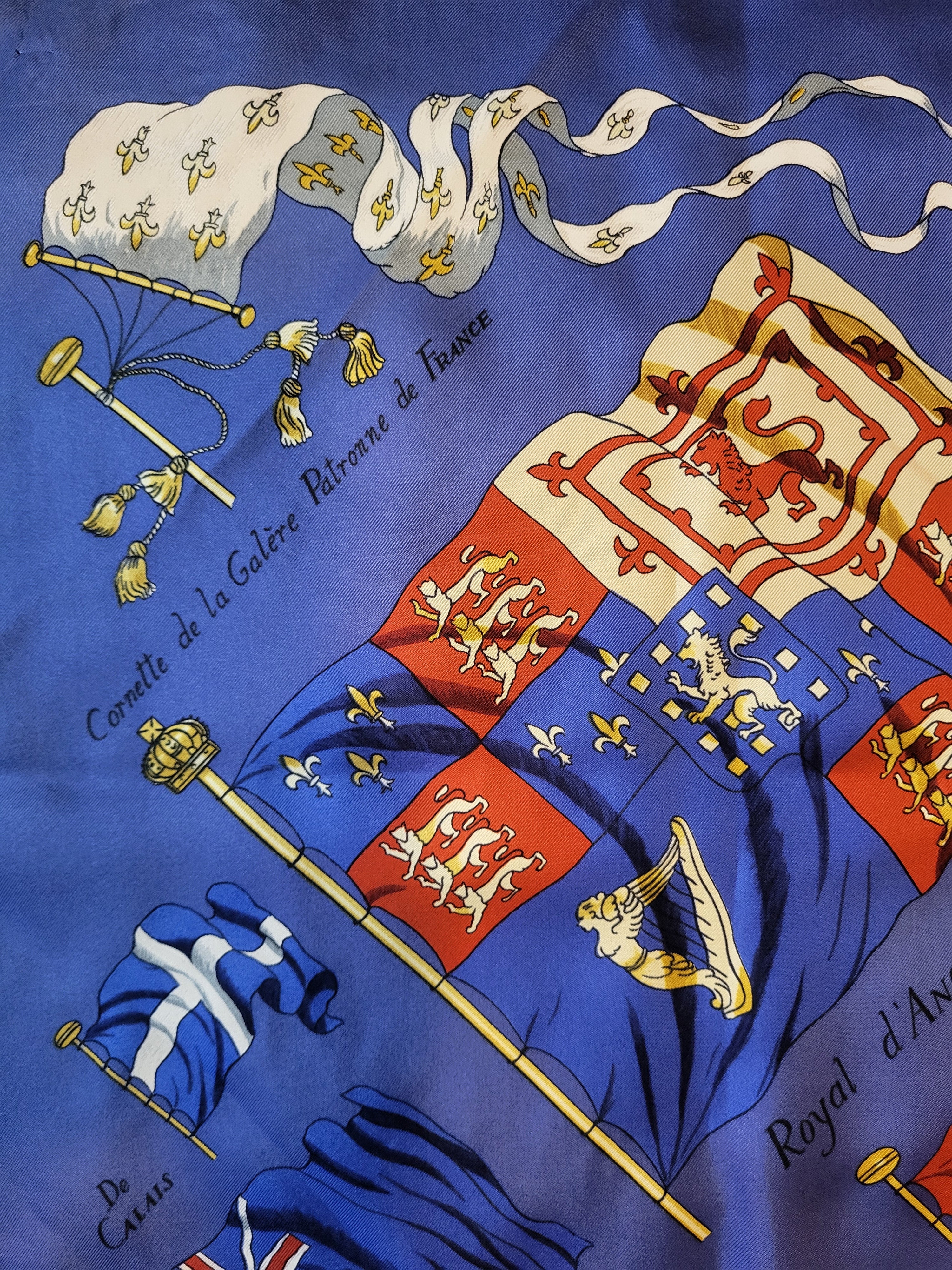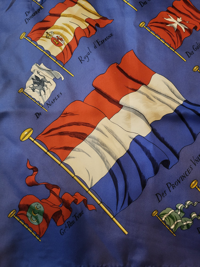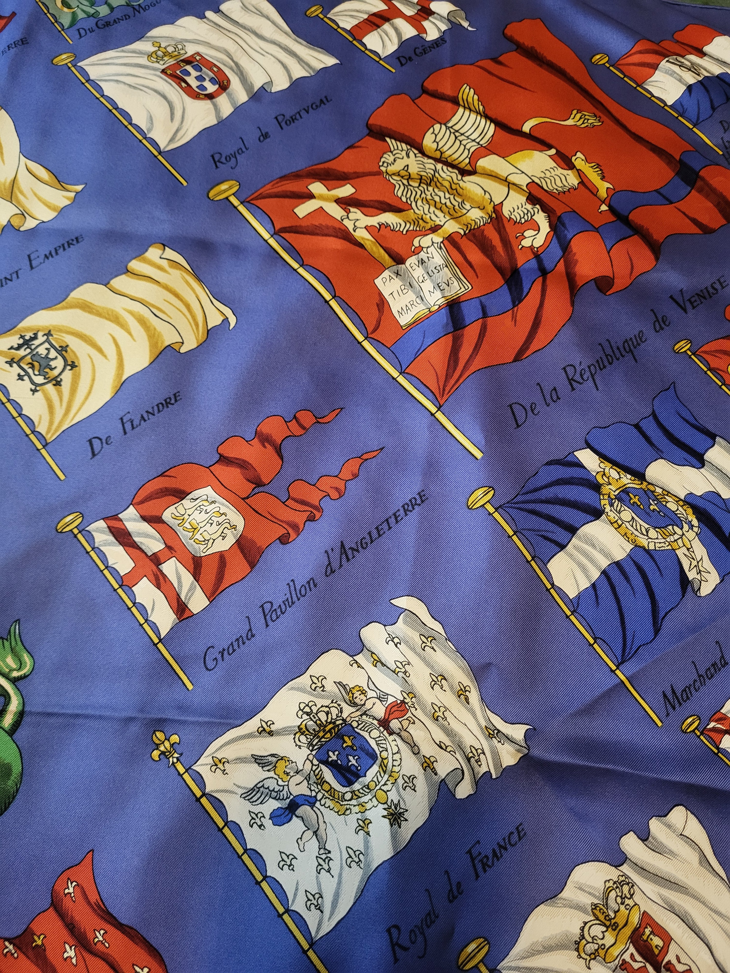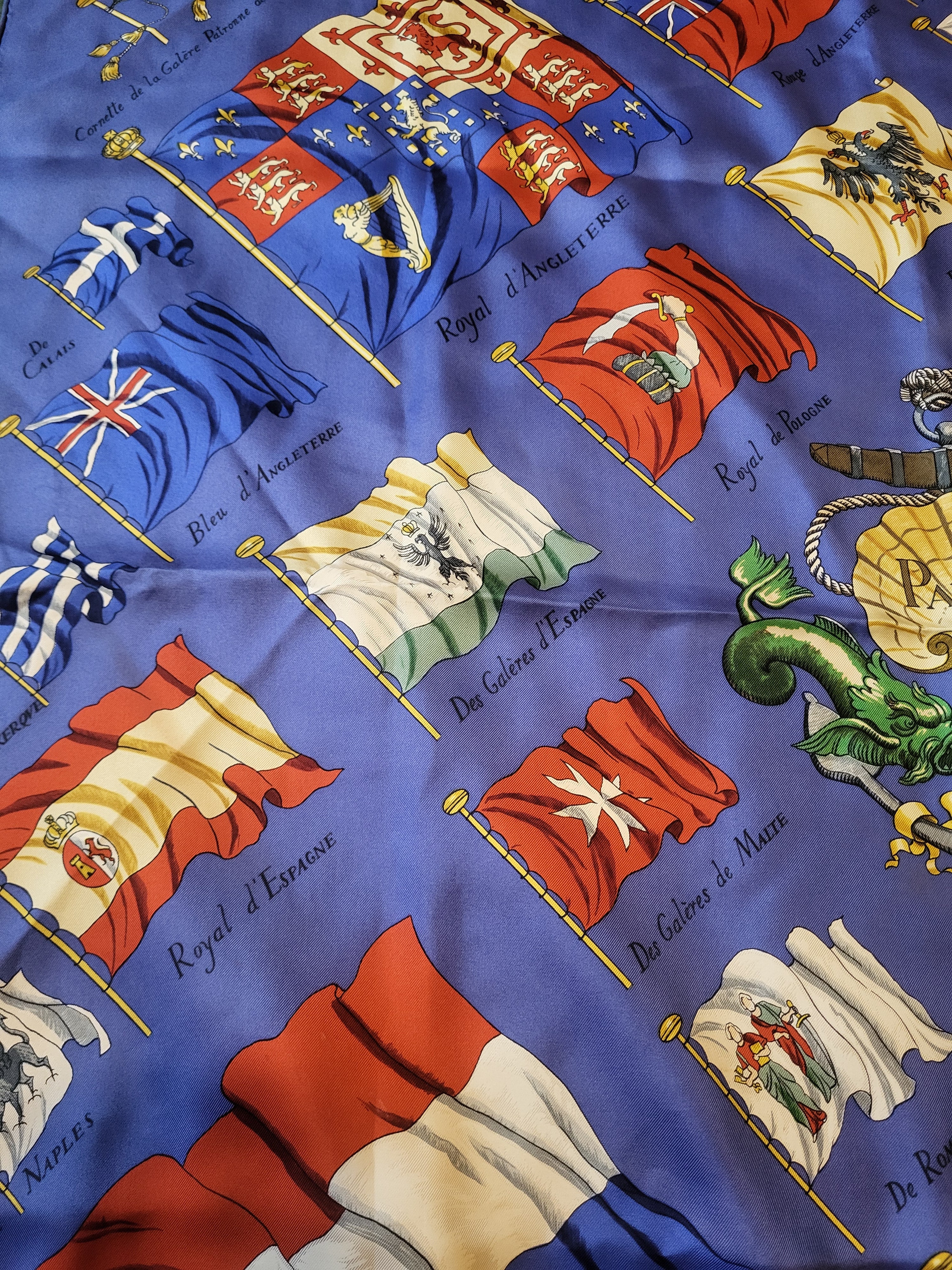 HERMES France Carre 90 Blue PAVOIS Royal European Nautical Flag Print Silk Scarf