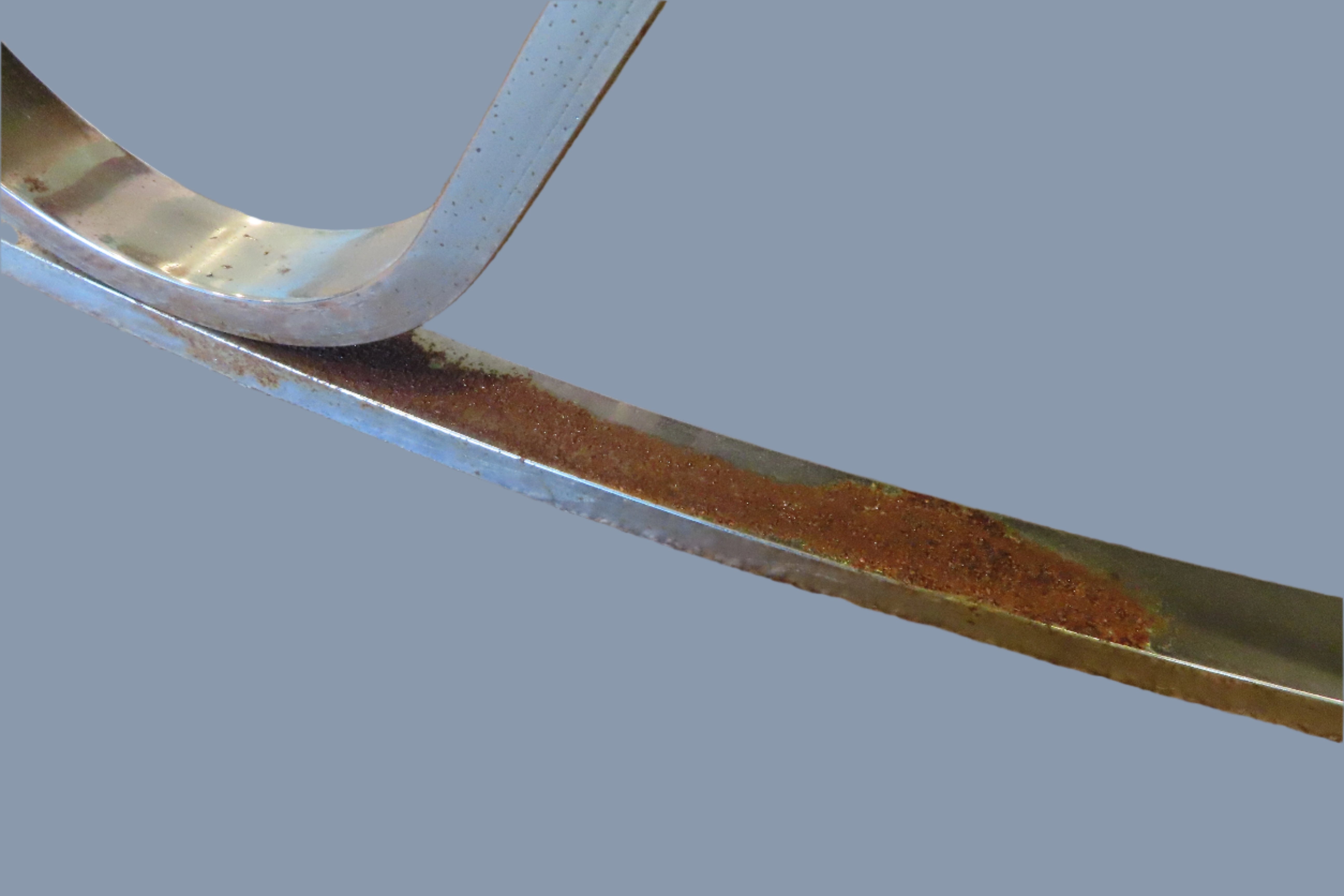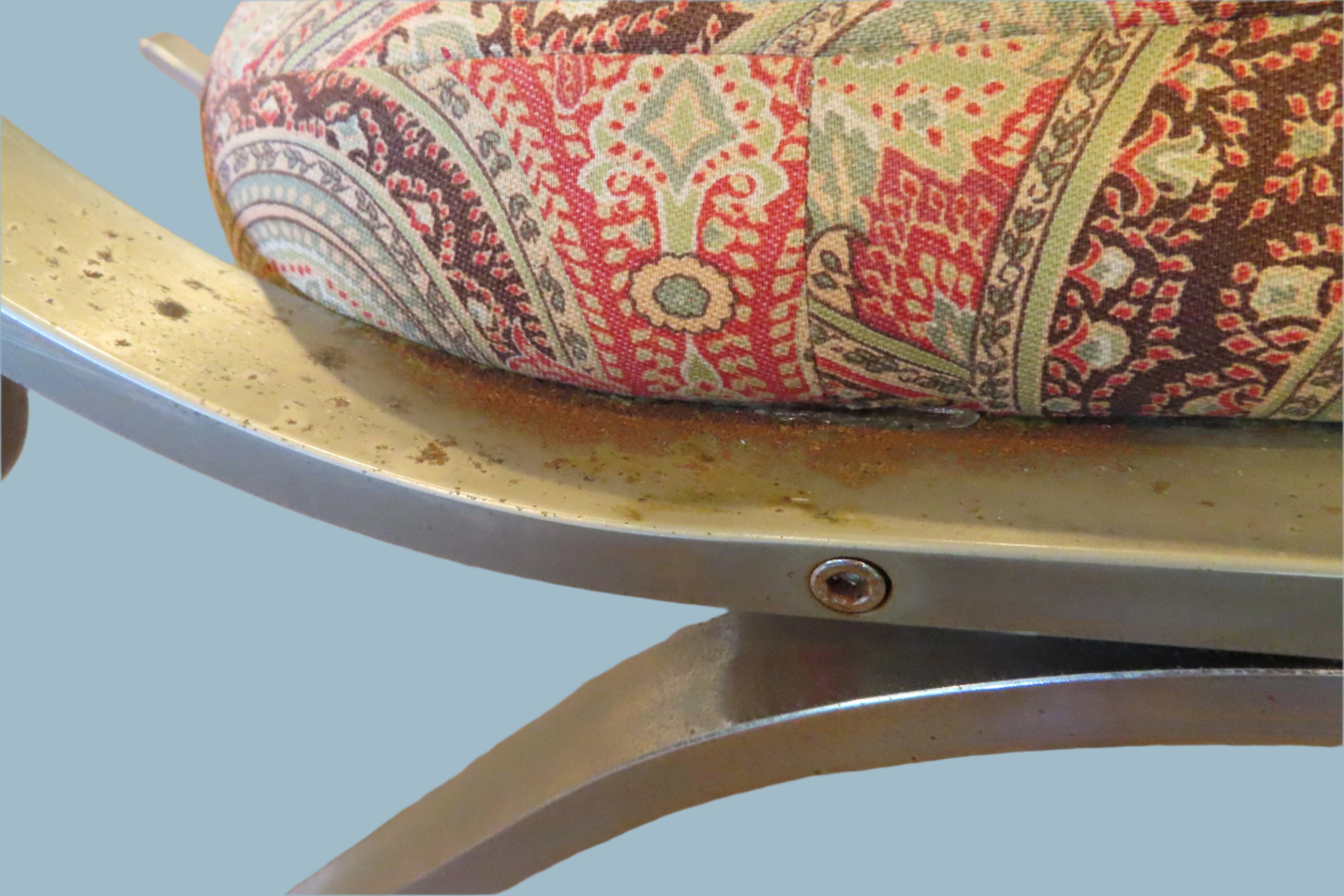 The fabric in some places need cleaning or re upholstering. The chrome near the ground and in tight areas have some rusting. Problem areas are included in photographs.
