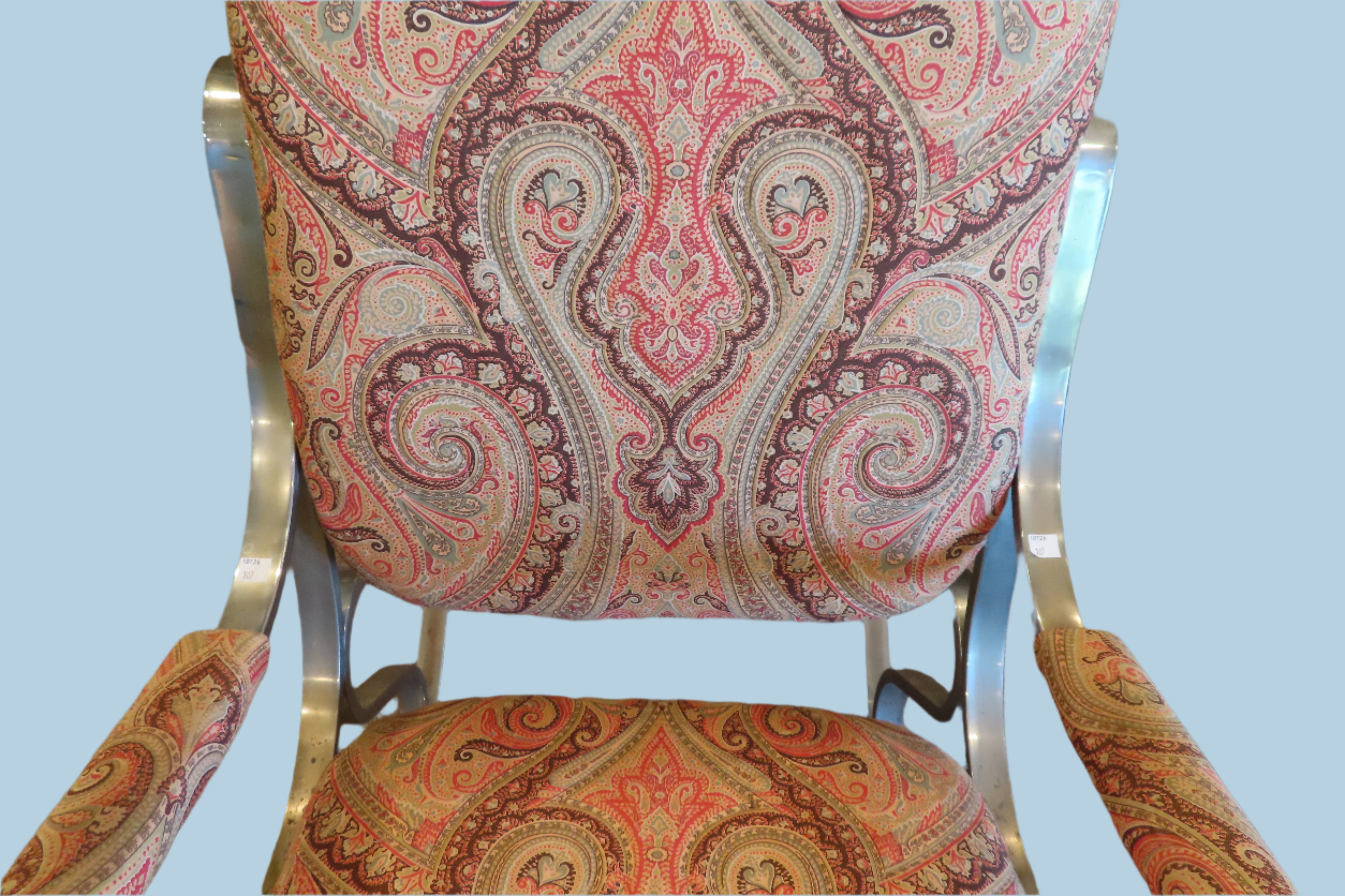 Fantastic 1970s Maison Jansen Scrolled Chrome & Paisley Rocking Chair