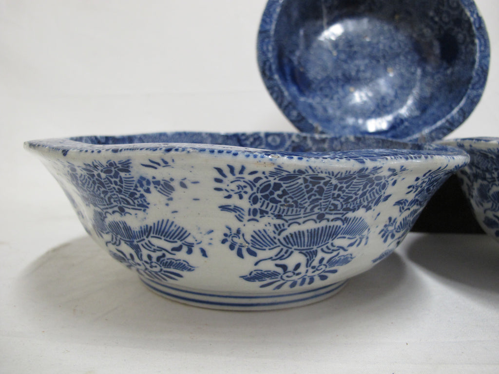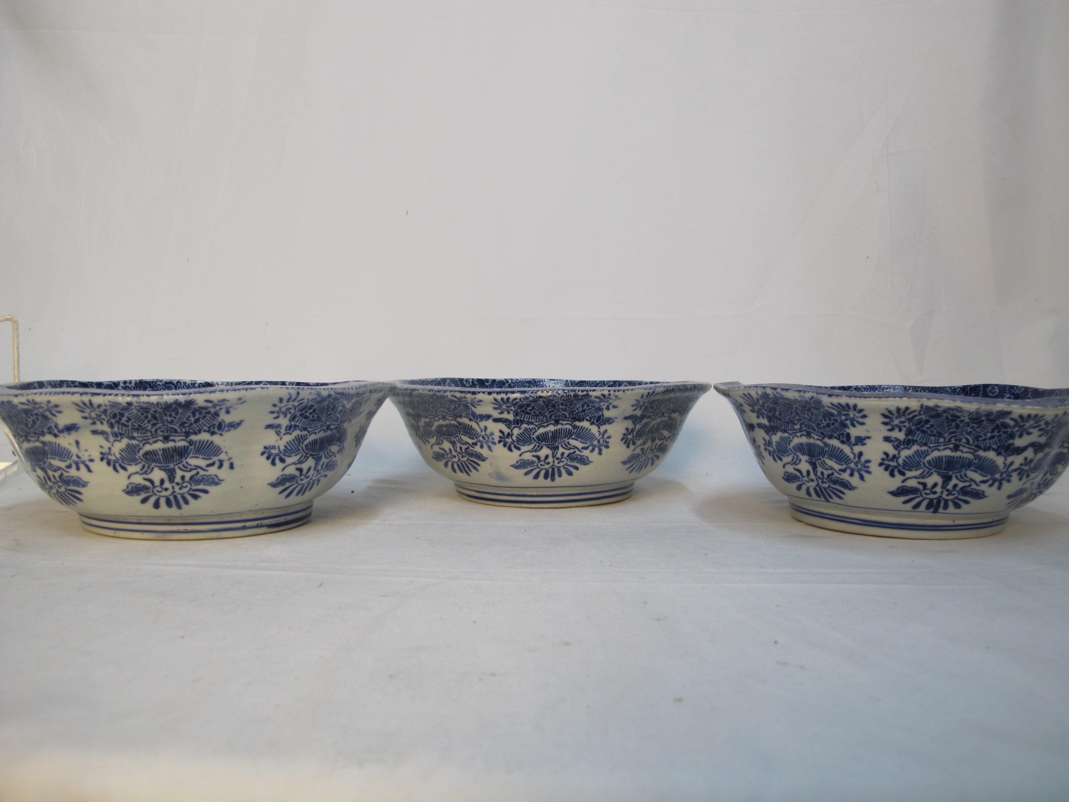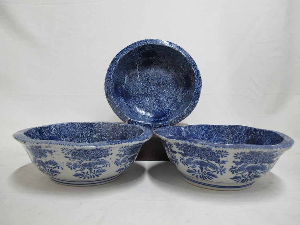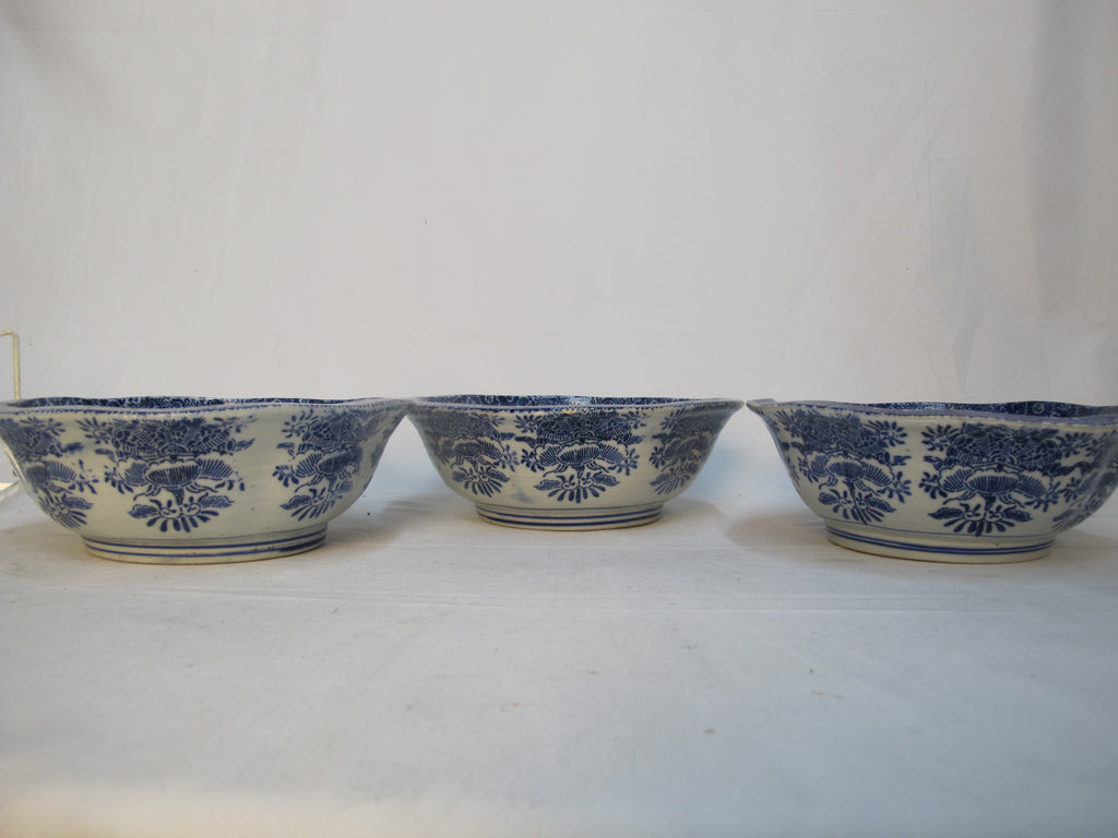 JAPANESE Imari Arita Blue Porcelain PINWHEEL Flower Design Bowl Set of 3