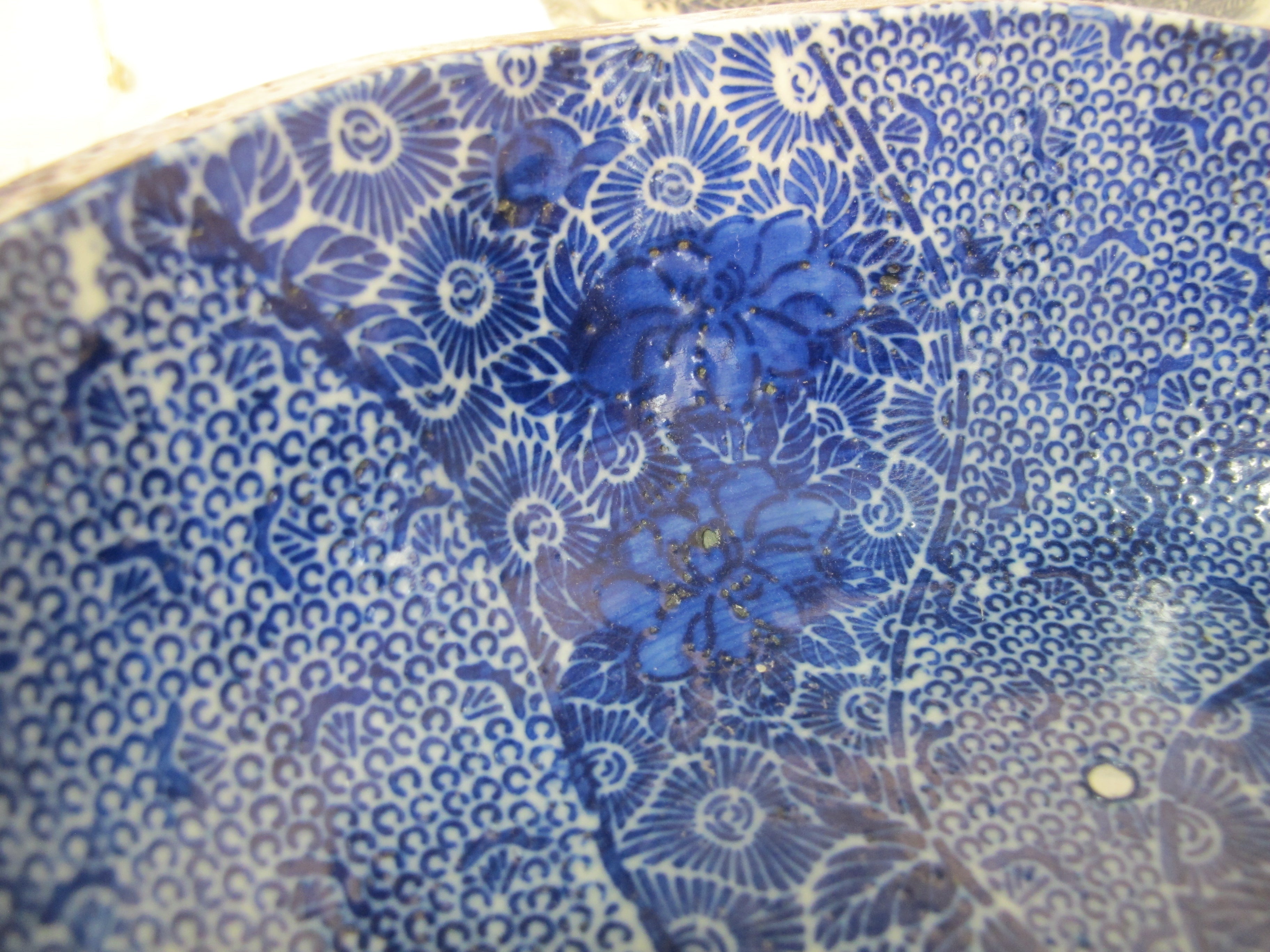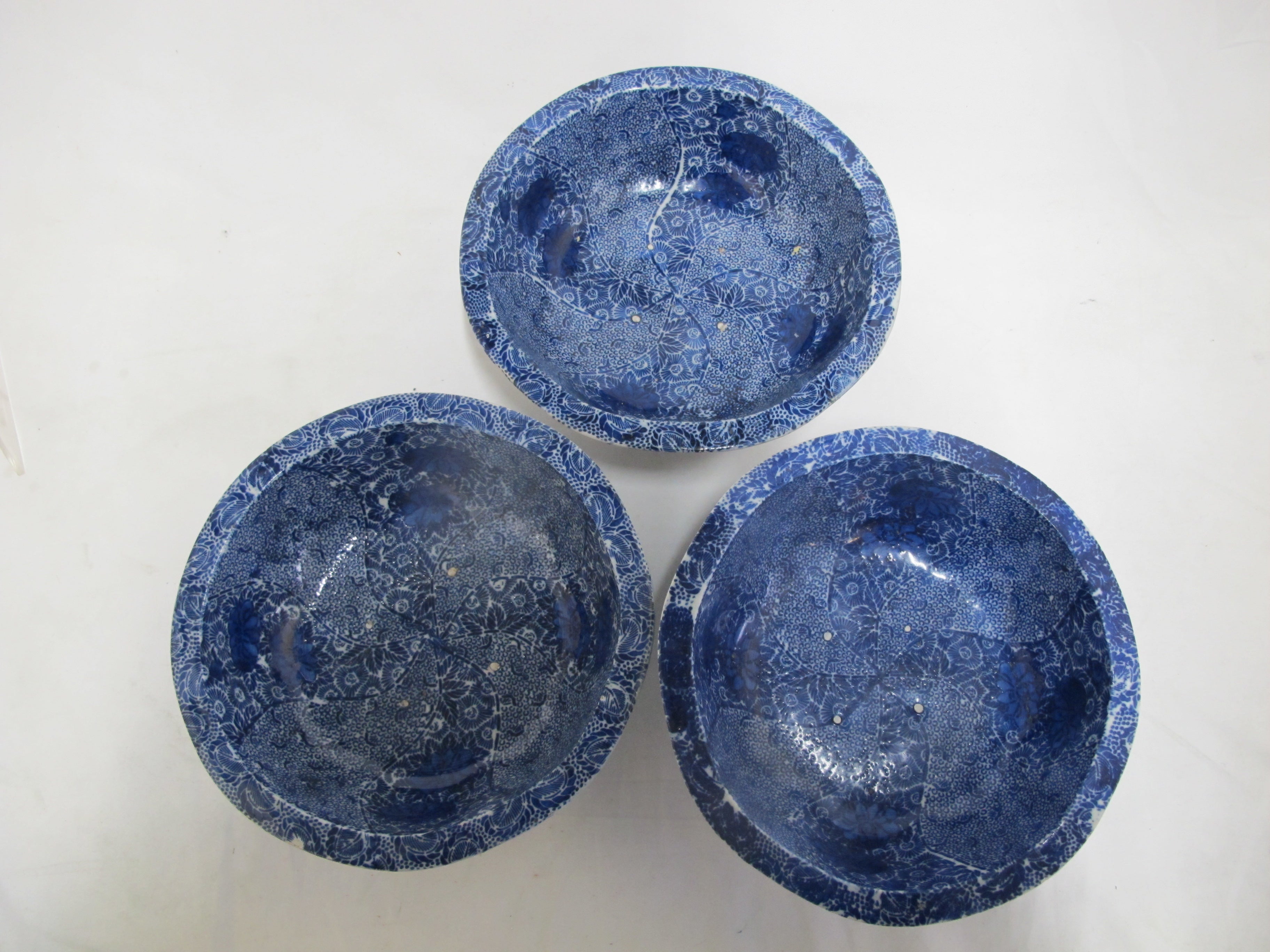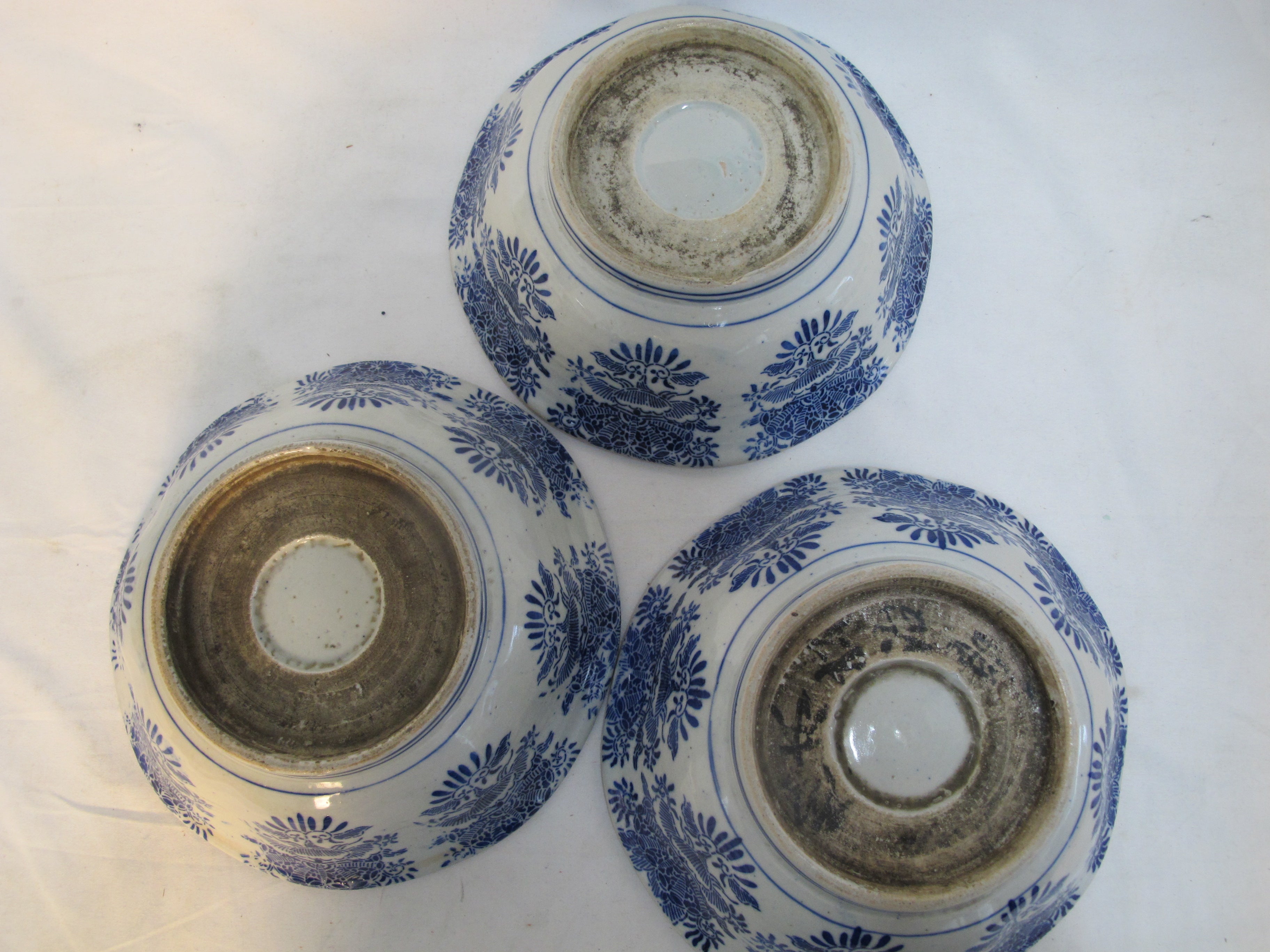 JAPANESE Imari Arita Blue Porcelain PINWHEEL Flower Design Bowl Set of 3