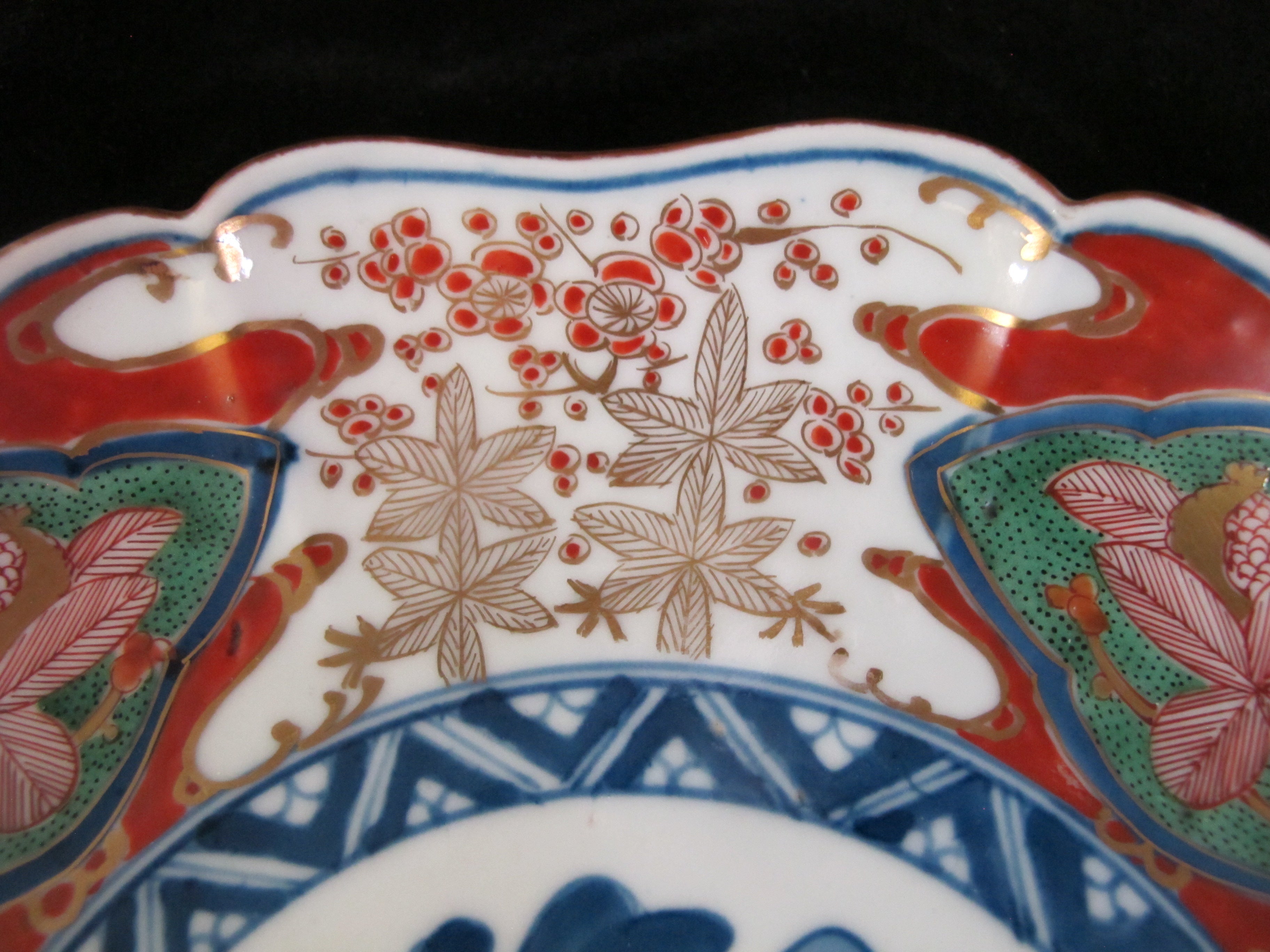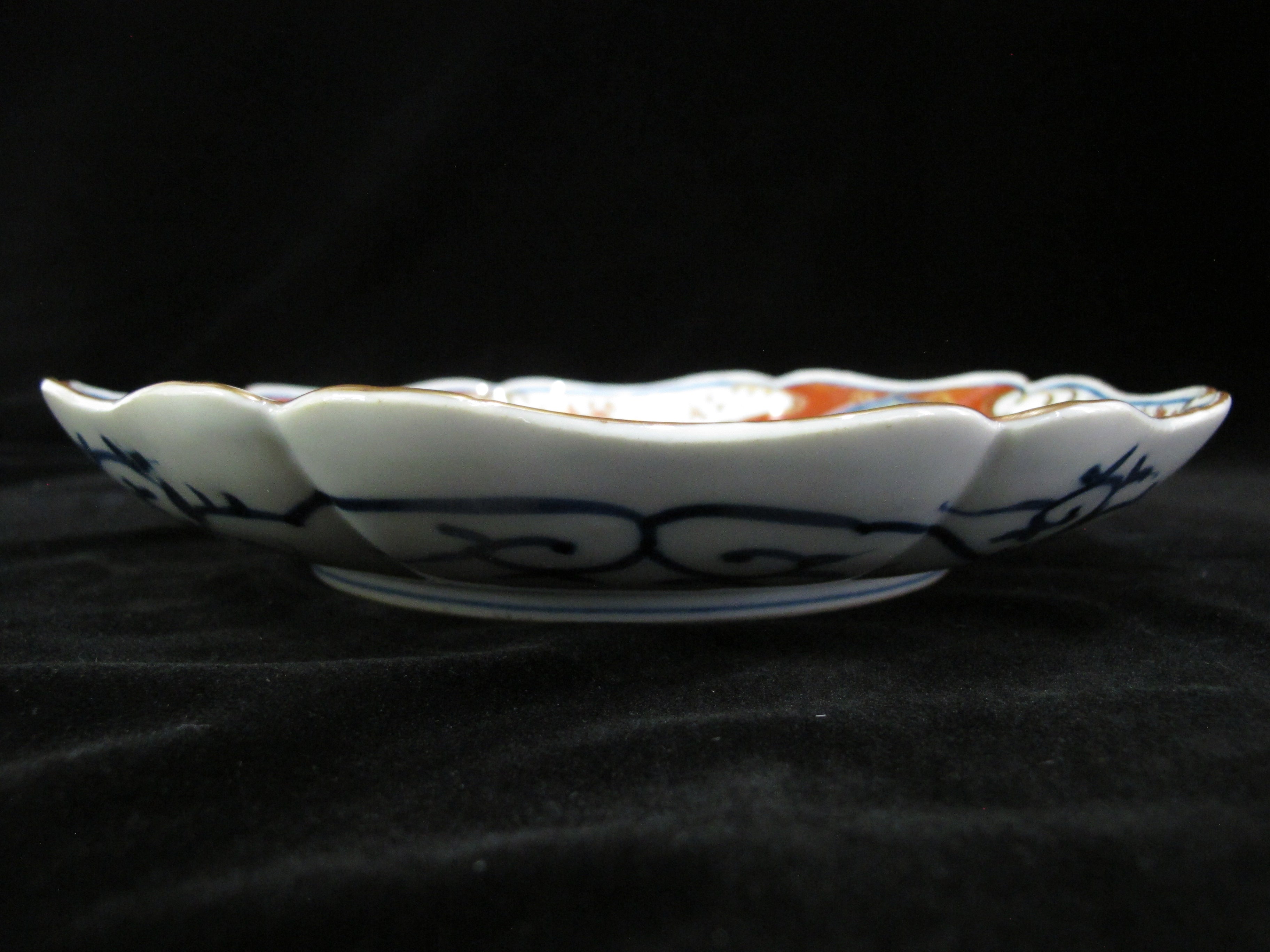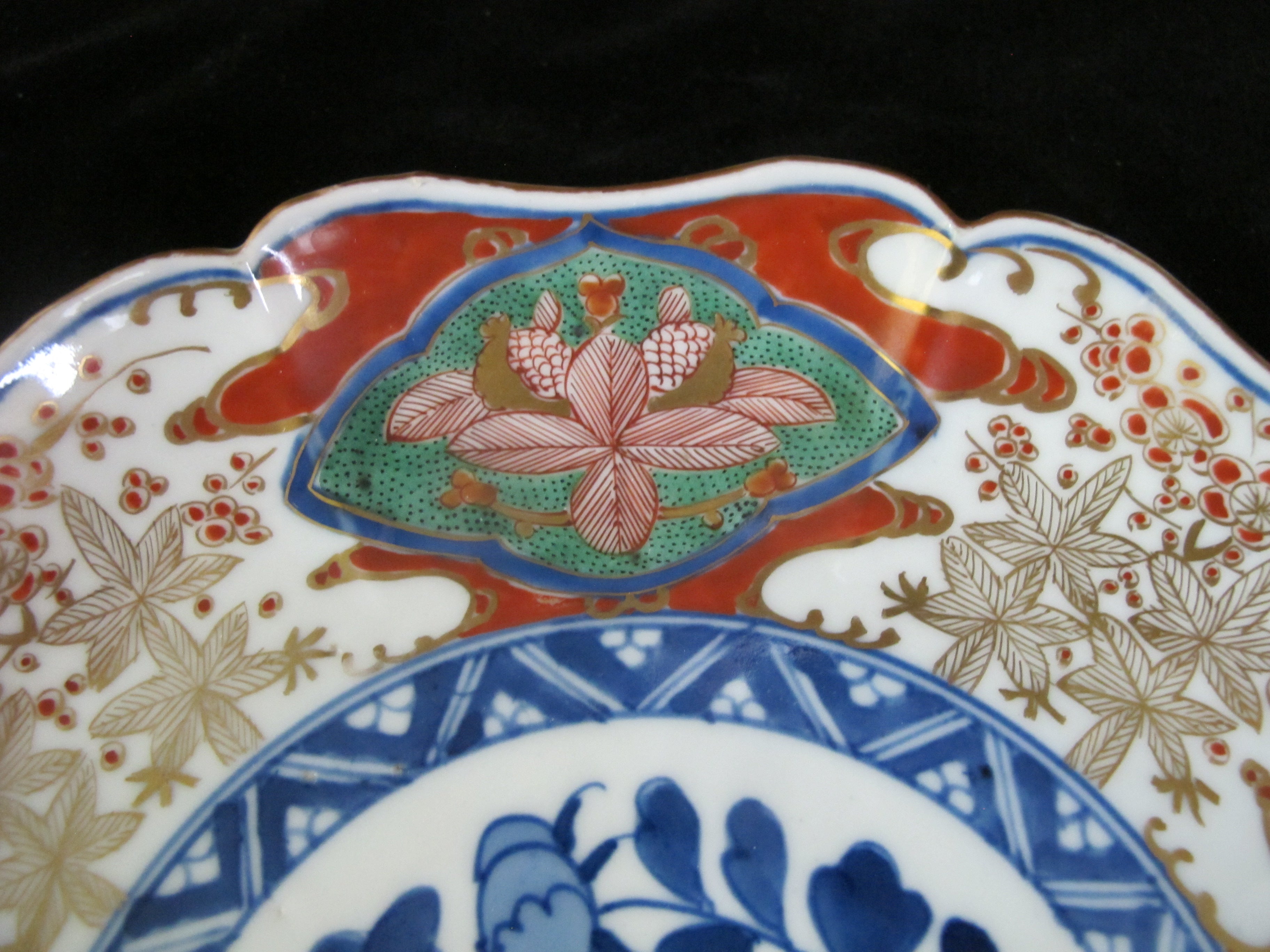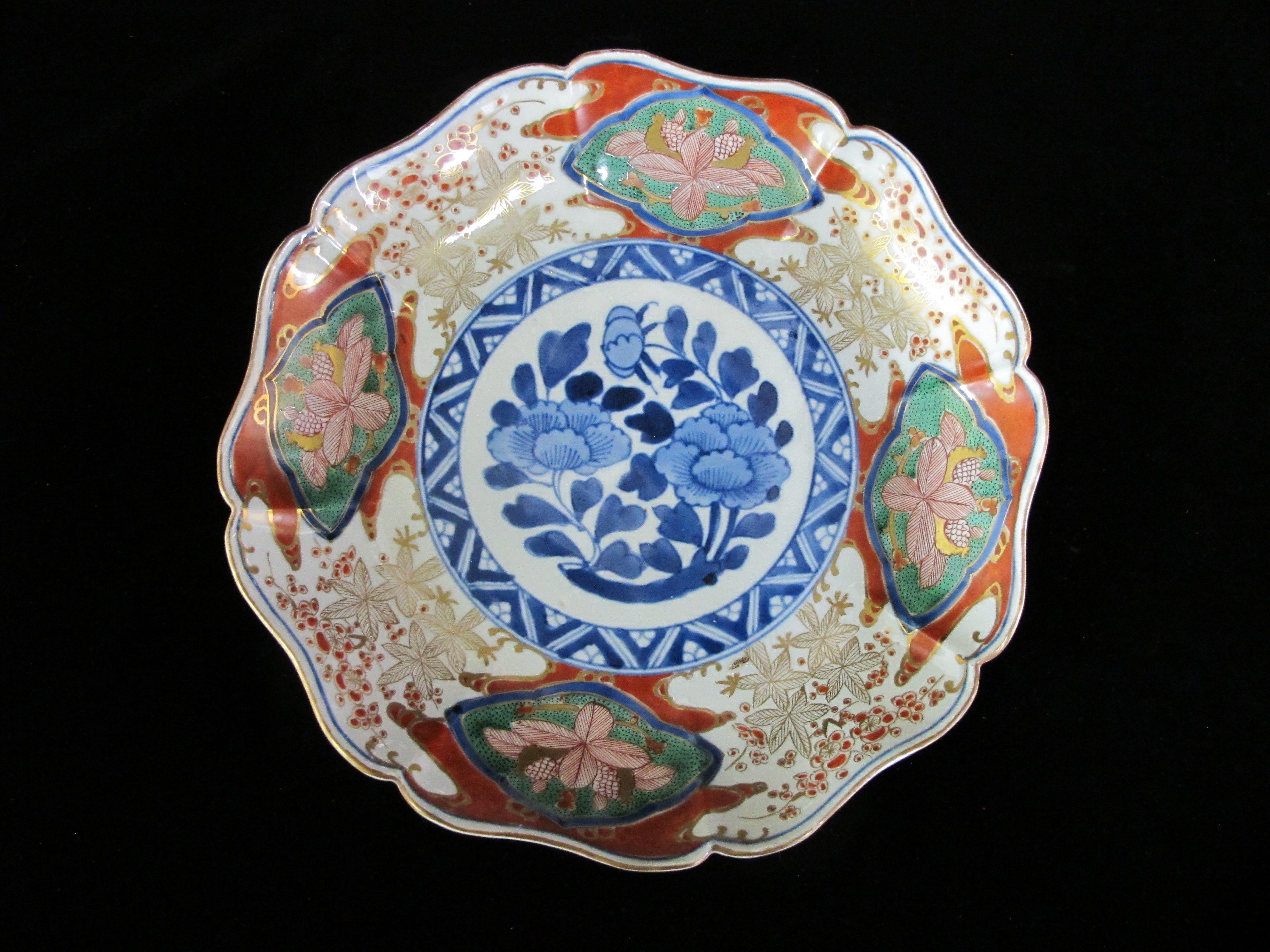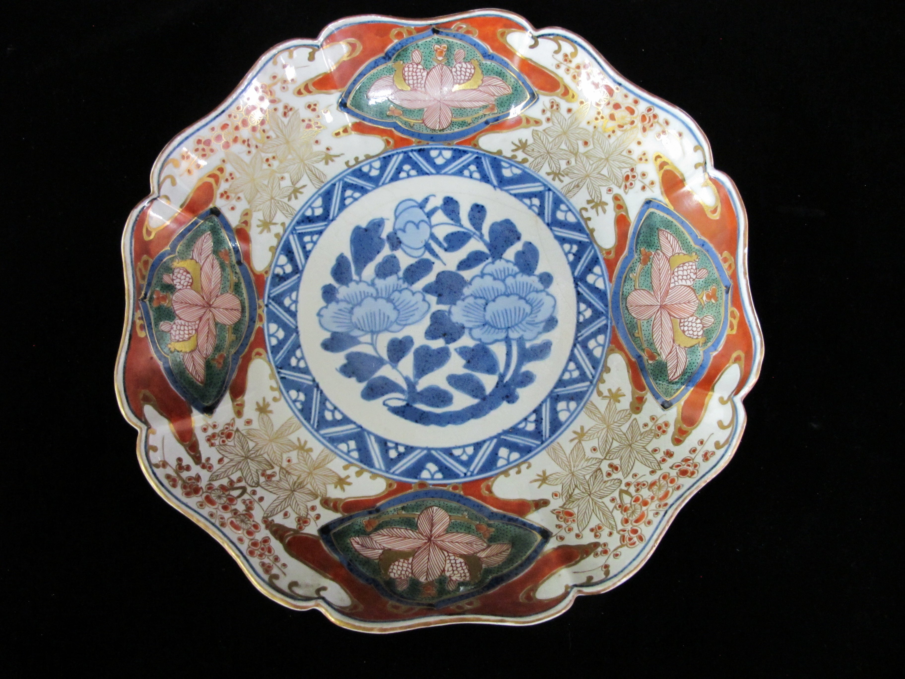 JAPANESE Imari Scalloped Rim Gold Accent FLOWER 9.5" Plate Set of 2