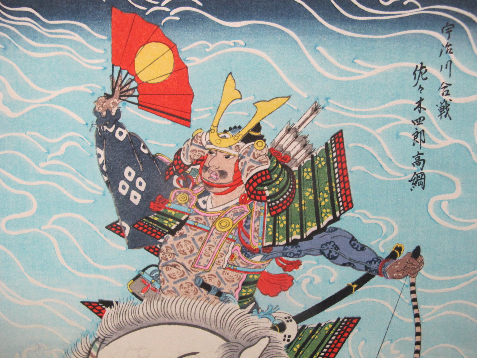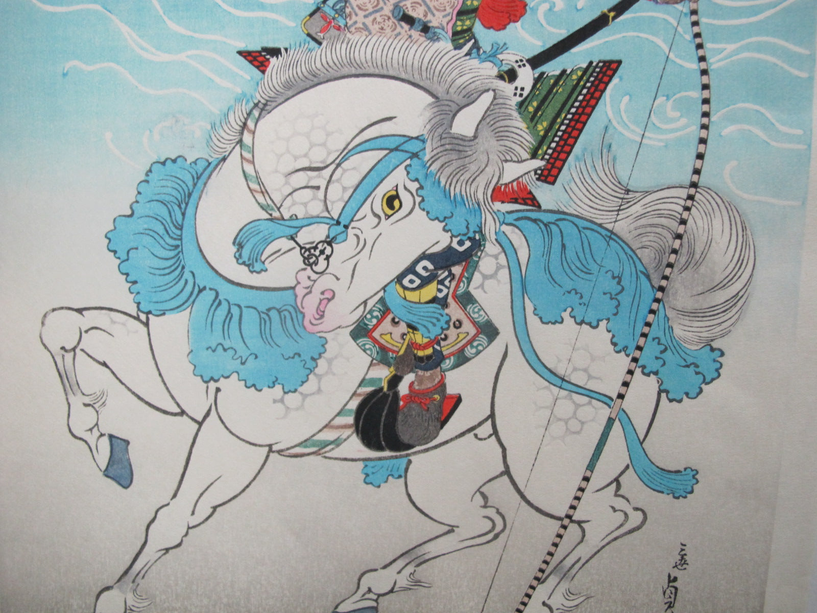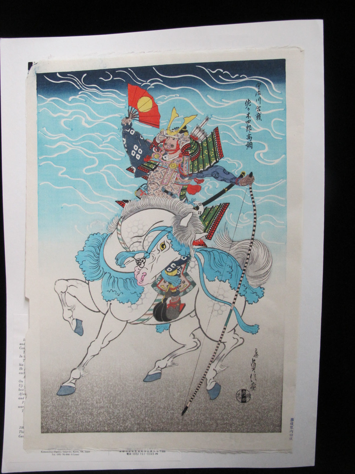 Japanese Sadanobu HASEGAWA Woodblock Print WARRIOR SASAKI Takatsuna on Horse