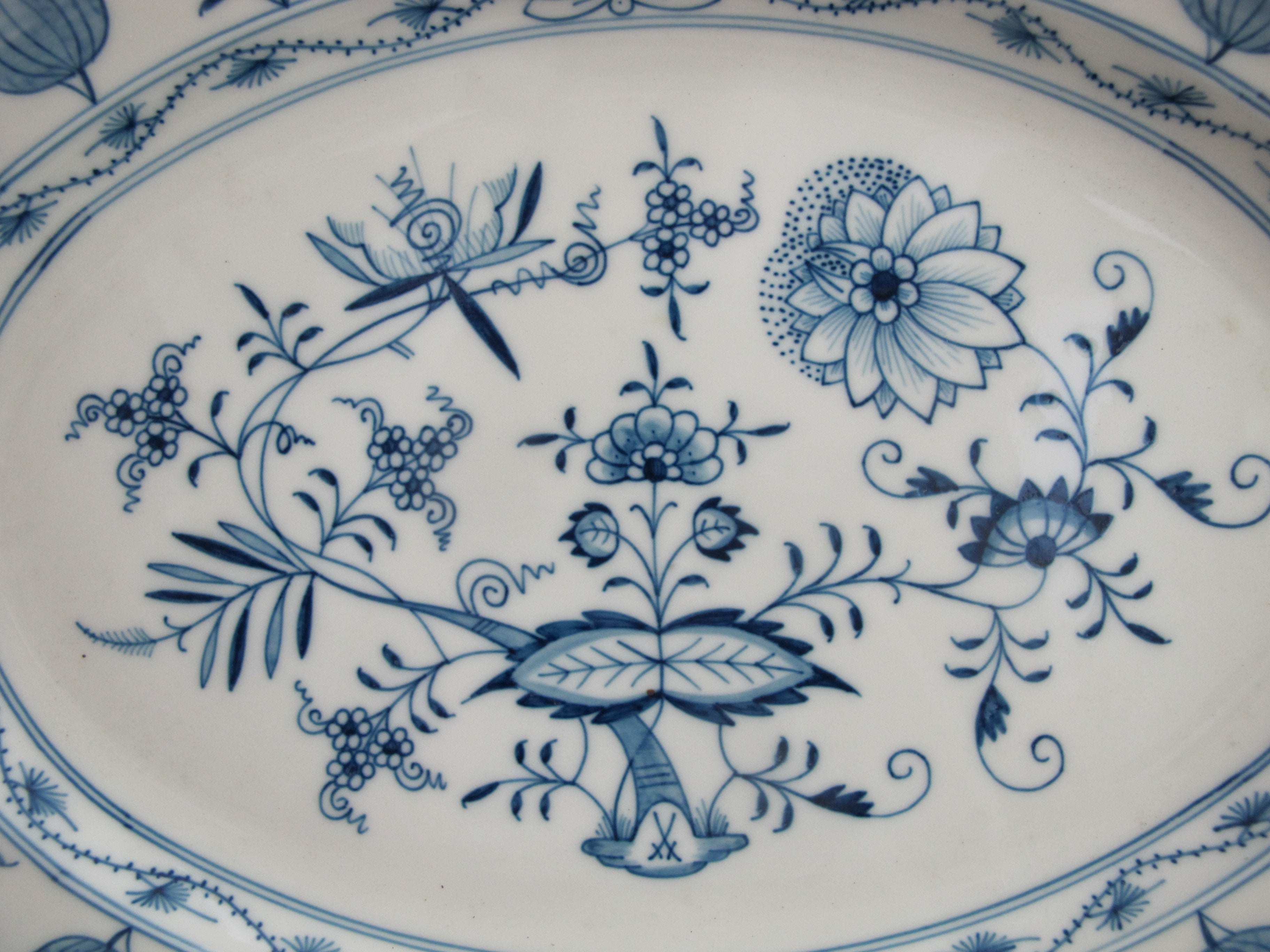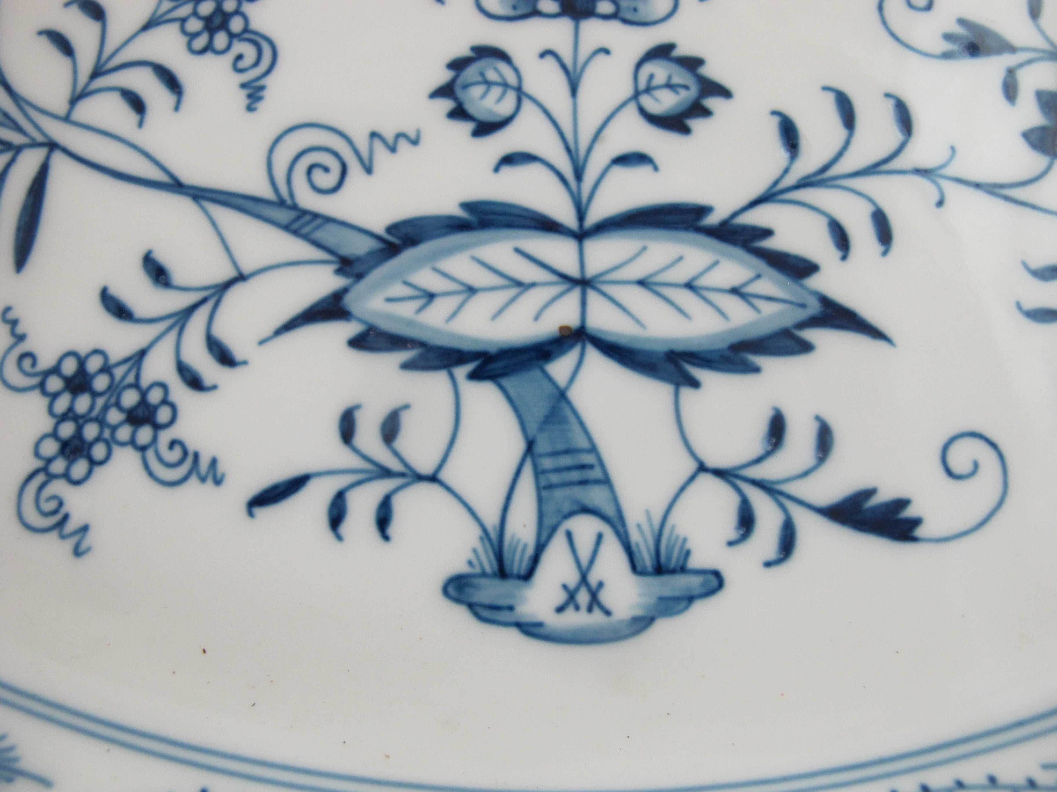 MEISSEN Porcelain BLUE ONION Scalloped Rim 14" Serving Platter Dish or Tray