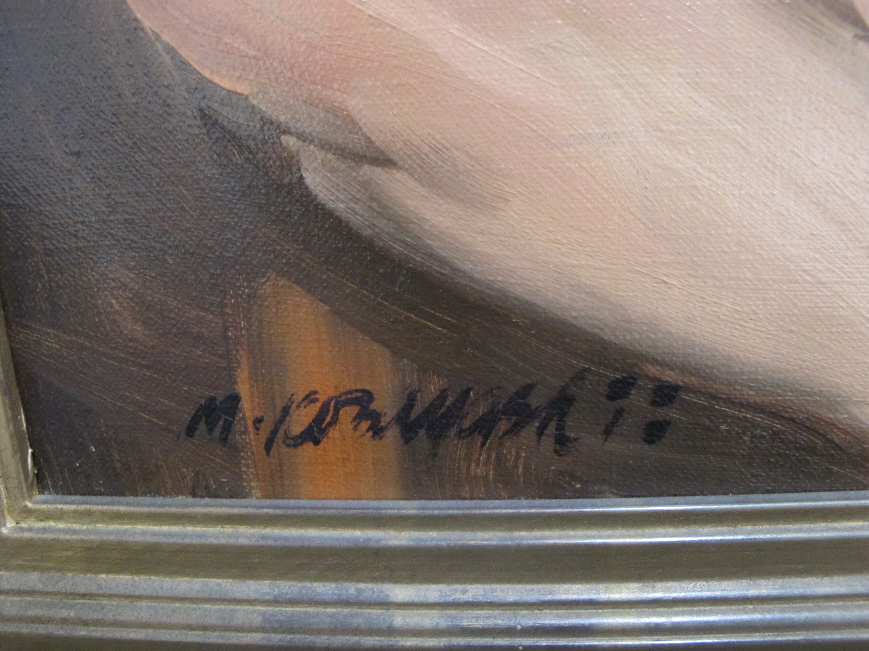 Milt Kobayashi (American/Japanese, 1950) oil painting on canvas titled "Do I Dare". Signed at lower left. Frame measures 30" x 32", painting measures 23 1/2" x 25". Excellent condition.