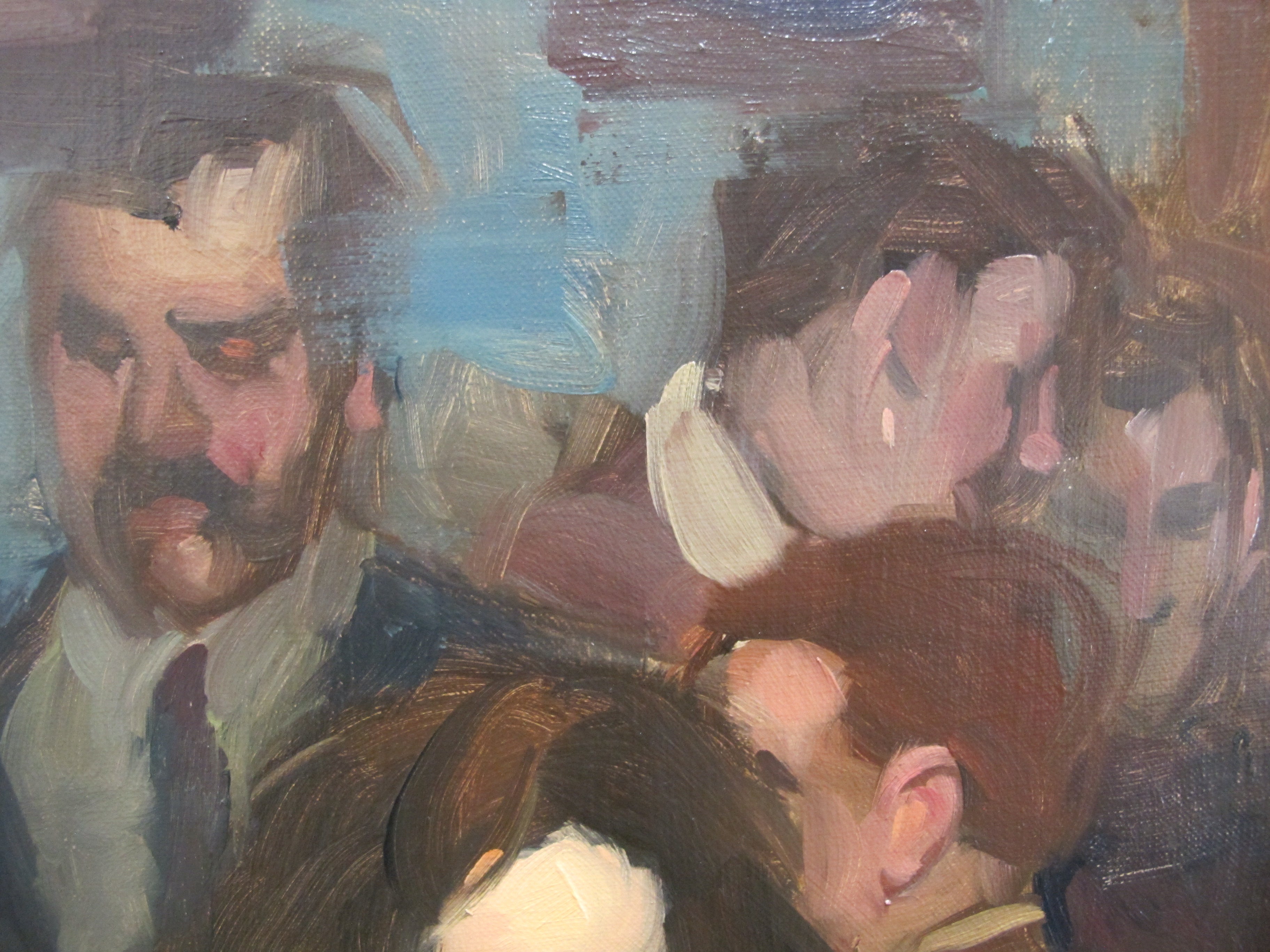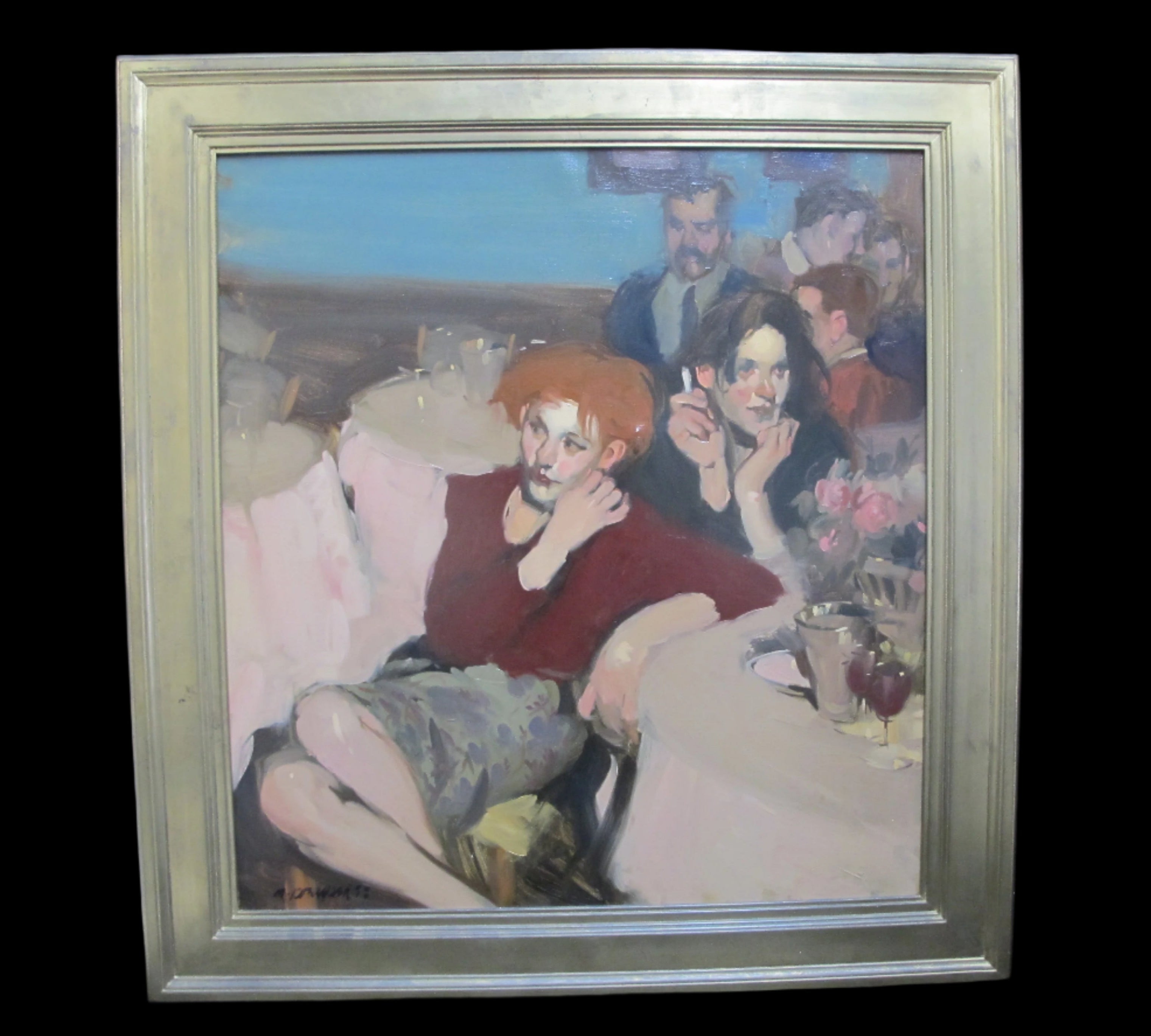 MILT KOBAYASHI Signed Original Figural Bar Scene Oil Painting DO I DARE