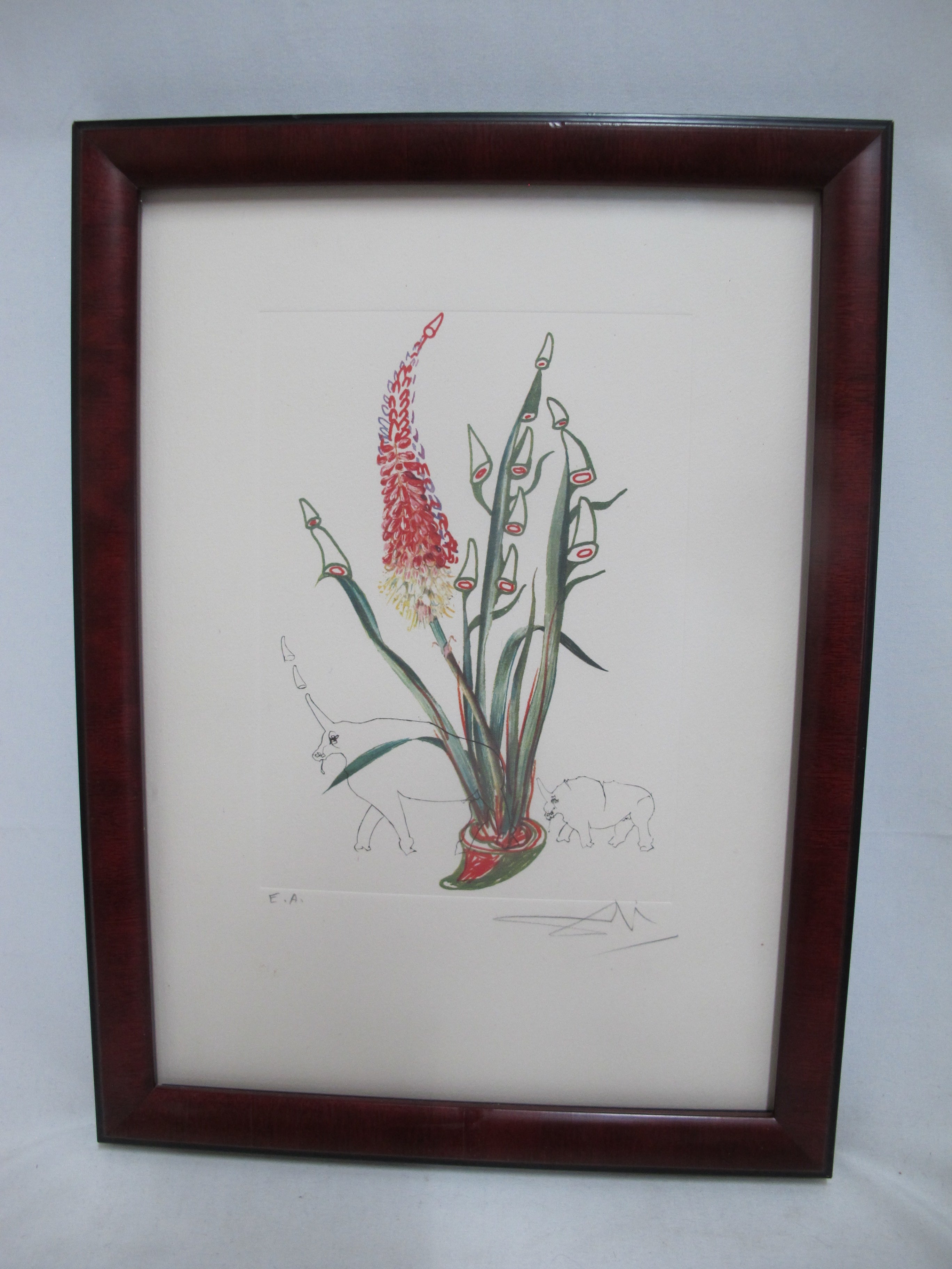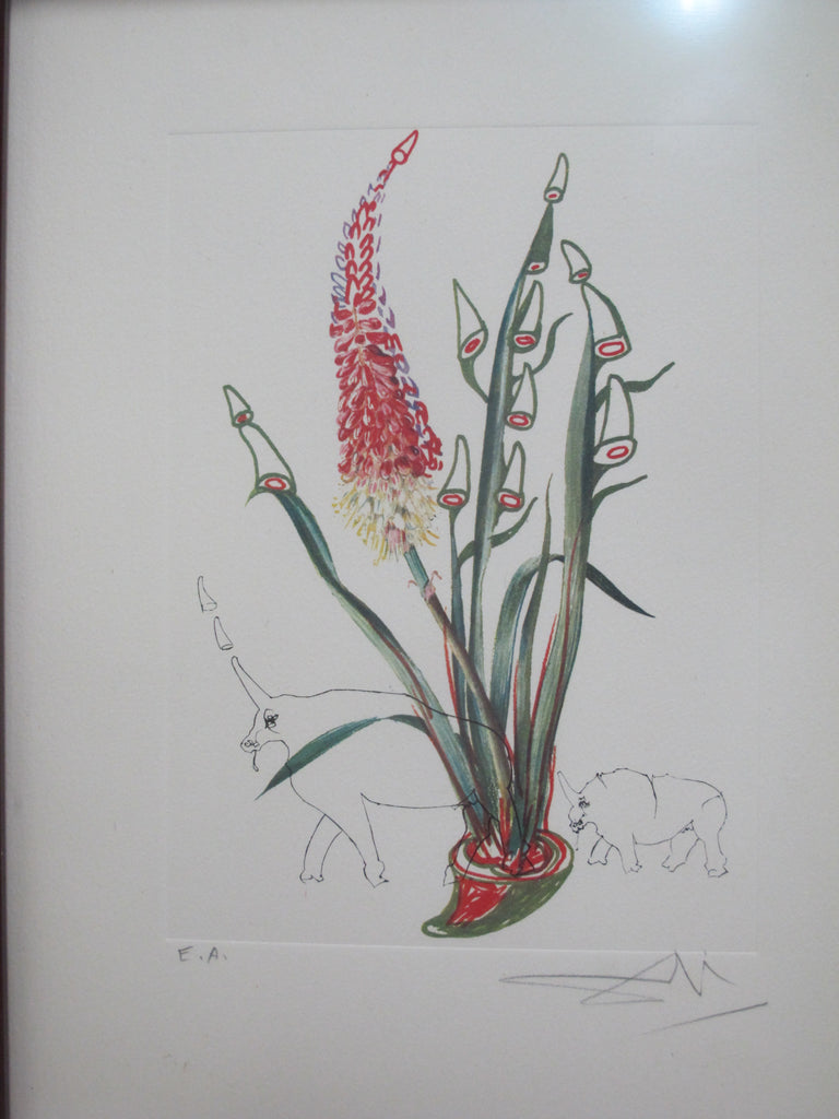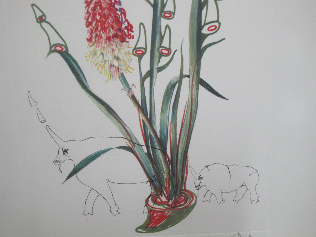 Salvador DALI Framed Signed KNIPHOFIA APHRODISIAC Flower Rhino Lithograph Print
