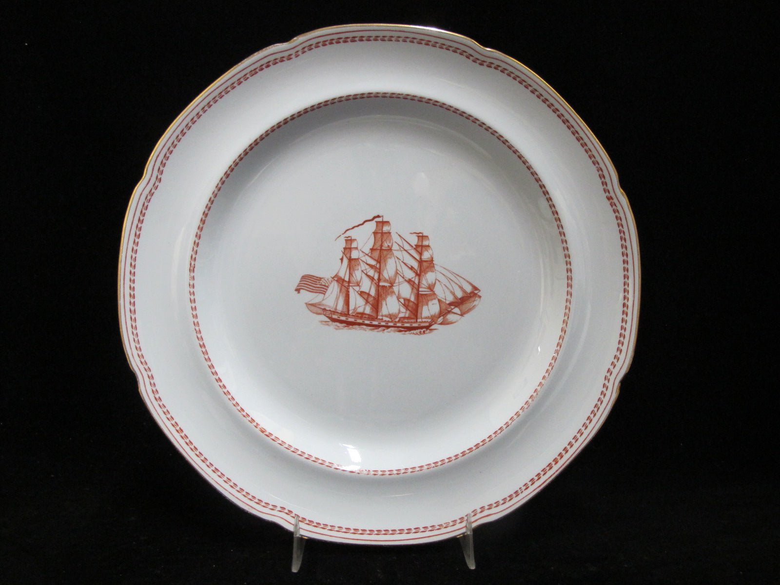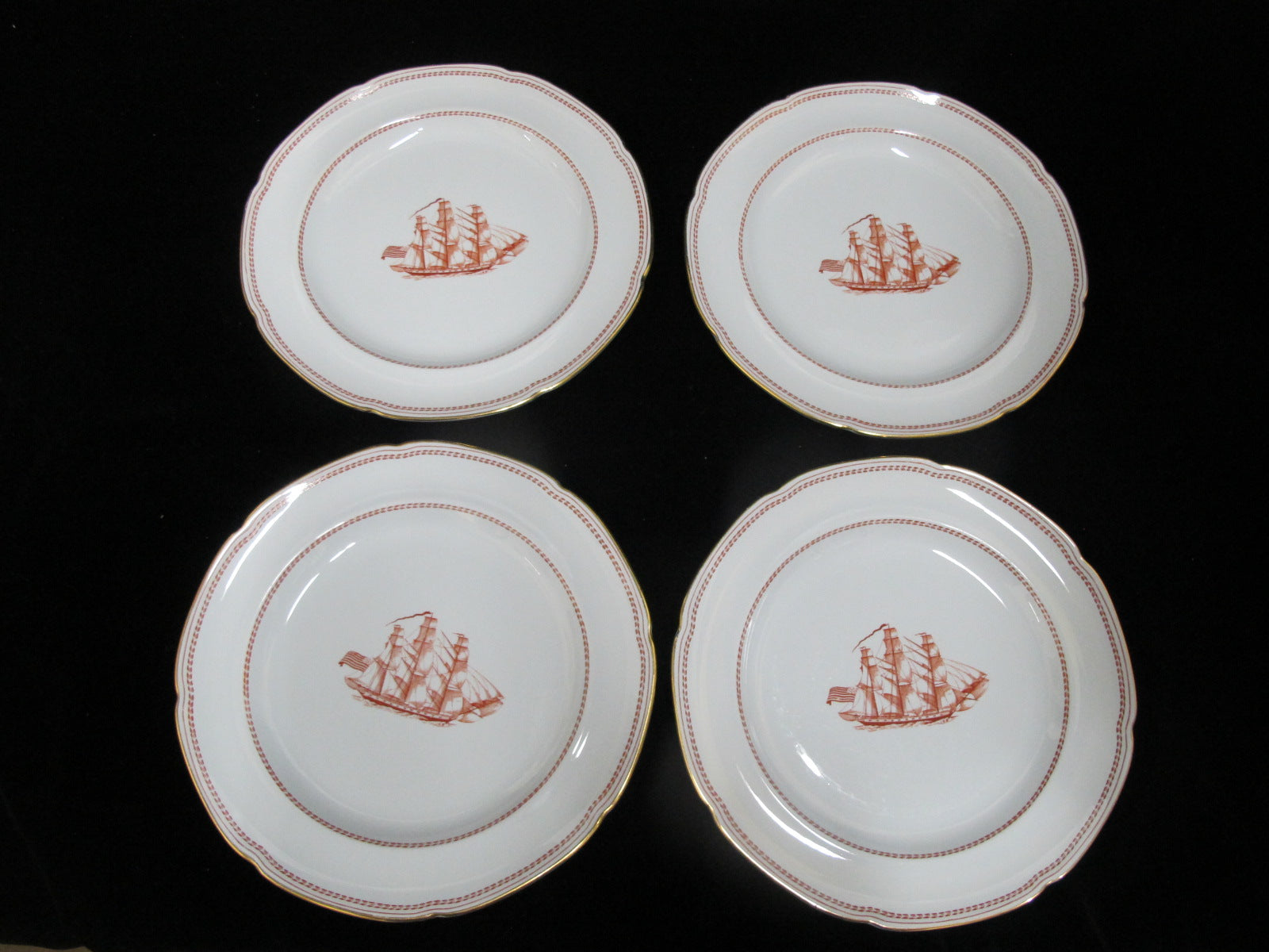 SPODE Copeland England Red TRADE WINDS Ship Grand Turk 10 1/4" Dinner Plate Set of 4