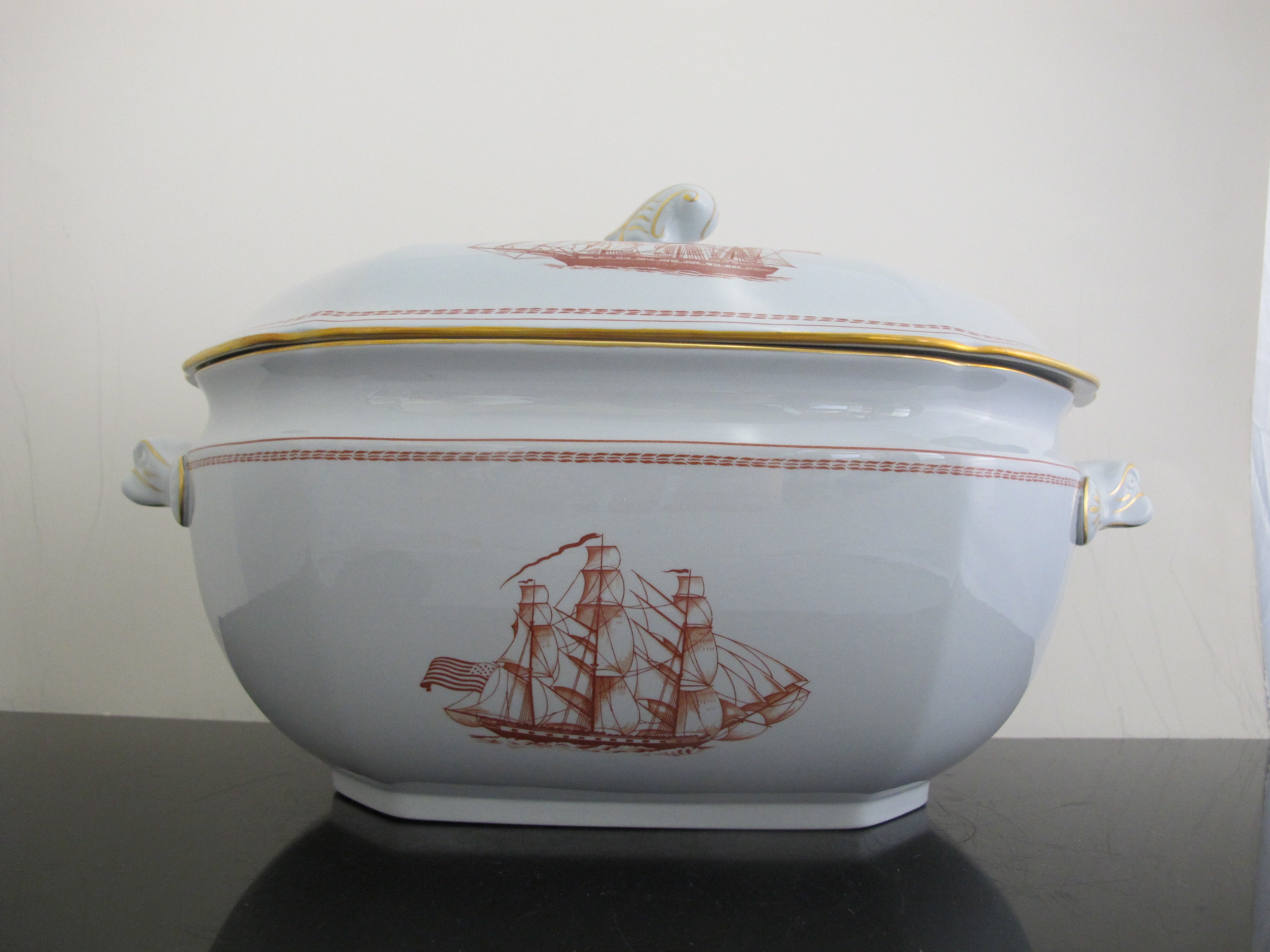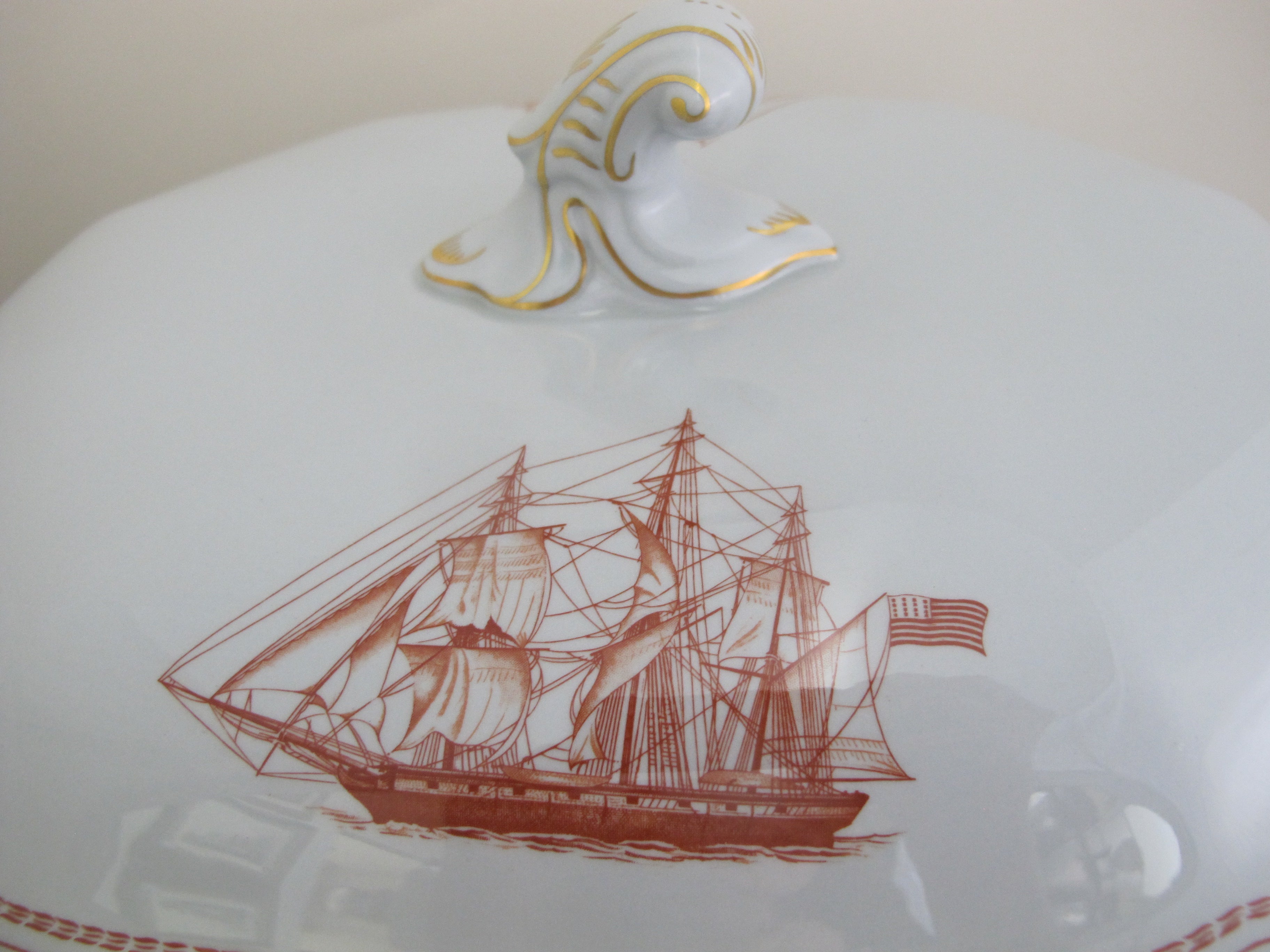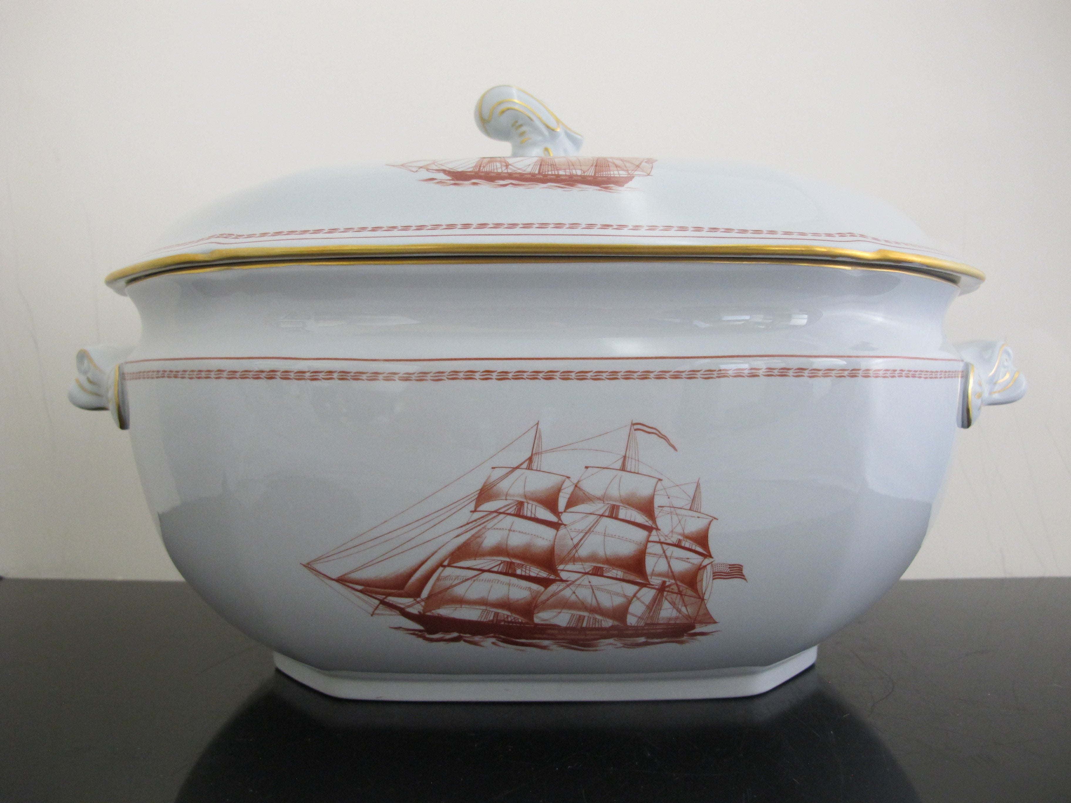 SPODE Copeland Red Gold Trim Ship TRADE WINDS 14" Large SOUP Tureen with Lid